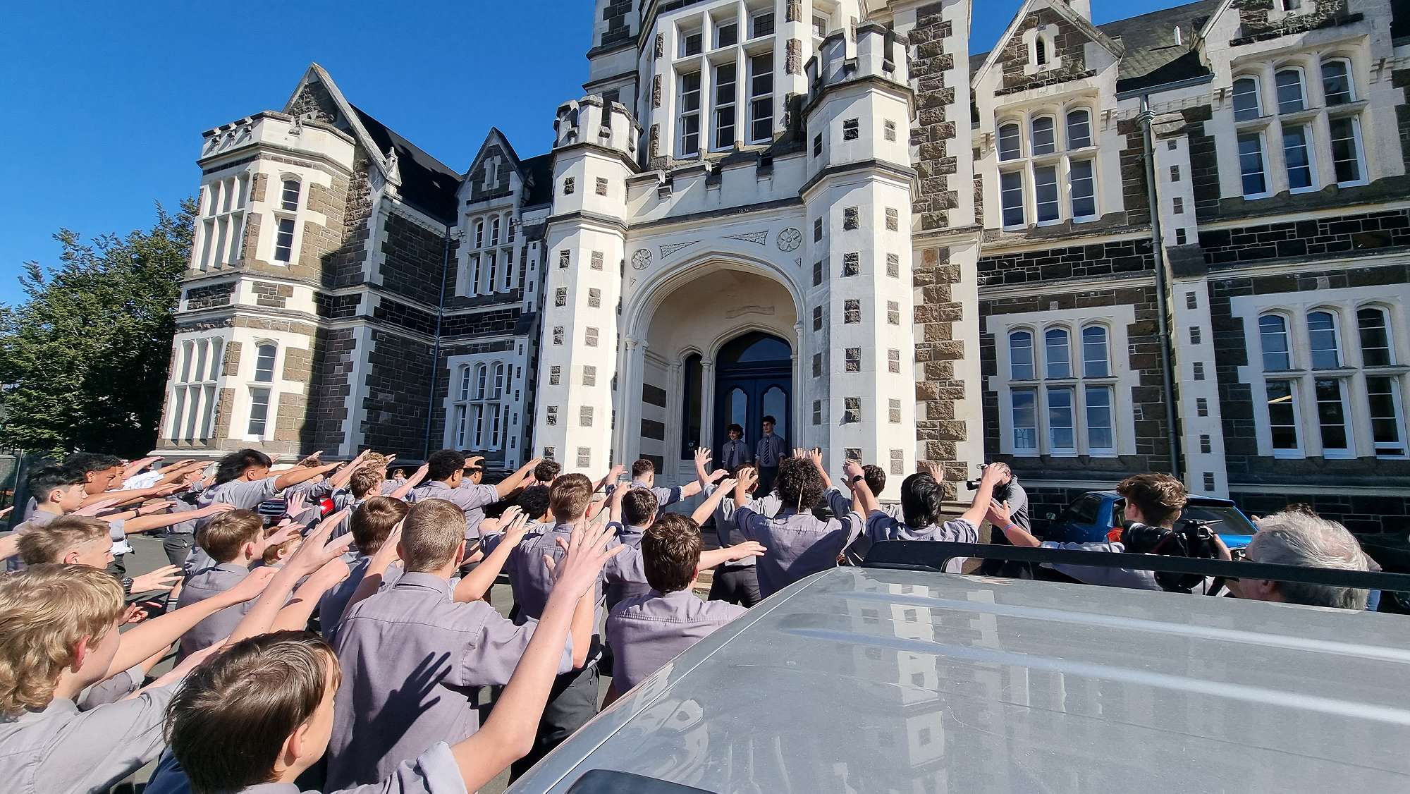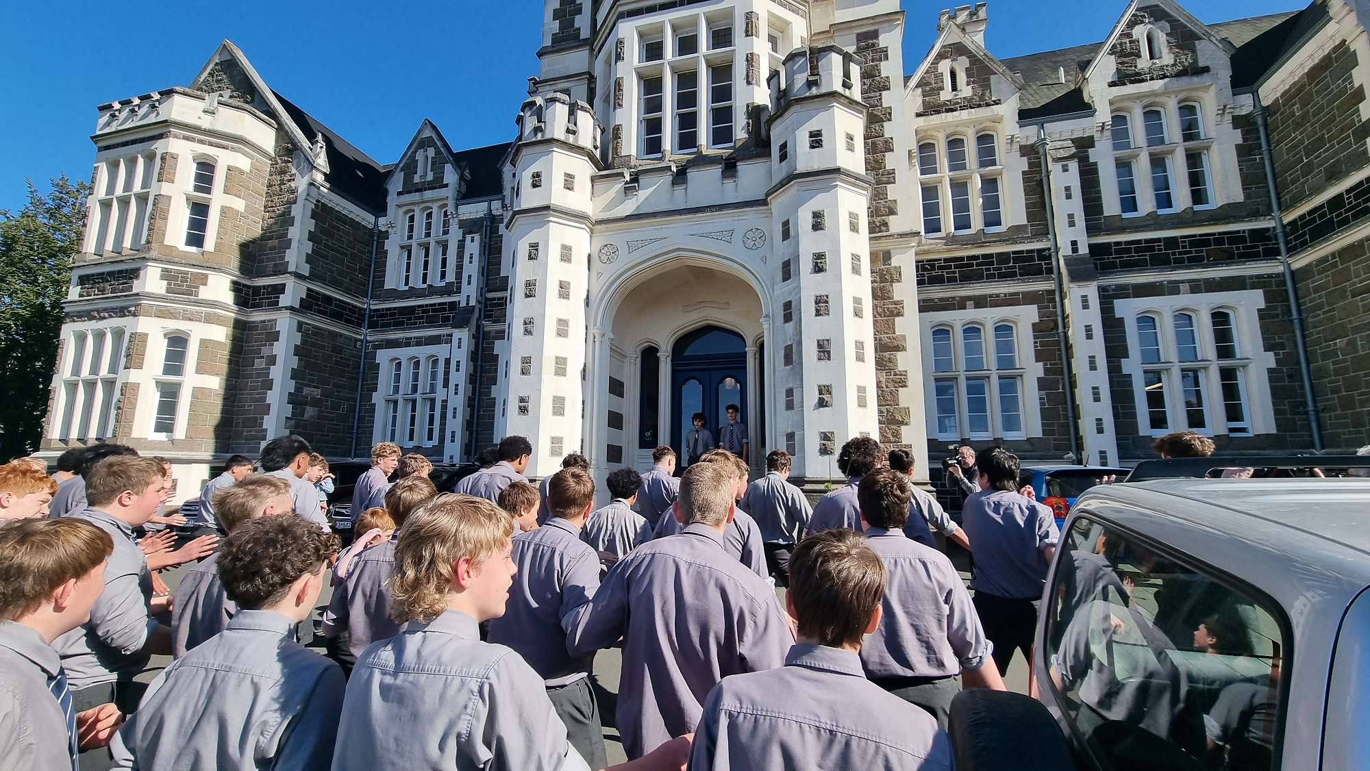 Toni and Rahui have done themselves, their whānau, and their brothers in the Hoops proud. Not only have they won an international tournament and represented their country, but they have carried themselves with honour. They are a good example of what an OB’s man should be. To show their appreciation, a group of junior rugby players led by the 15 Blues and joined by Head Boy Simi Puni, surprised Rahui and Toni with a school Haka in front of the Rector’s Office at school on Thursday morning.
