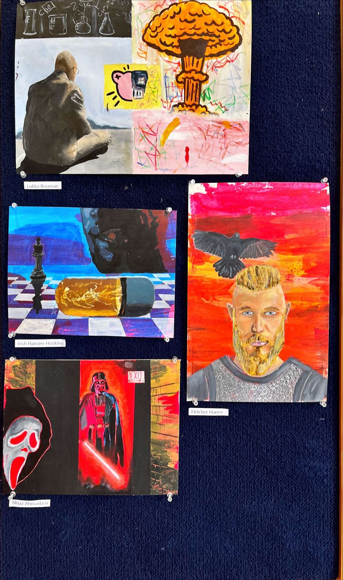 These have been displayed in the foyer of the Otago Boys’ tower block over the last week.