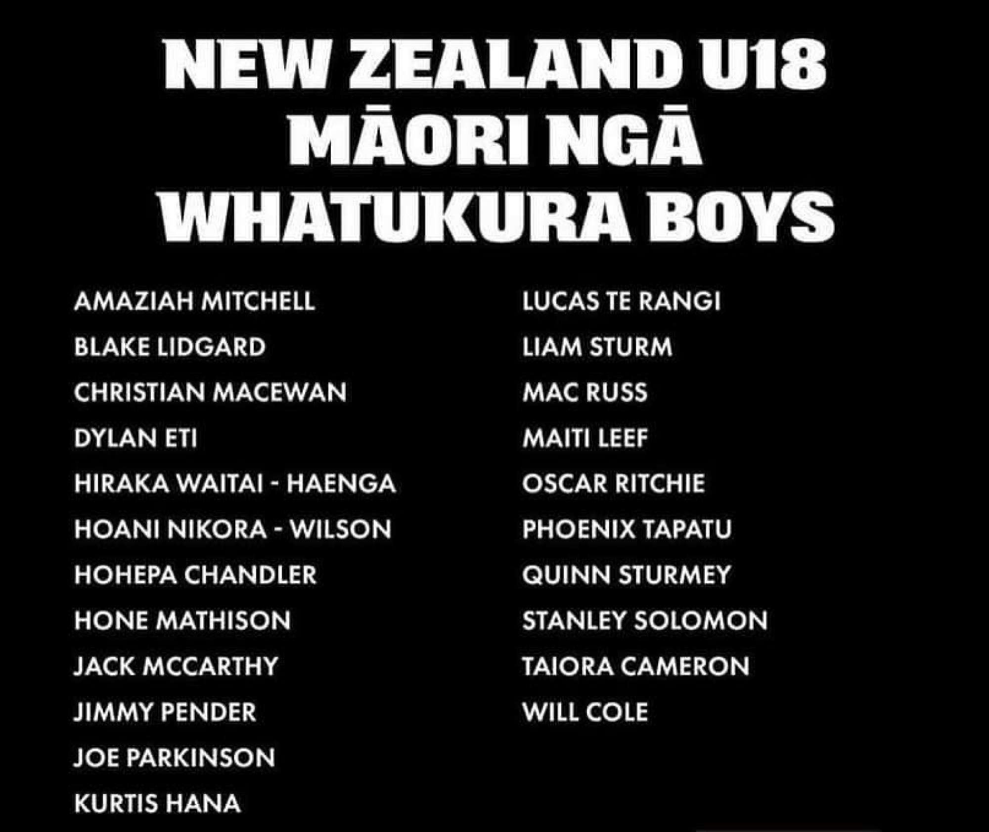 New Zealand Maori Under 18 Rugby Team Selection