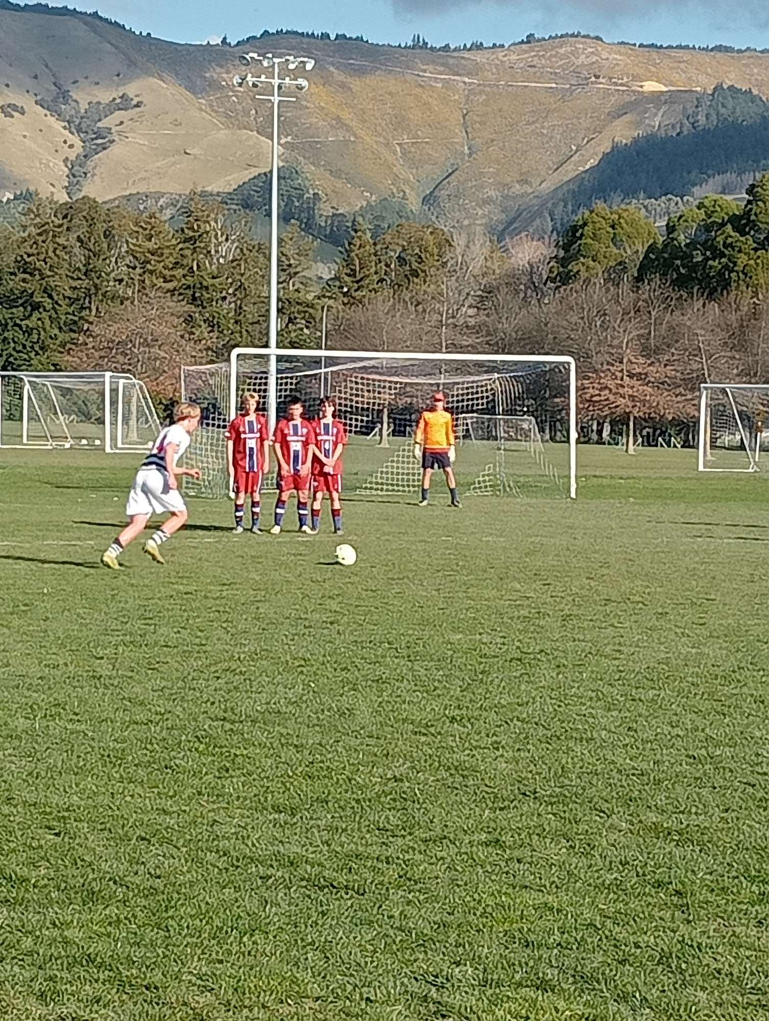 The weather was perfect as we settled into our accommodation in Mapua after the long drive North. In our first game versus Nayland College we were 3 nil up at halftime which seemed comfortable, but made quite a few changes and ended up conceding a couple to win 3-2. In the afternoon we played Rangiora High School and suffered the second game blues. We still managed a draw 1-1 with a late equaliser from Isaac.