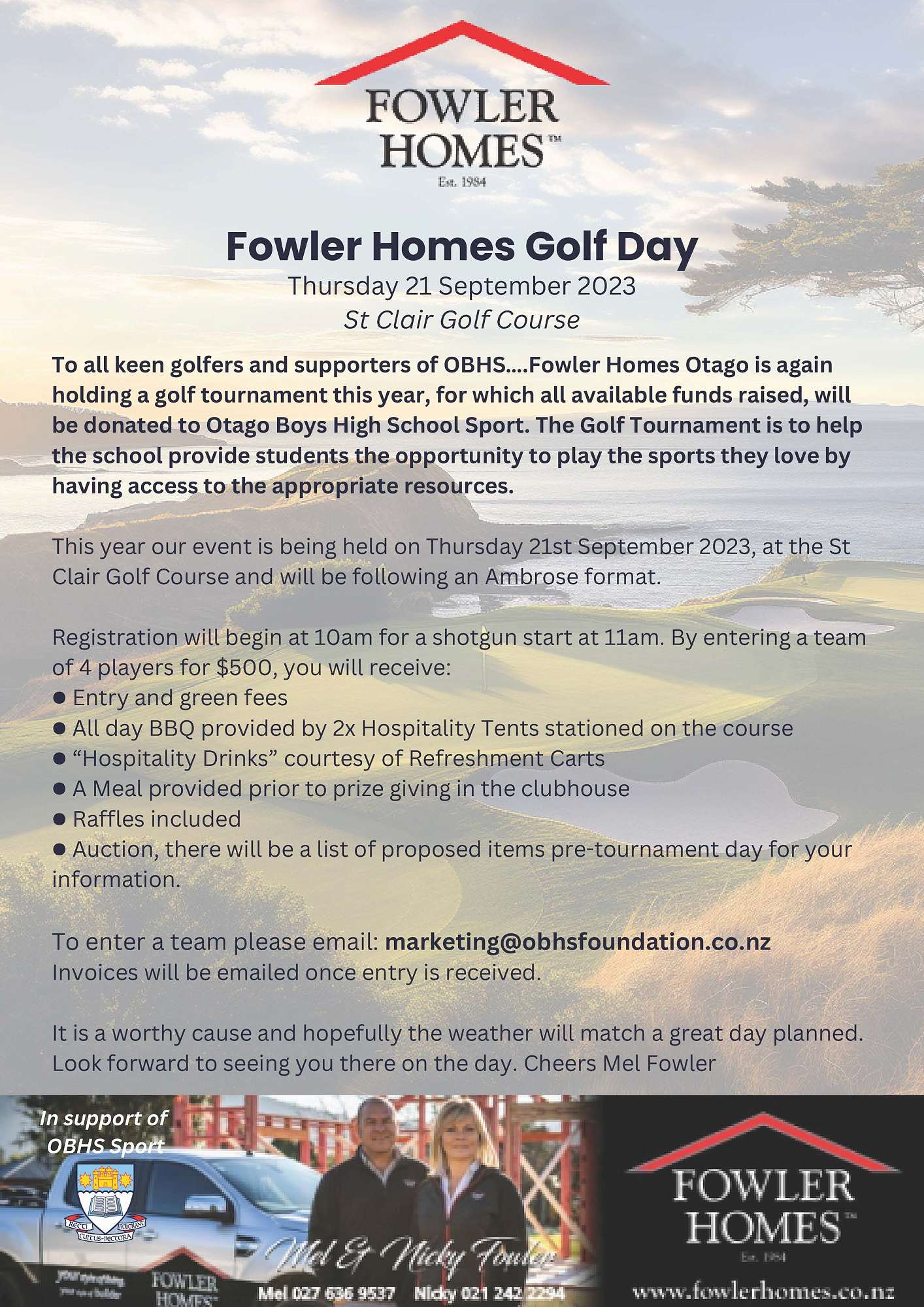 Get your team ready for another great Fowler Homes Otago, Golf Day on Thursday 21 September at St Clair Golf Course!