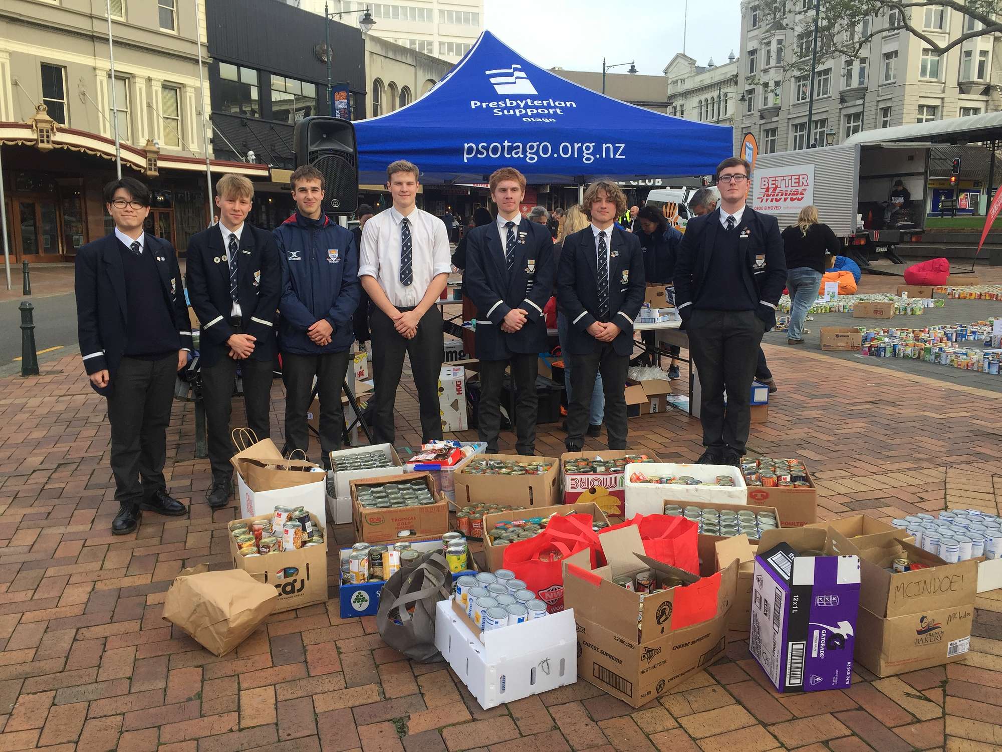 After delivering the cans, the boys spent 15 minutes loading the entire communities contributions into boxes and into a truck for them to be delivered to Presbyterian Support. A kind gesture which was much appreciated by all involved.