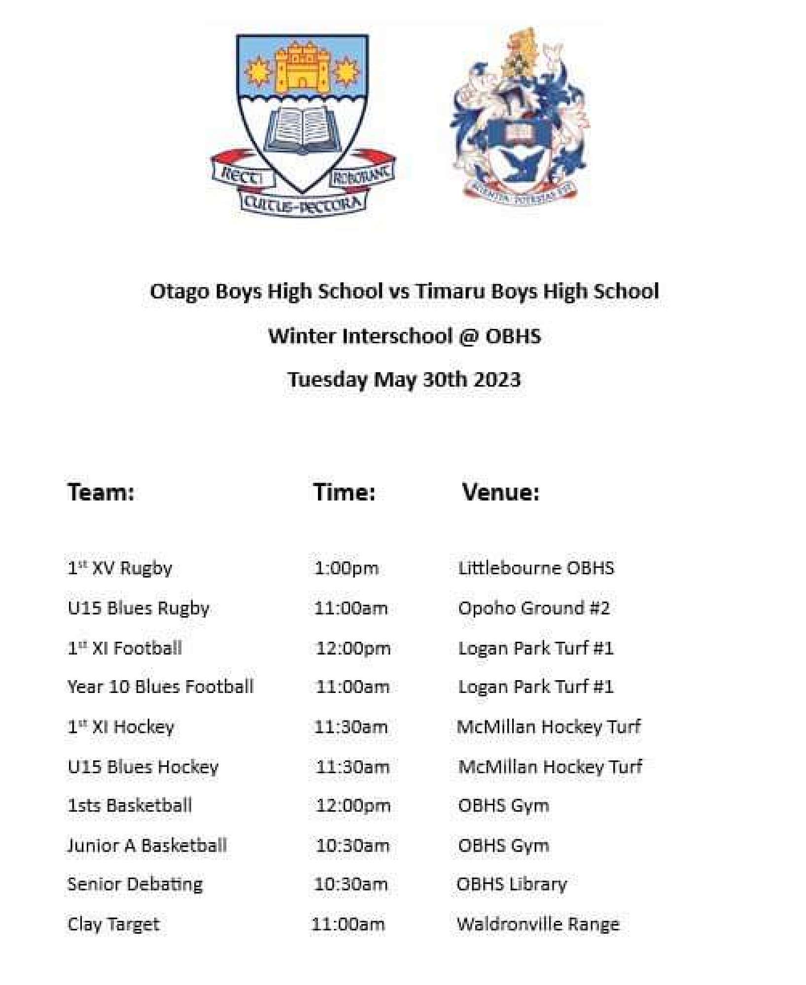 Good luck to all our boys competing today in the Inter-School with Timaru Boys High School.
