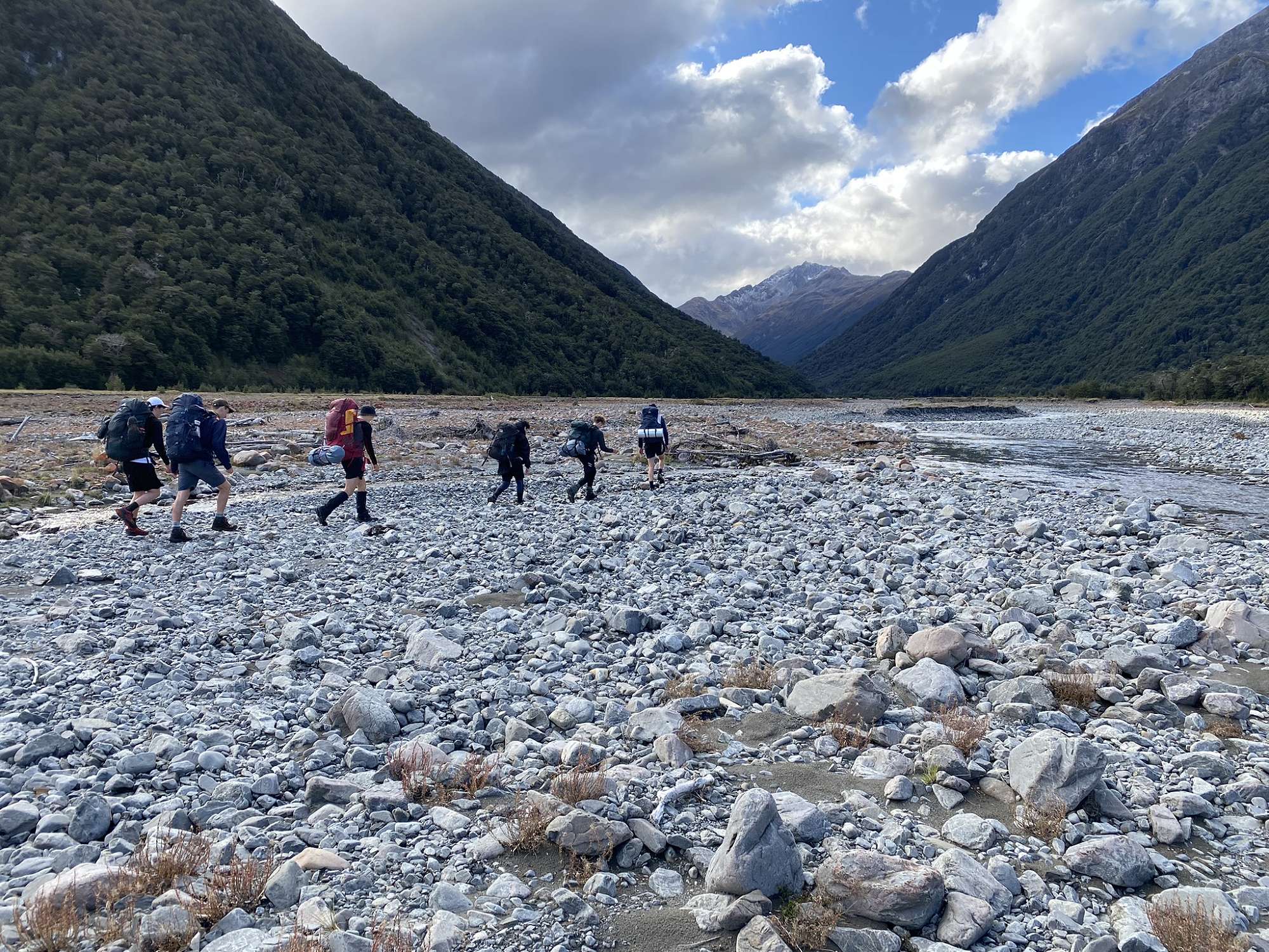 Missing Mother’s Day (bit of making up to do there – me included!) and 3 days of lessons, the group headed off to the largely untracked route up the Mingha River, over Goat Pass and down the Deception River, with a couple of side trips thrown in for good measure. This route in the reverse direction is the scene of the mountain run for the annual Coast-to-Coast race.