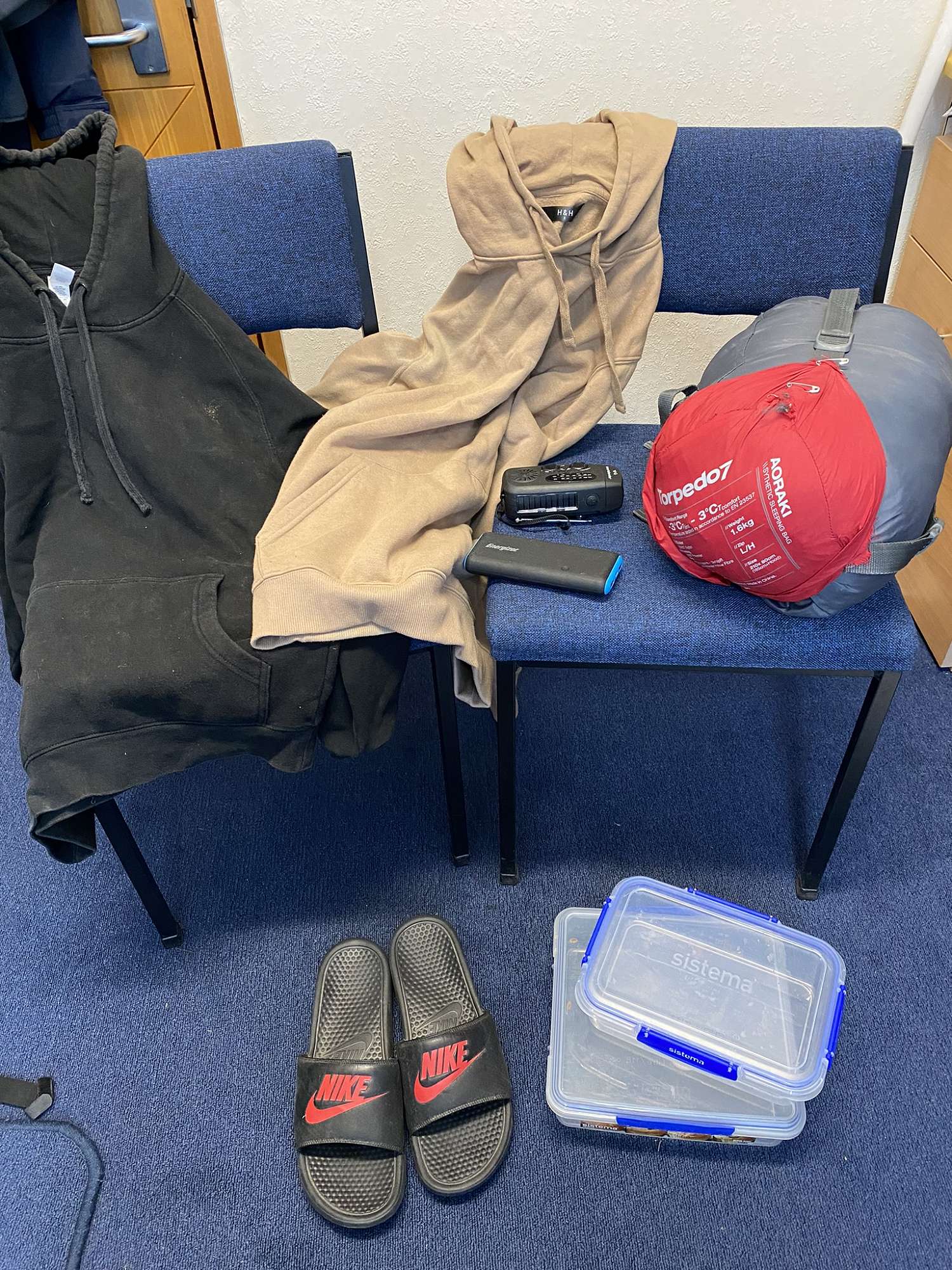 1 red/grey sleeping bag