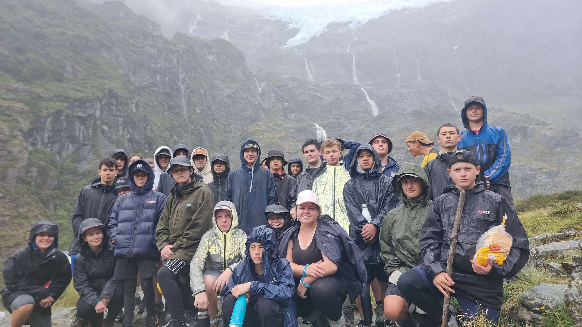After packing up the camp on Tuesday morning, we headed off up the Rob Roy Glacier walk. This was a challenging but beautiful walk, through pristine NZ bush and taking in breath-taking views of rivers, waterfalls, and the base of the glacier. As we approached the summit of the walk, the weather moved in making it a challenging place to prepare and eat our lunch. It was great to see the group work together to help each other out and make the best of it. It’s fair to say that the lodge looked luxurious on our return after roughing it in the wilderness for the night and walking through the rain that afternoon.