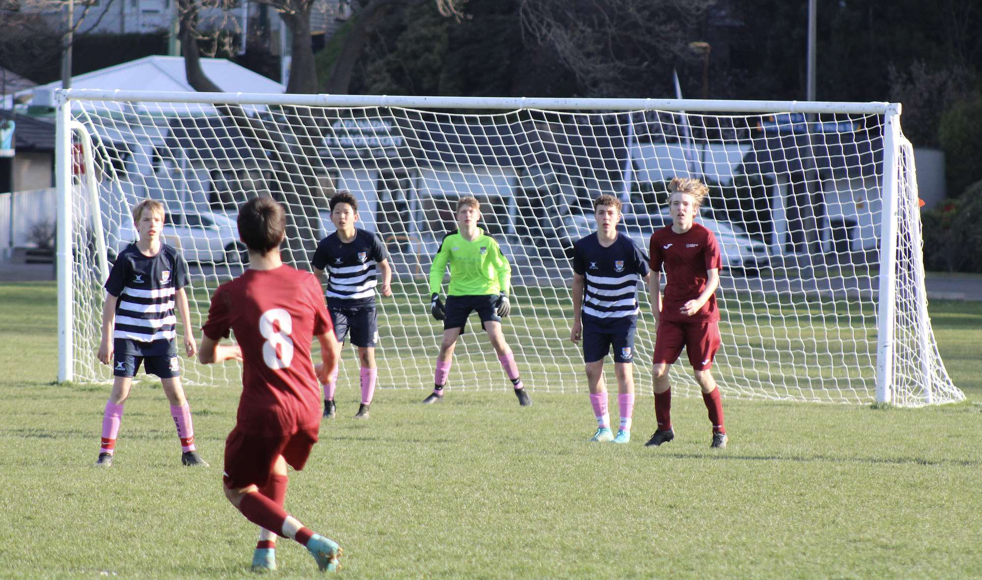 Friday brought a very early start, which had been adjusted to accommodate our flight out of Auckland after the 6 hour drive north. A 7:45am kickoff against Christchurch local competition winners Cashmere High School started slow, both sides still half asleep, but by the end of first half, the match had escalated in intensity and some quality football was being played. Although the lads put in a huge shift on the last day of a week of football on heavy pitches, we ran out of legs and left holes in our lines which Cashmere capitalised on. Our final game resulted in a 2-1 loss, with a goal to Ben Sinnott from a long range effort.