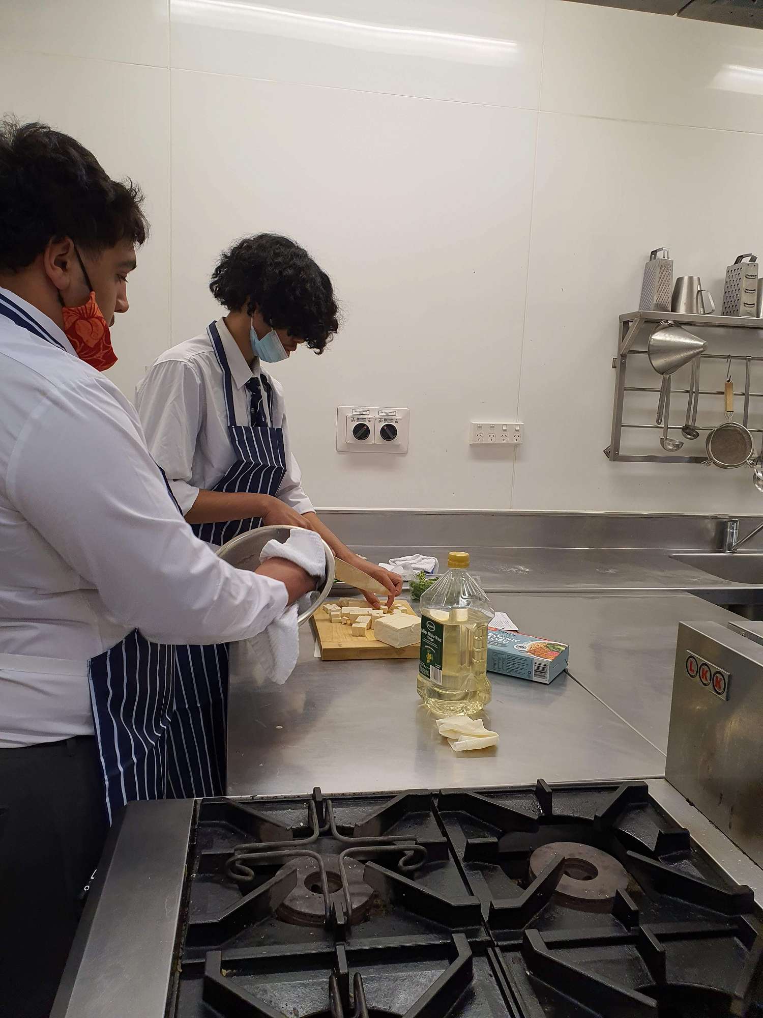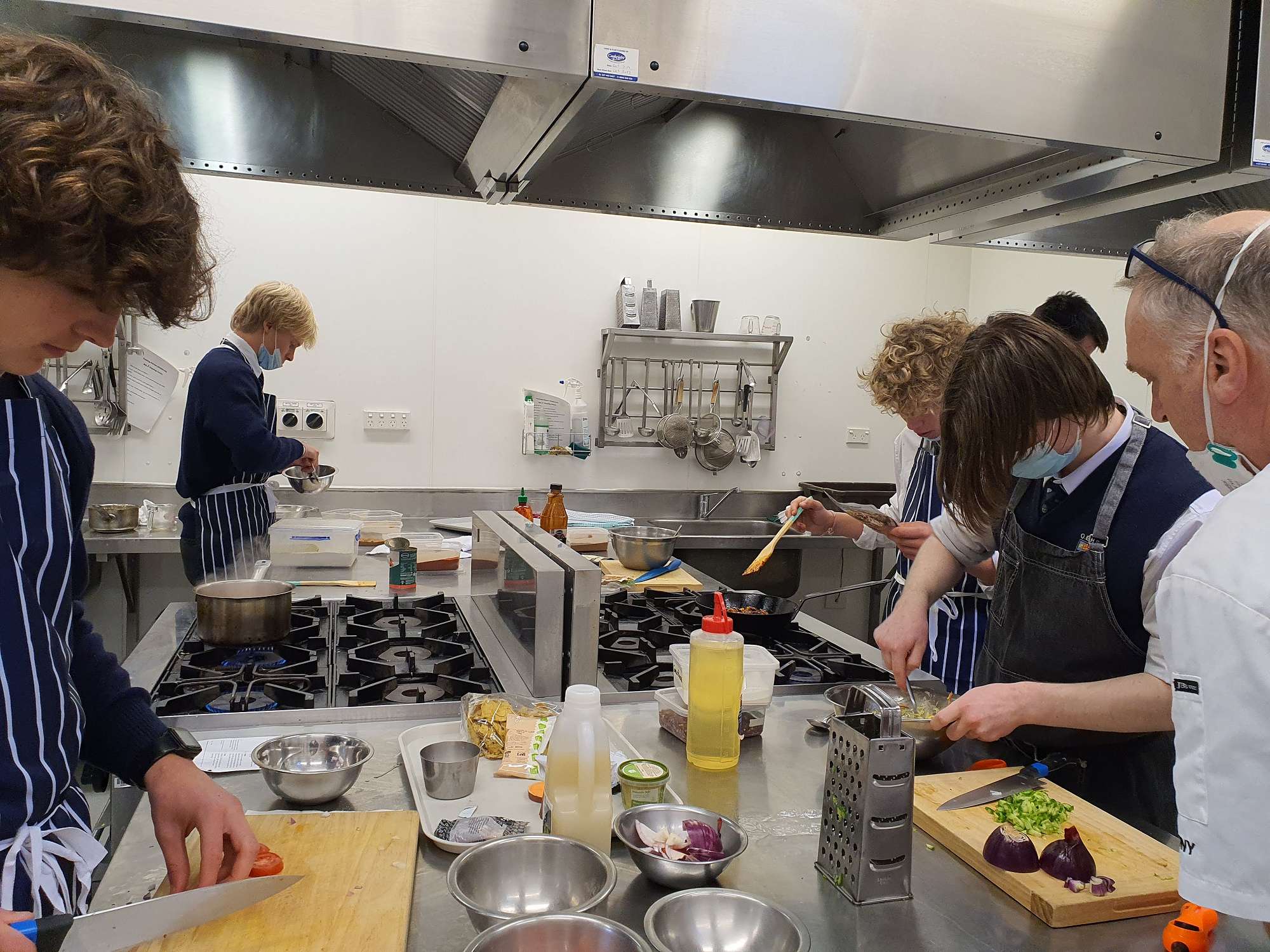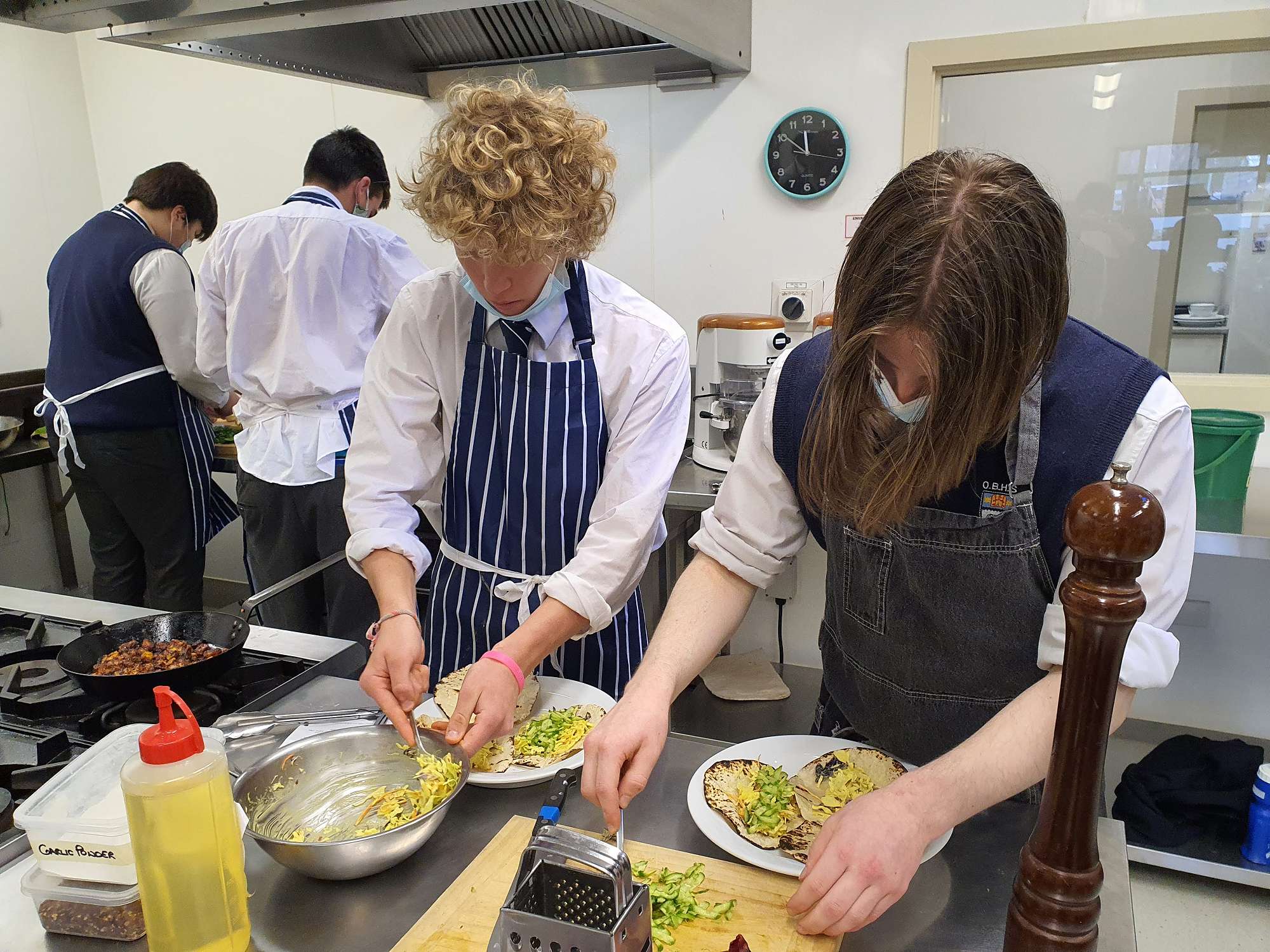 Students then engaged in cooking in the commercial kitchens at the Polytech under Tony's guidance. Students looked at vegetarian versus vegan dishes to learn about the key differences between these diets. They used the MyFoodBag food and recipes, to look at quantities, as well as the nutritional balance of these meals. Students prepared, cooked, and ate a range of new foods today. They executed the recipes to a high standard, this encouraged them to try the new foods with an open mind.