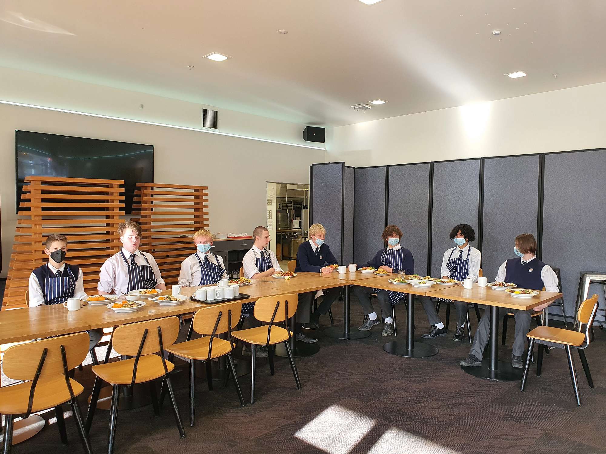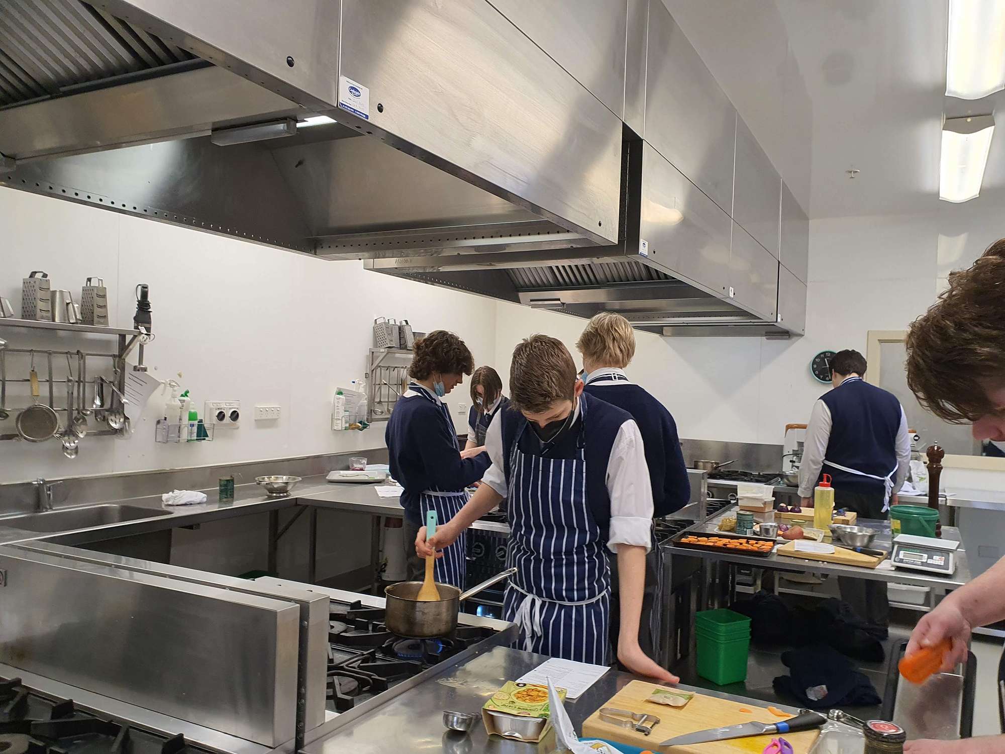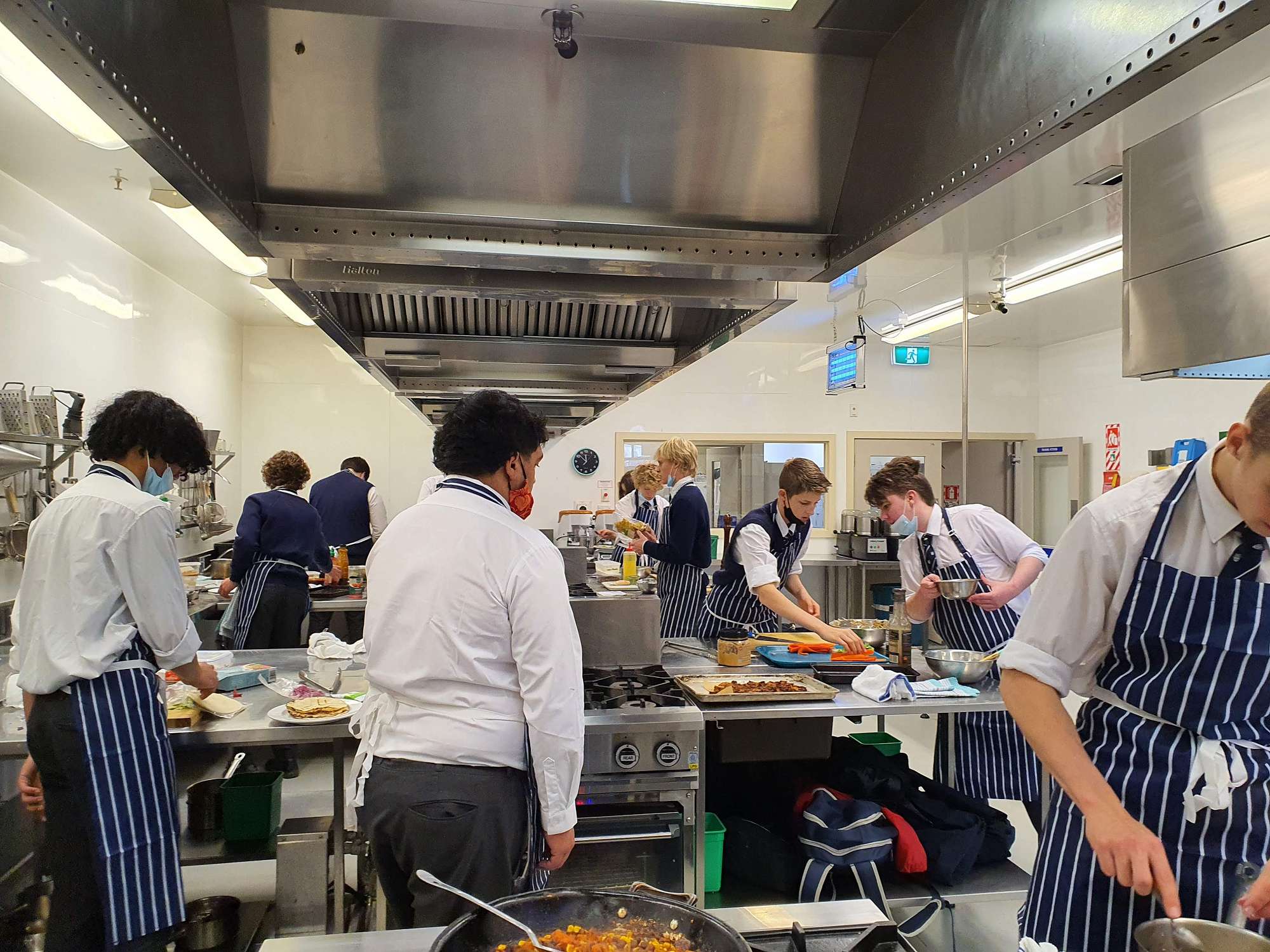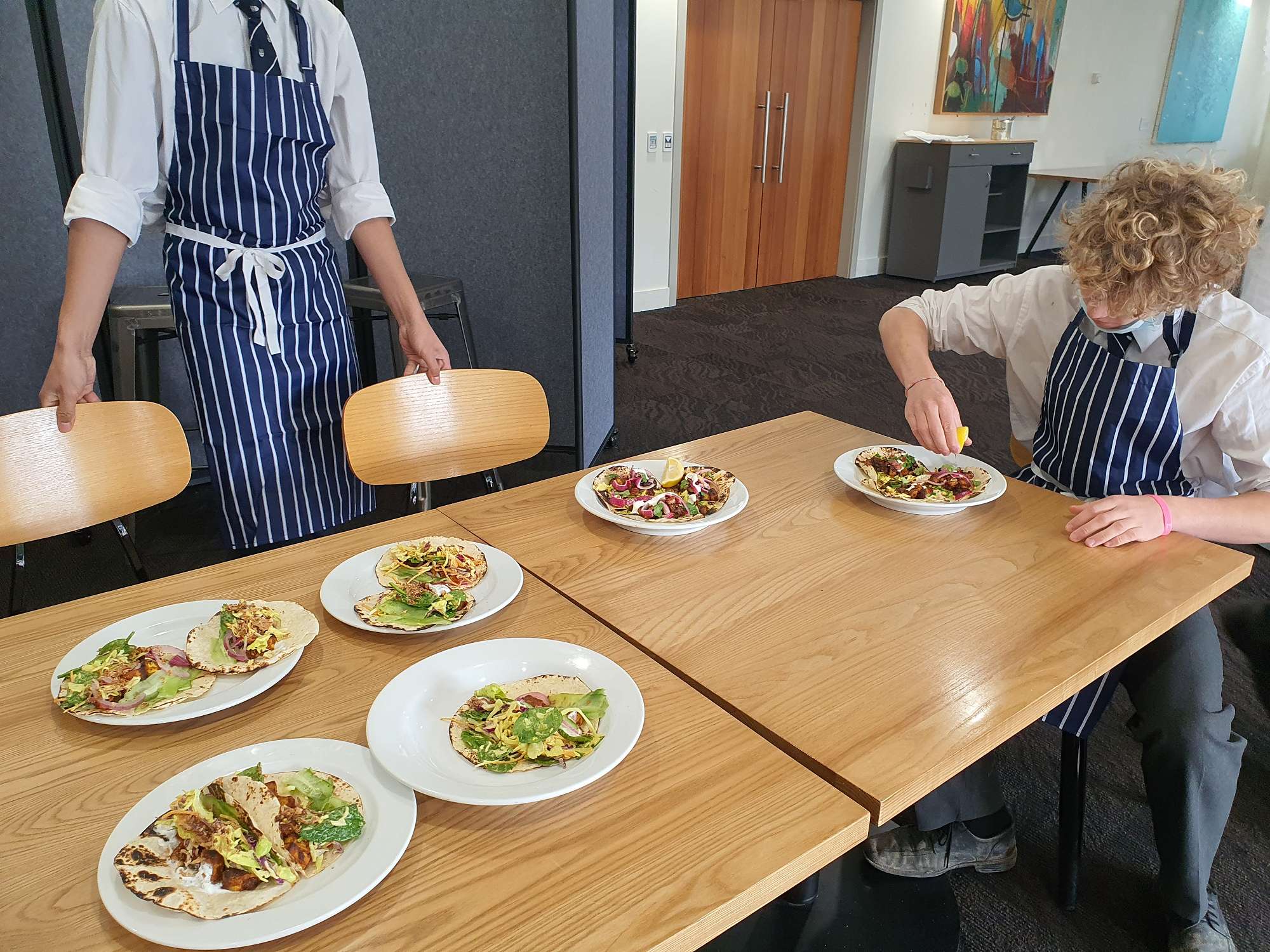 Students then engaged in cooking in the commercial kitchens at the Polytech under Tony's guidance. Students looked at vegetarian versus vegan dishes to learn about the key differences between these diets. They used the MyFoodBag food and recipes, to look at quantities, as well as the nutritional balance of these meals. Students prepared, cooked, and ate a range of new foods today. They executed the recipes to a high standard, this encouraged them to try the new foods with an open mind.