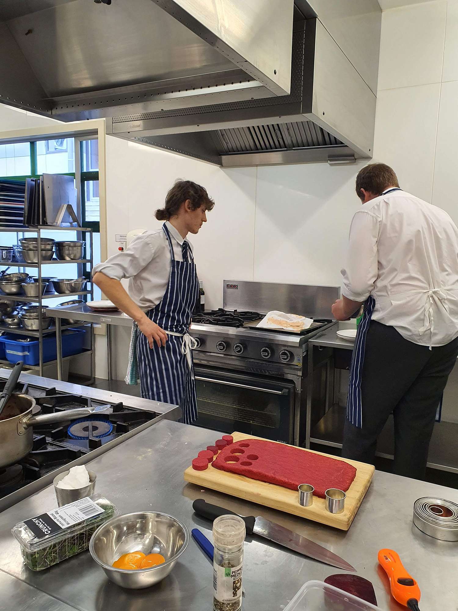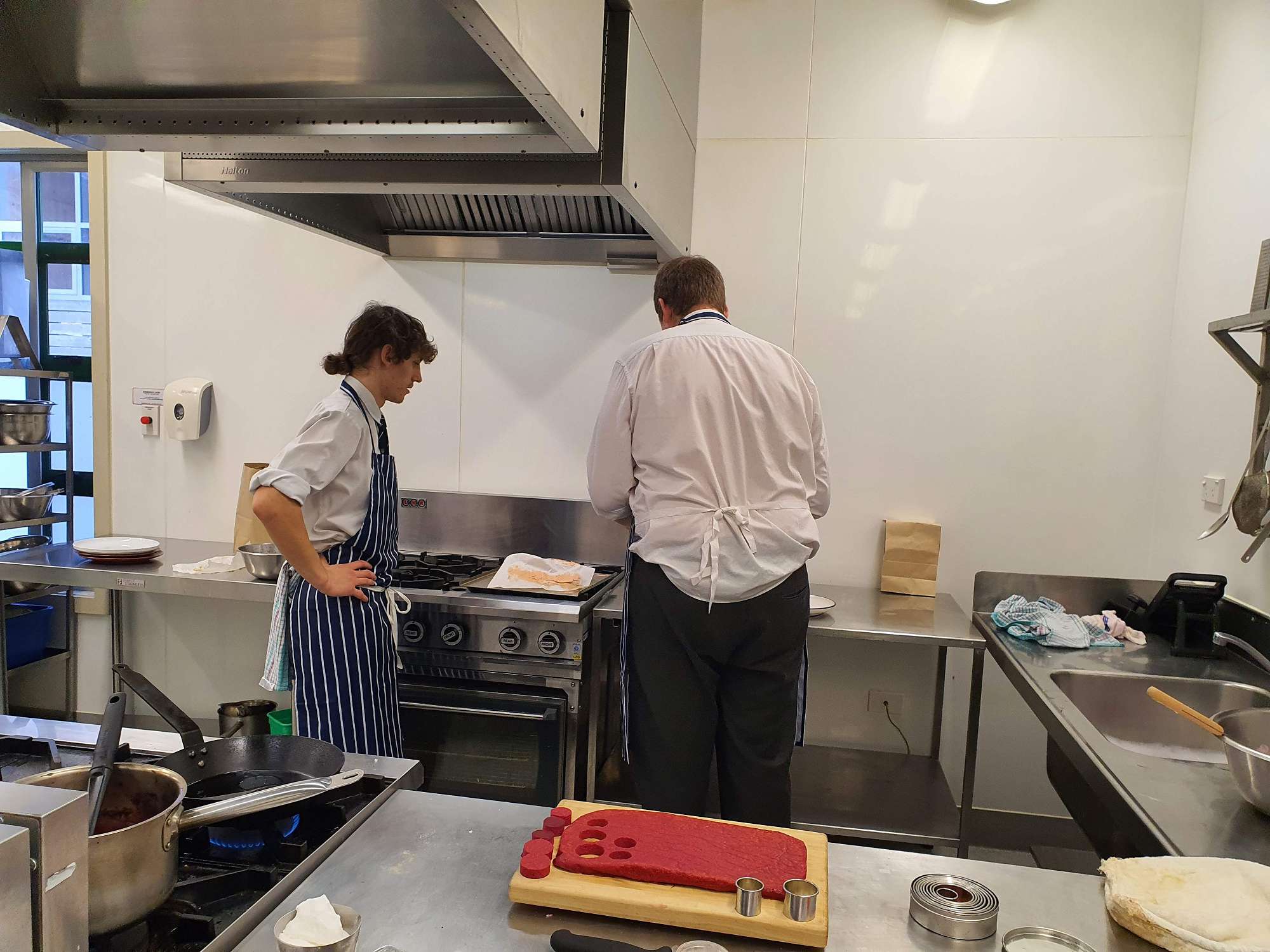 Sam Gavin and Max Napier practiced their dish for entry into the Secondary Schools Culinary Competition in the commercial kitchens today. They sought valuable feedback from Tony which will see them in good stead moving forward with this.
