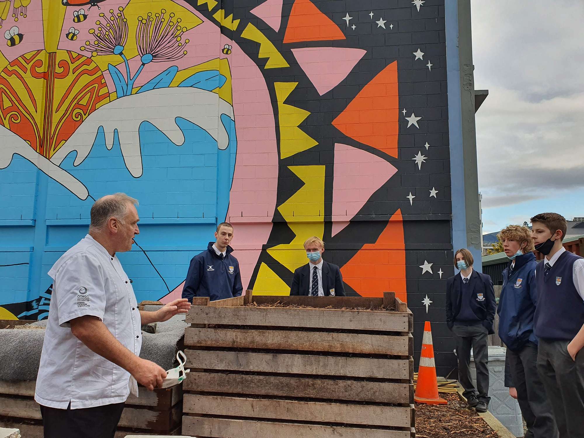 This was followed by a visit to the Otago Polytechnic - Hospitality Department. Students were welcomed by Tony Heptinstall - Senior Lecturer in the Food Design Institute. Tony took students on a tour of Manaaki Restaurant, the edible gardens, and the hub. He talked about the ethos of the Polytechnic with regard to the programmes available to students.