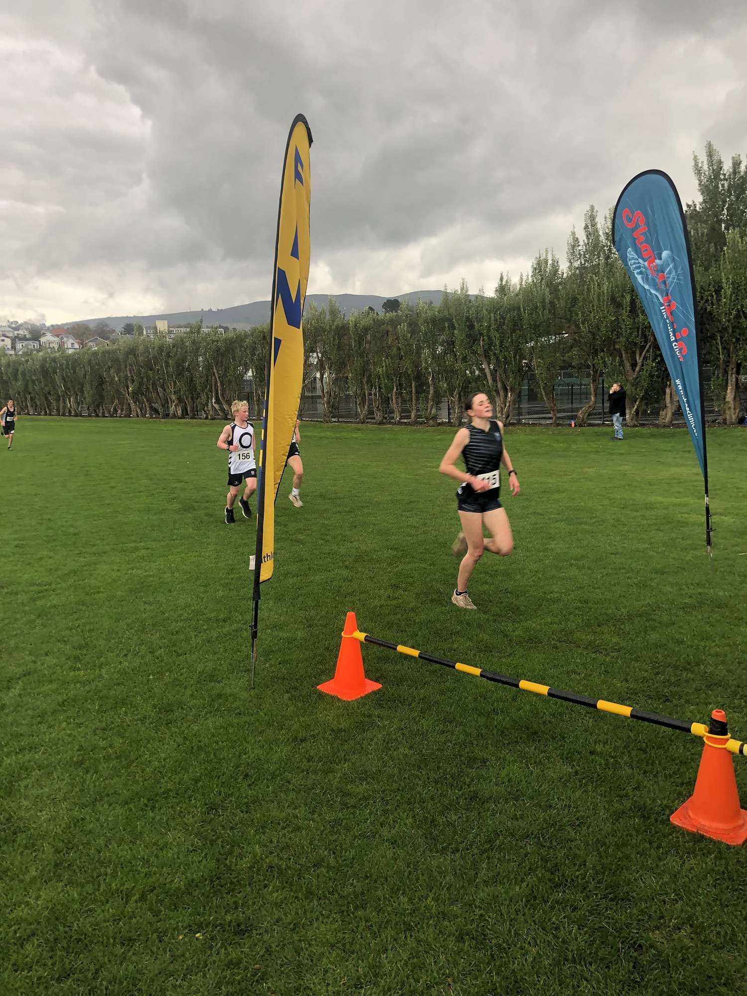 Perfect weather for the first race of the Cross Country season, or so we thought, but this was going to prove to be too good to be true. The race took place at Logan Park with the start time of 1:00pm and just as the Junior's race commenced it clouded over and literally "poured on our parade".