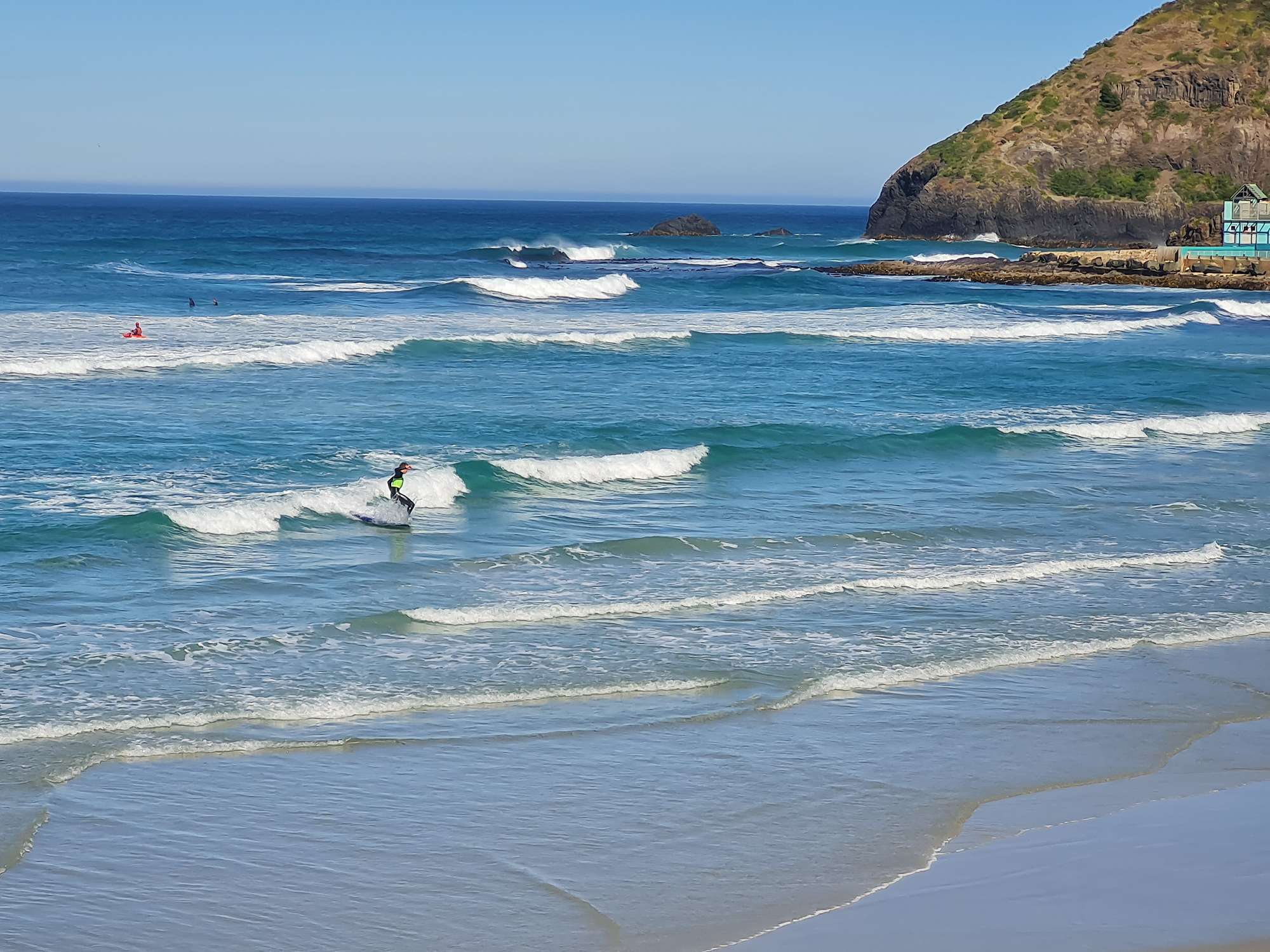 Fast forward to Wednesday...the Year 12s drove out to Aramoana. Slightly bigger waves and only a light onshore wind meant there were plenty of waves to destroy (or be destroyed by). As the wind picked up it was then decided to head back into town, and to take advantage of the more favourable conditions at St Clair. After BBQing at the surf club, the boys hit the water again. Lots of sun, and some fun waves had. Everyone happy (and tired) at the end of the day.