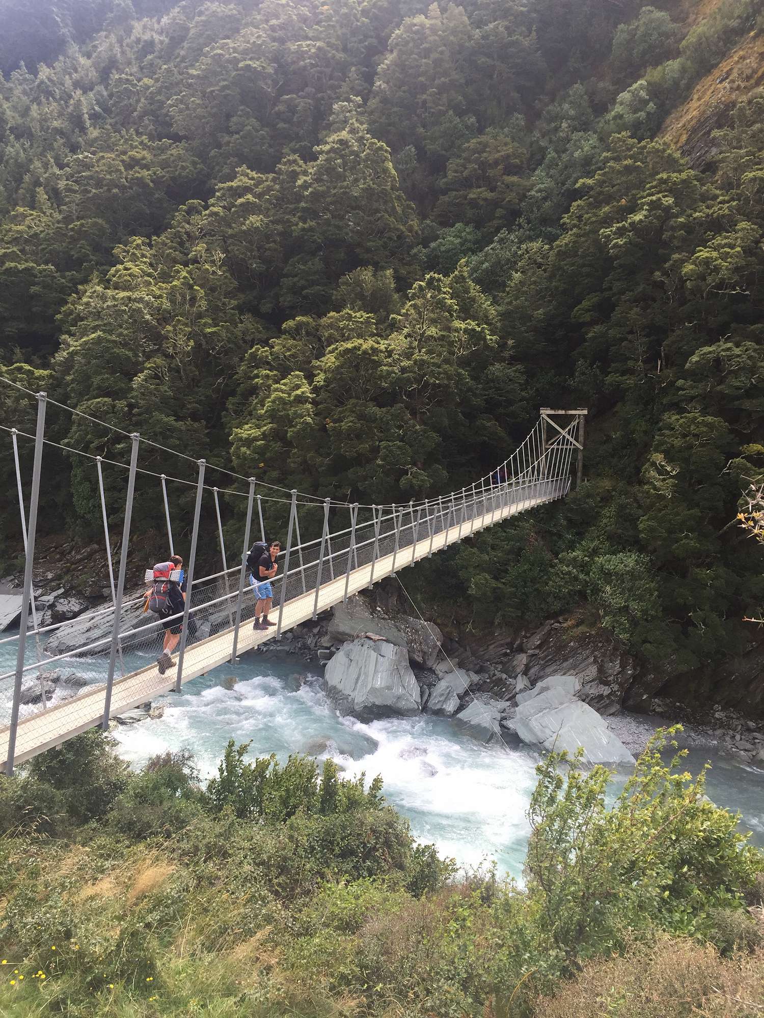 The overnight camp began with 2 hours of walking across rapids (on a bridge of course) and through farm land. After we arrived, we started cooking food and I have to say that there were some pretty hungry faces. After tea, we had some down-time. When dark settled in for the night, all the boys got into their sleeping bags to nod off. Morning came and we set up the porridge, Jamie (Oliver) Hall was a whiz at cooking porridge and created the best breakfast you could ask for in the wilderness. After breakfast, we packed up and headed off for the walk back. This time it's much quicker though, because Mr Zani let us do a river crossing which cut off 1km from the walk.