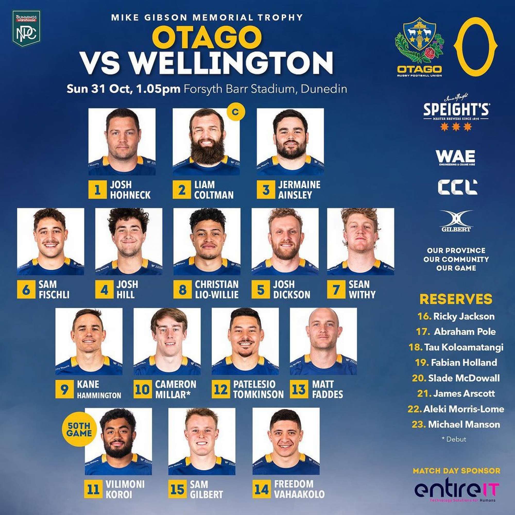 Sunday Activities: NPC Rugby Otago vs Wellington
