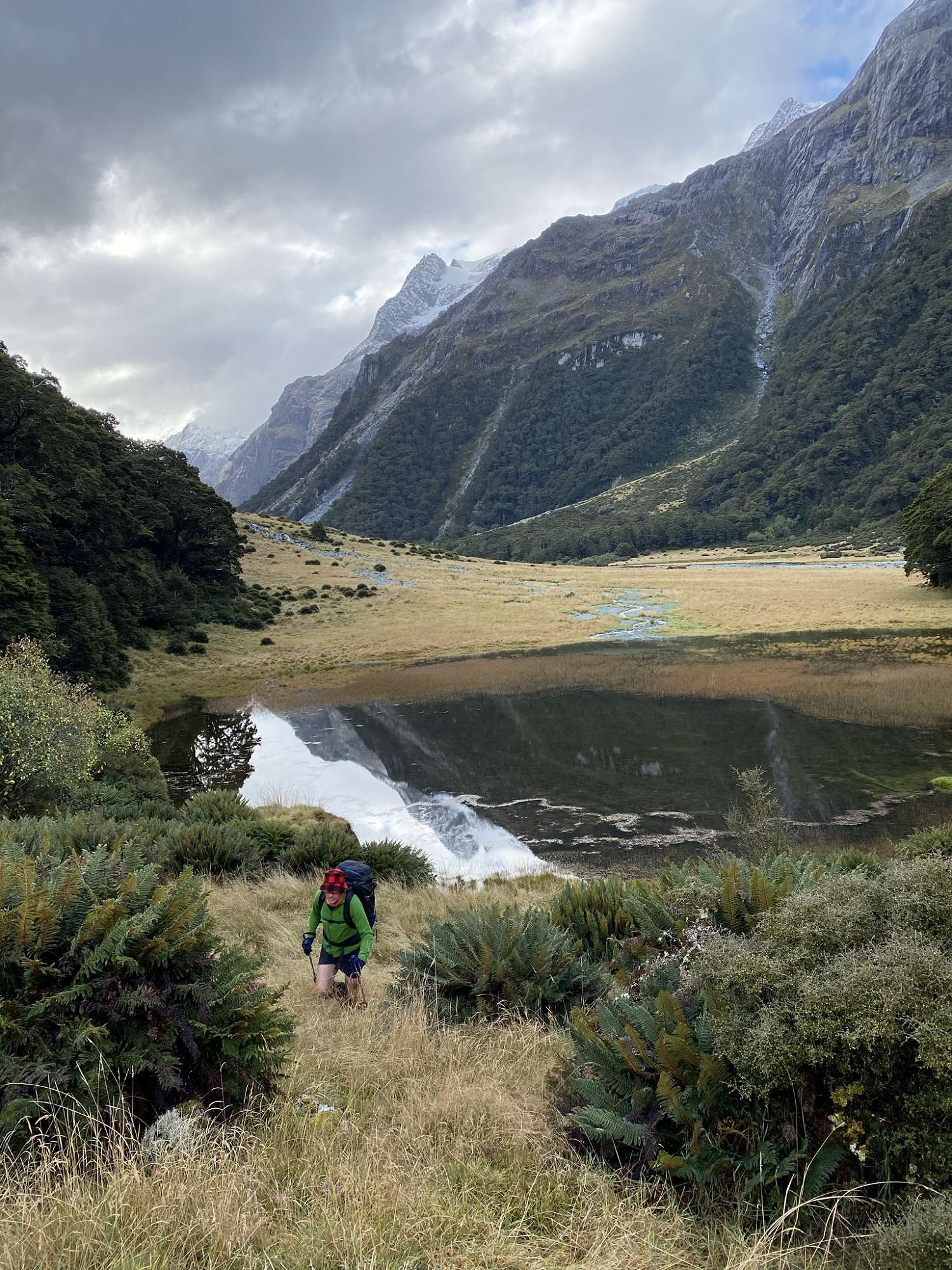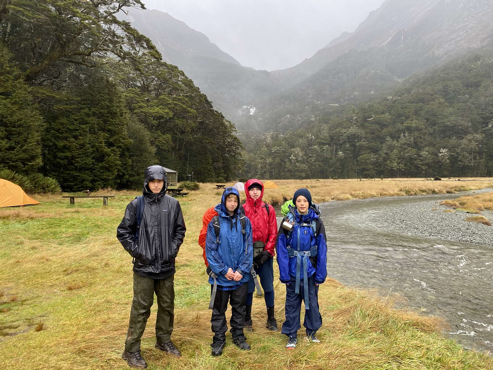 Following an uneventful van ride, we piled eagerly out into the Routeburn car park. It was chilly but we were hardy southern boys and, with a smile on our faces, made tracks for the hills. While the younger year groups walked directly for the Routeburn Flats (where we would set up a basecamp), the Year 13s headed up to Sugarloaf Pass. It was a steep ascent through rooty terrain, but with a mixture of banter and tenacity we made it in good time. The pass was plagued by a bitter wind sweeping in from the north, and rolling banks of cloud threatening rain. After the obligatory photo-op we returned to the Routeburn track and on to the flats in the gathering dark. Having barely managed to set up our tents before the rain arrived, a pleasant dinner and some cards ensured a good night's sleep.