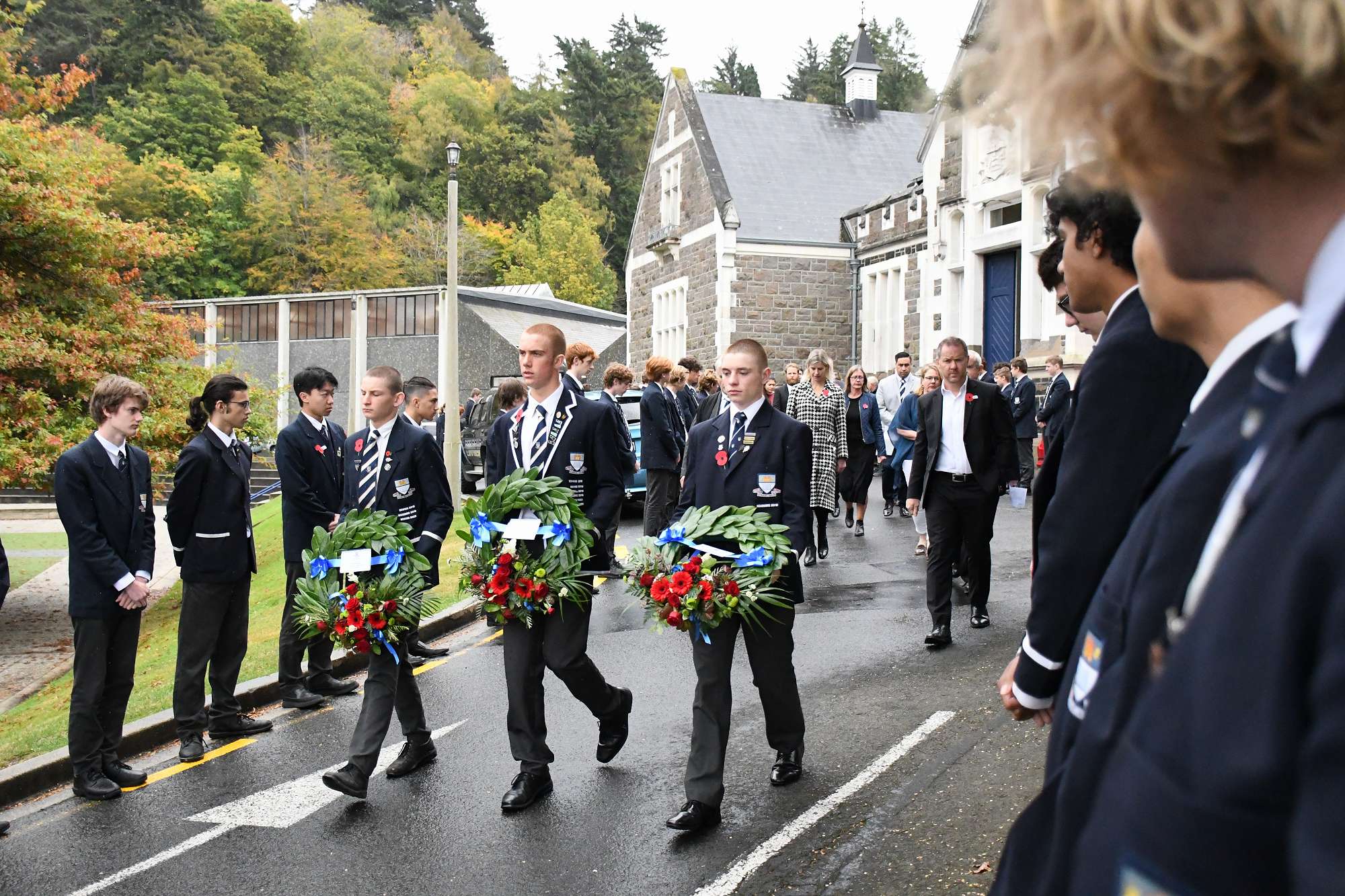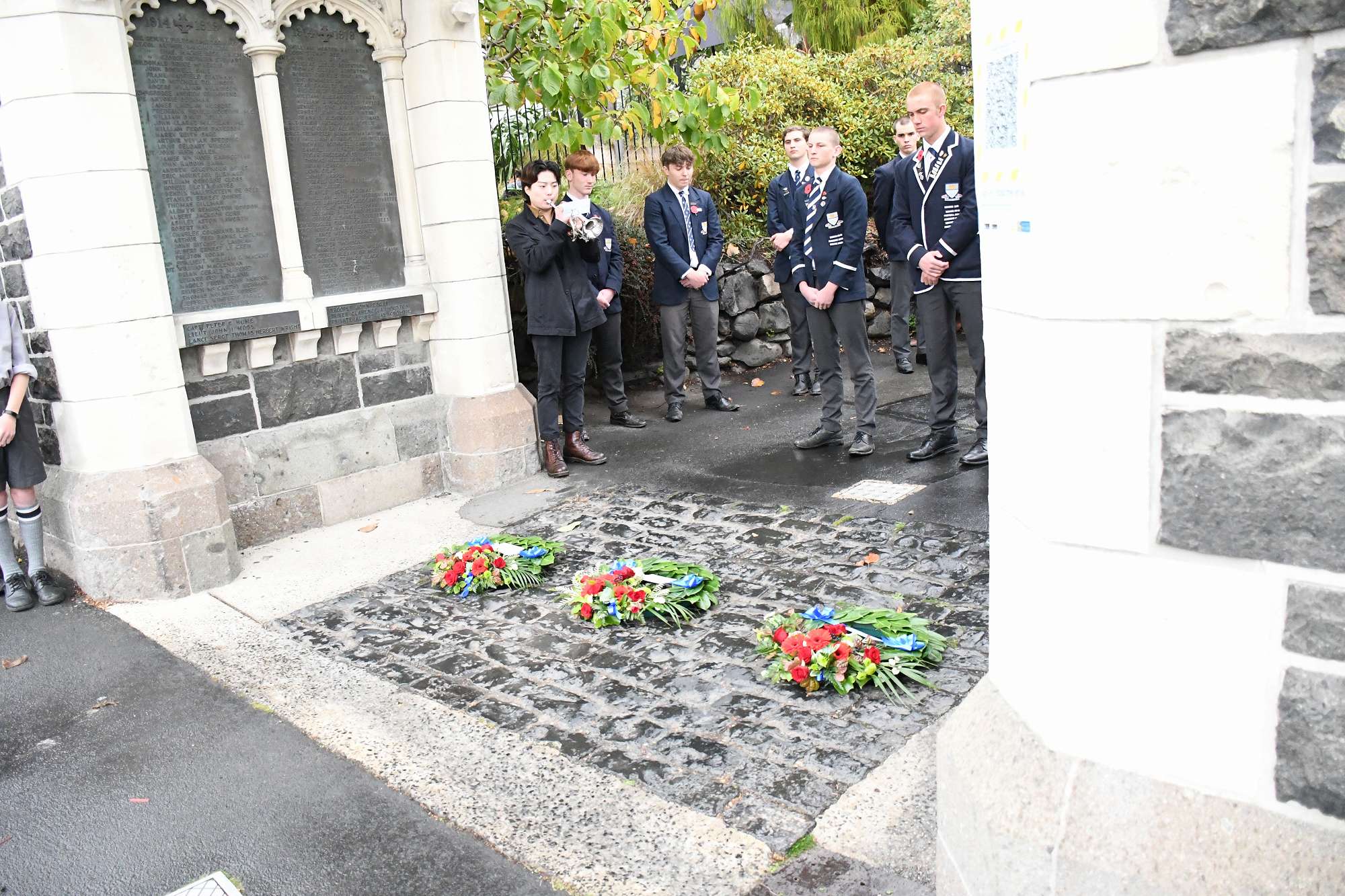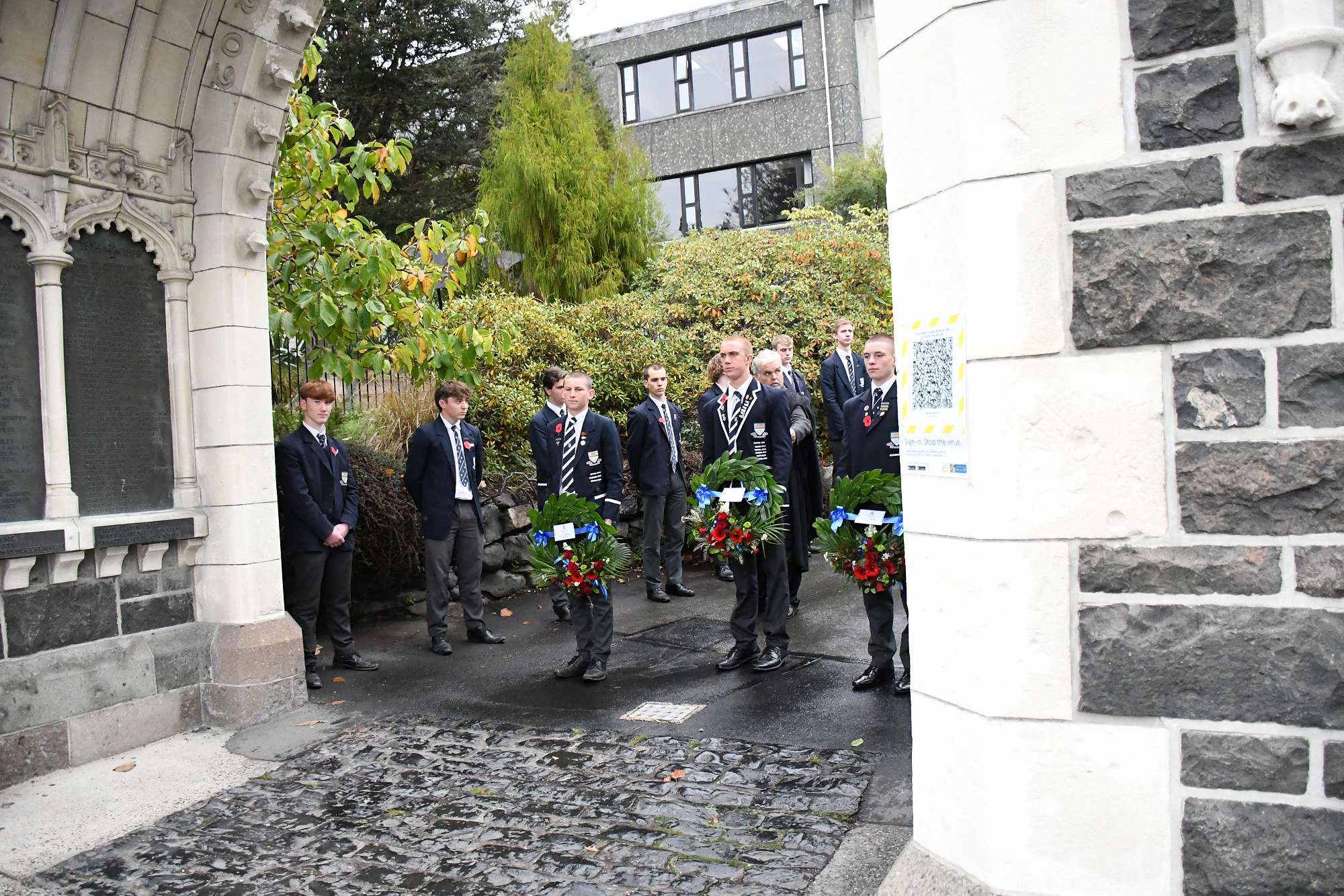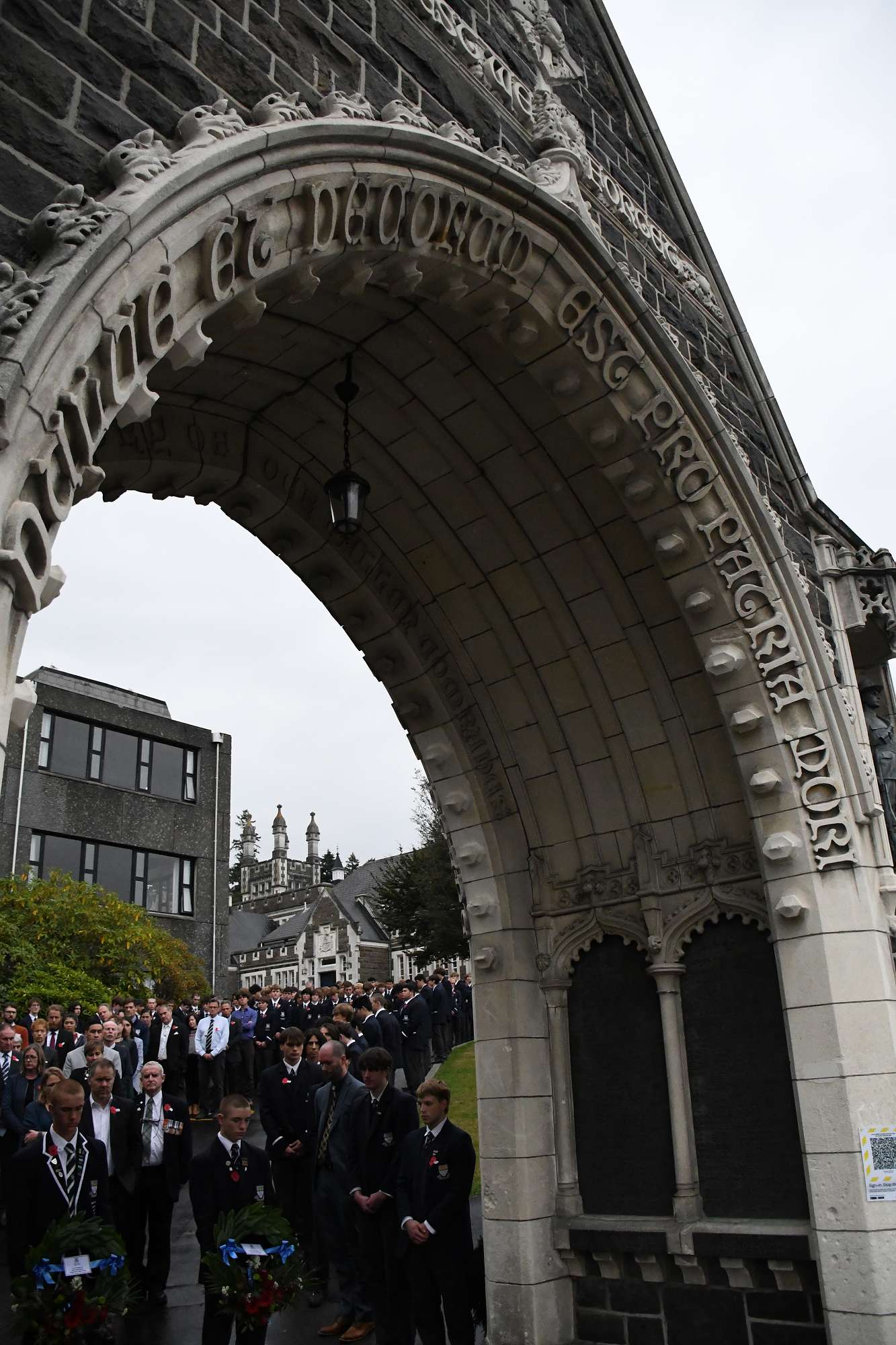 At the end of the service the students lined the path to the archway where wreaths and poppies were laid in remembrance. The school bell tolled 36 times to remember those old boys who fell in the Gallipoli campaign.
