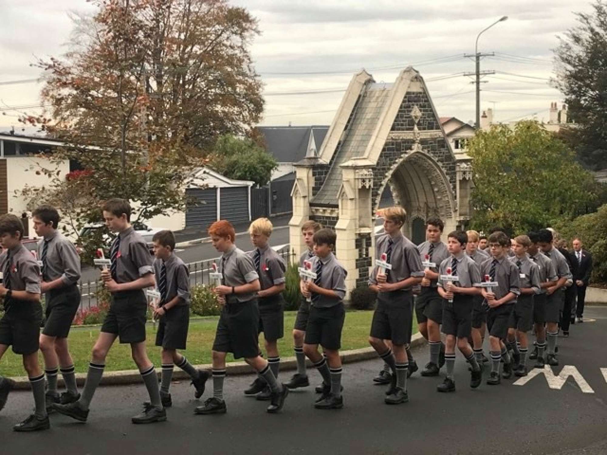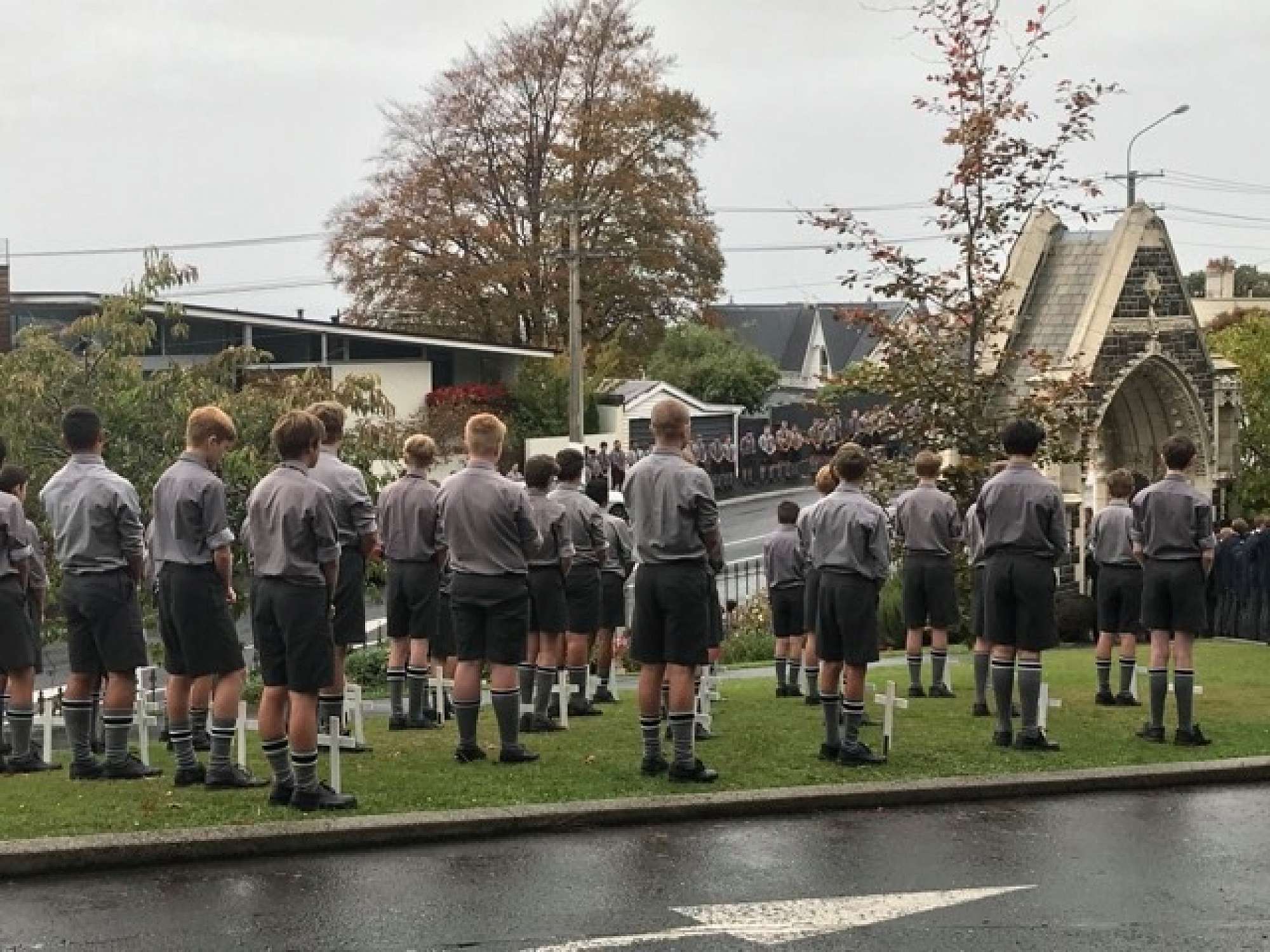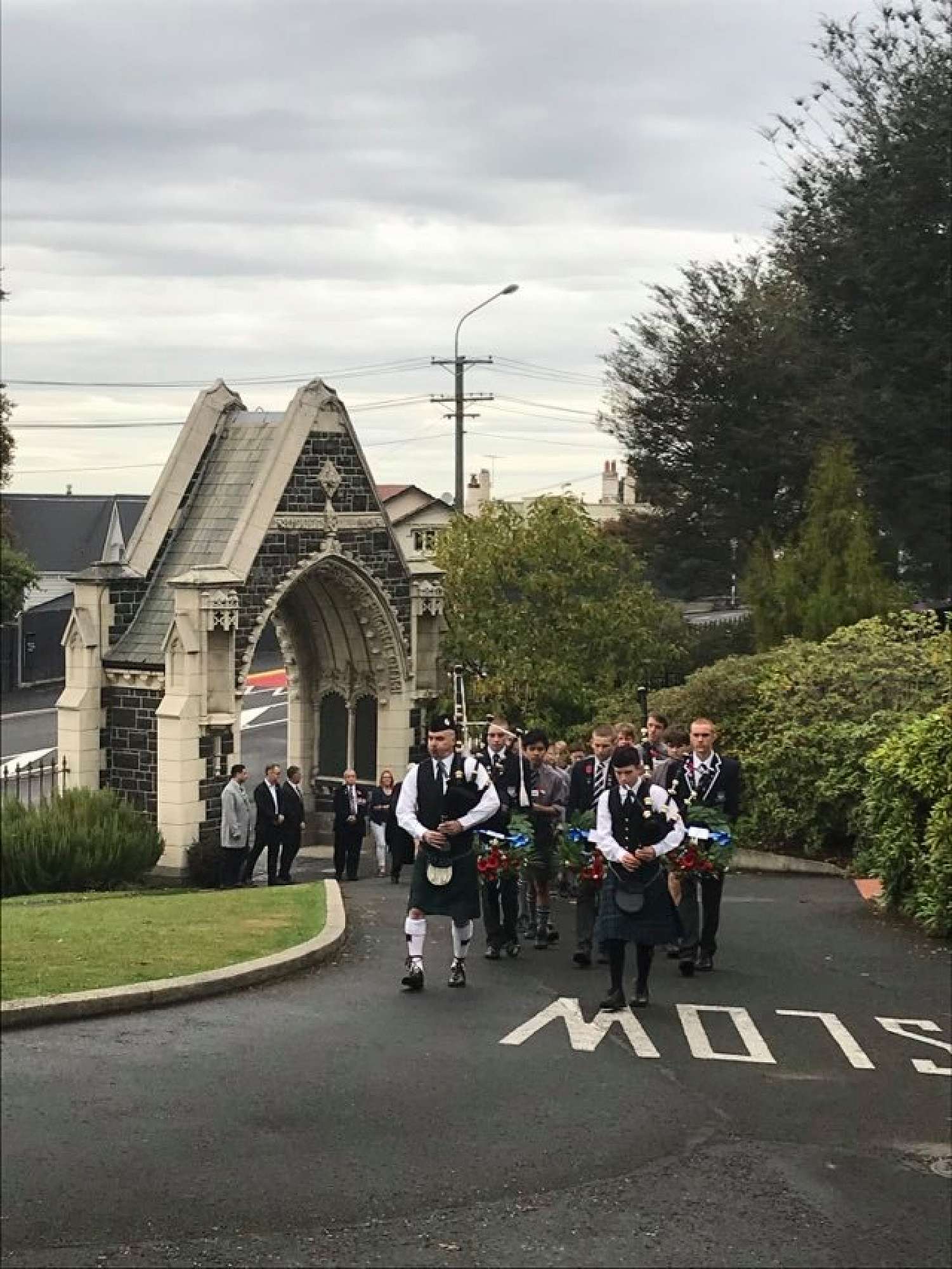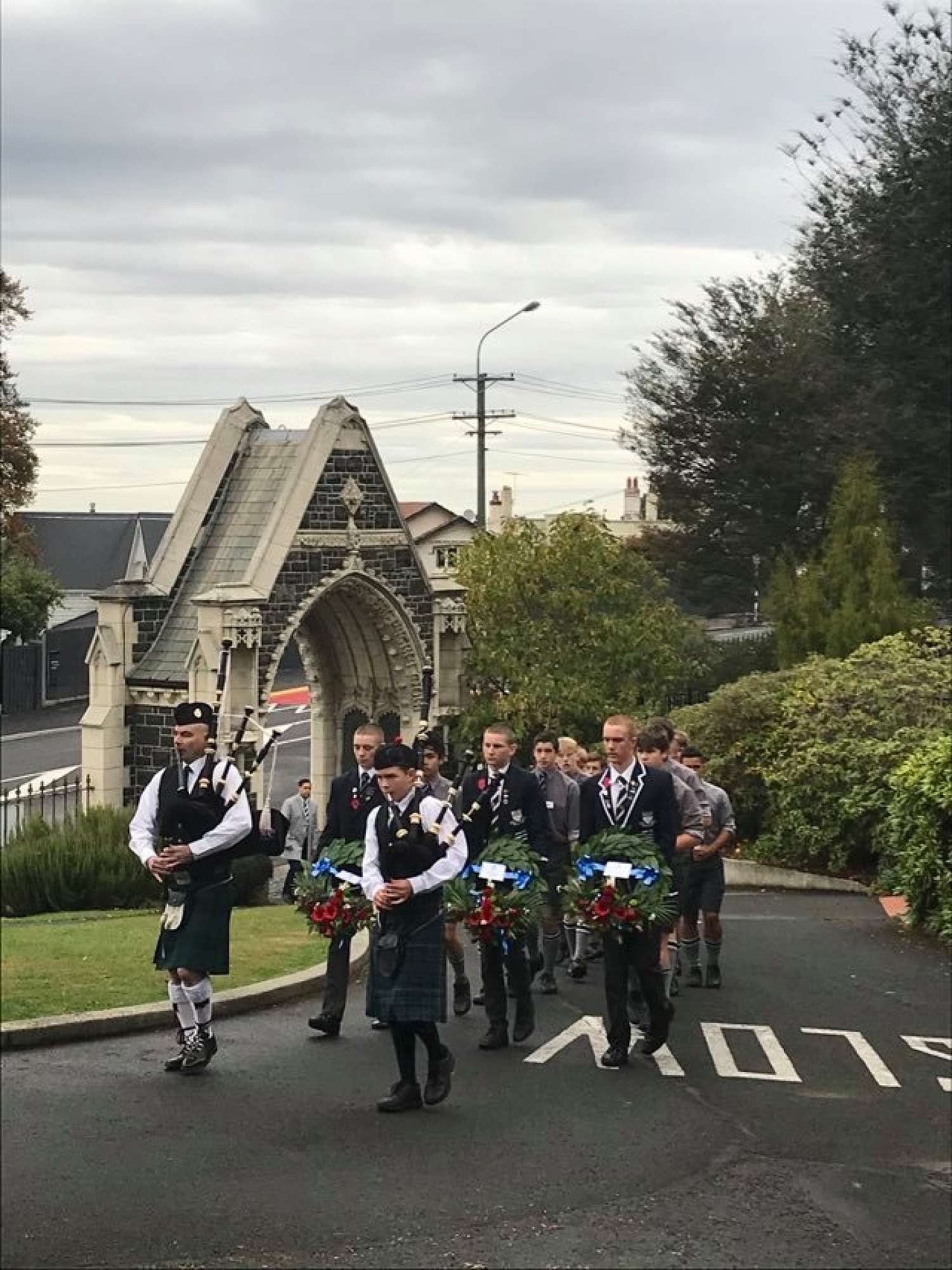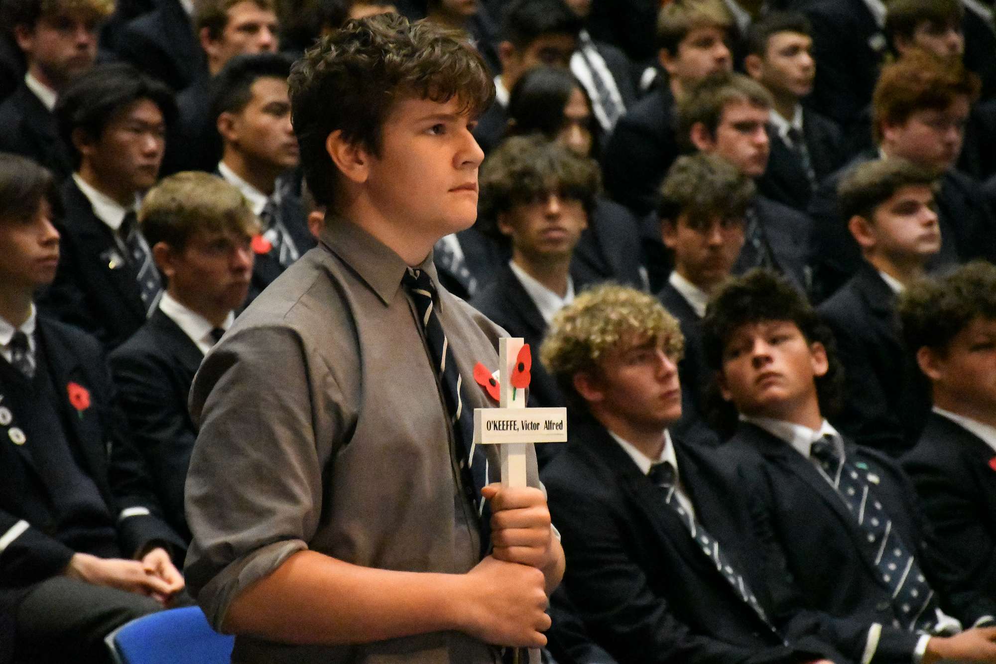 At the end of the service the students lined the path to the archway where wreaths and poppies were laid in remembrance. The school bell tolled 36 times to remember those old boys who fell in the Gallipoli campaign.