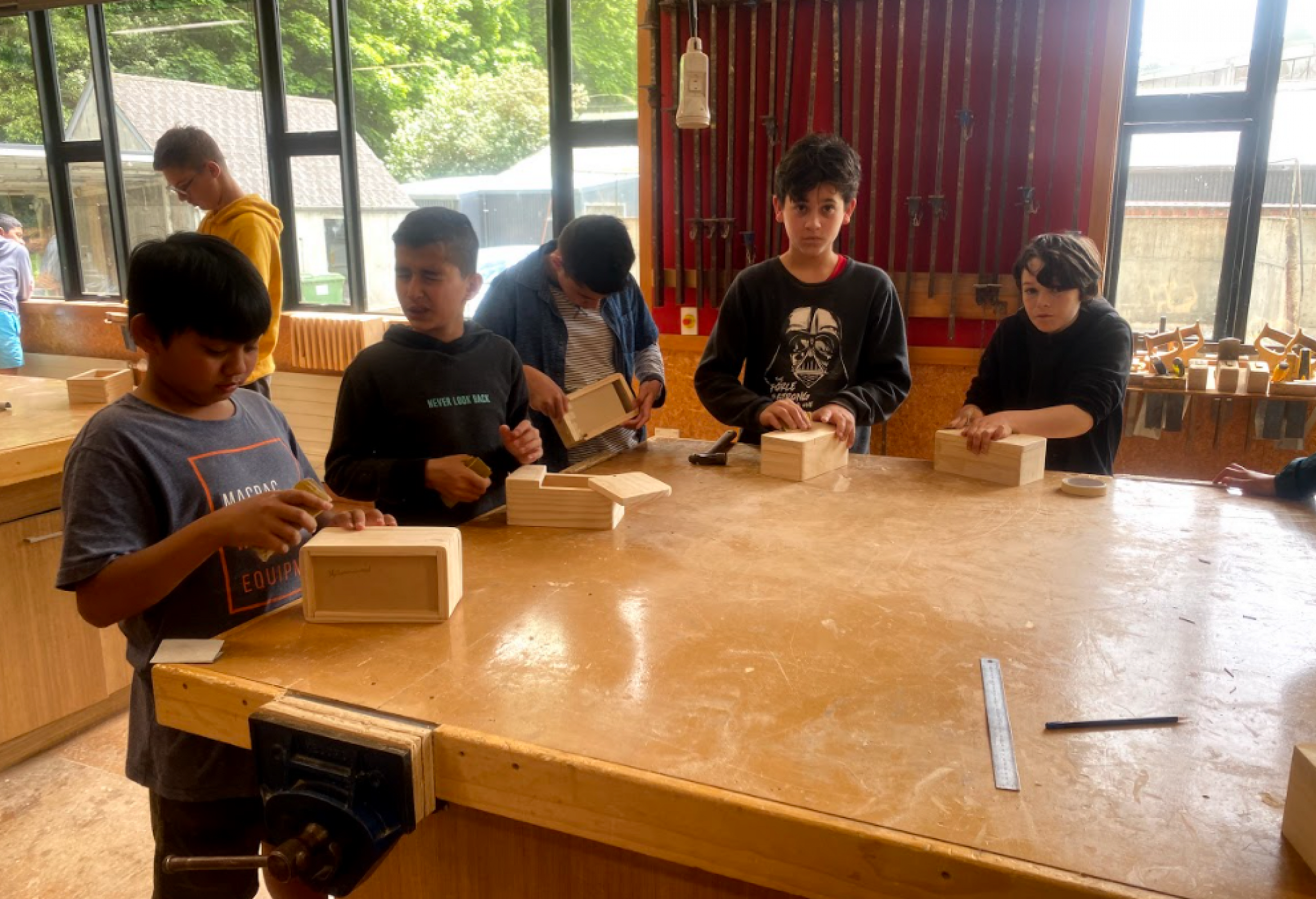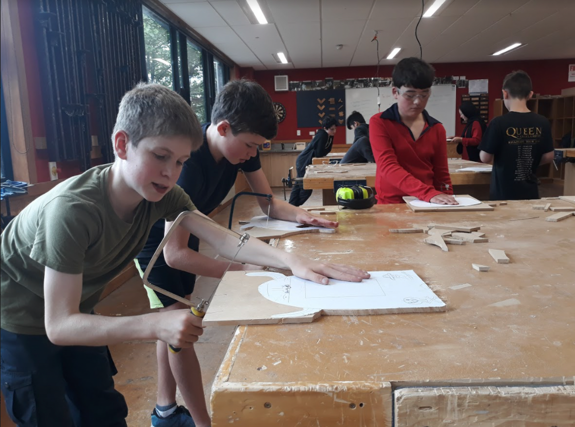 The Year 7s made storage boxes, learning how to join wood. The students showed their creativity by designing individual opening mechanisms. The Year 8s created individual picture frames inspired by animals, musical instruments, and other interesting things like a trident.