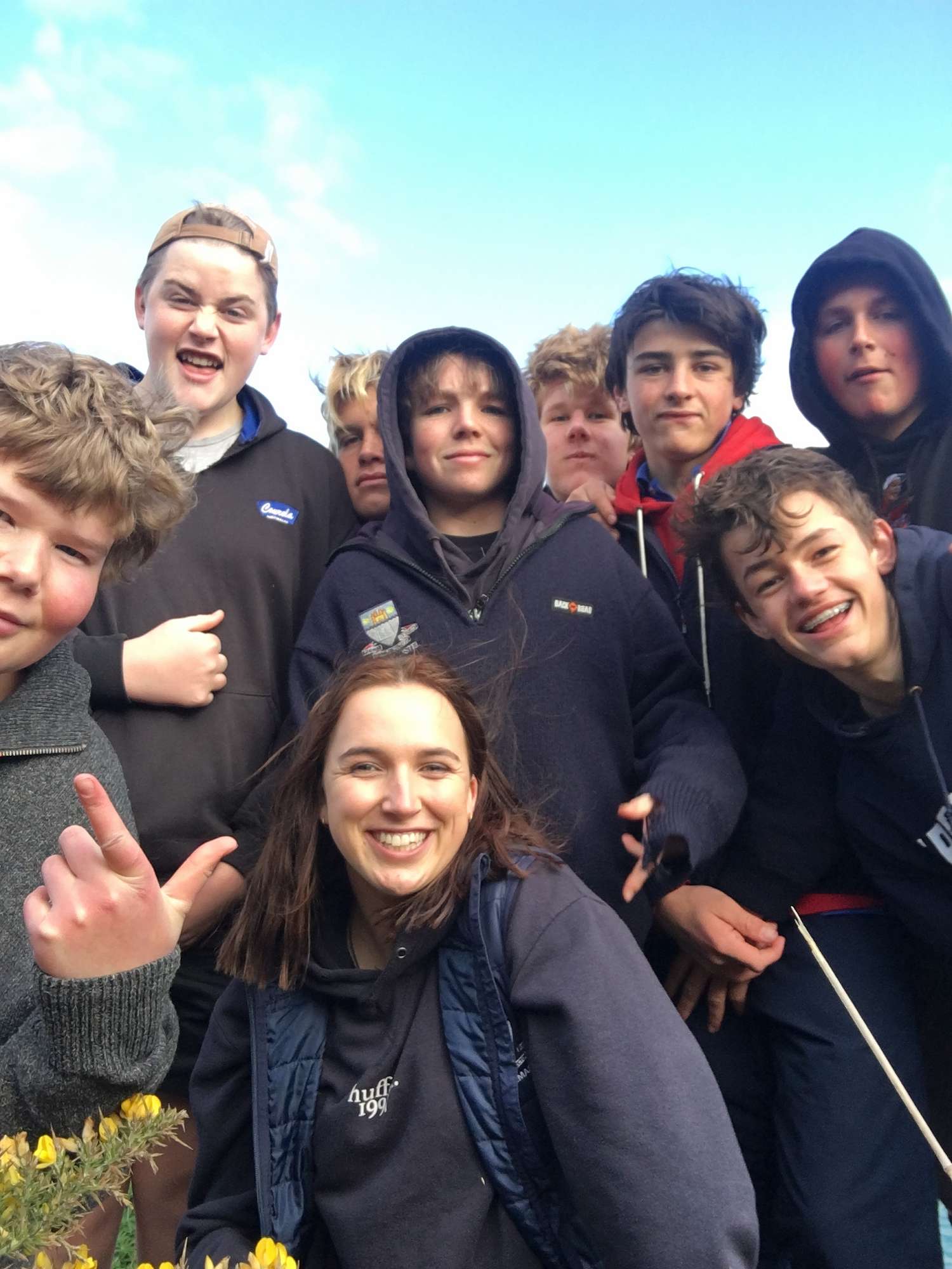 Some of the Year 11 boys, with weekend supervisor Claudia Wollaston, went for a walk along the clifftops at the southern end of St Clair beach on Sunday. It wasn’t great weather compared to Saturday, but the boys had an enjoyable time.