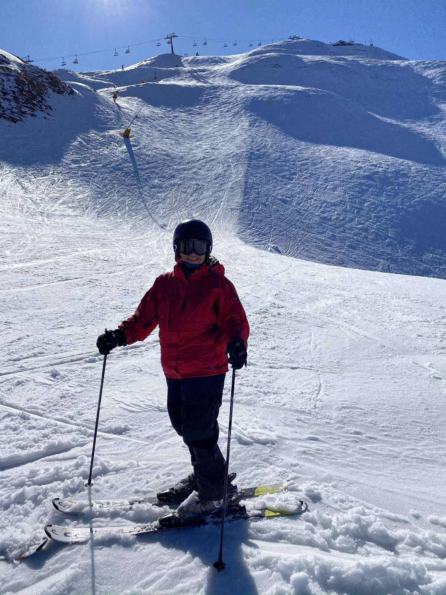 Fortified by an excellent cooked breakfast, we were ready to hit the slopes. The problem was getting there. Rain had fallen during the night then had instantly frozen. Walking across a flat sheet of ice is tricky enough, but on a sloping sheet of ice it is almost impossible to retain one’s dignity. A few entertaining spills and minor bruises later we made it intact to the base building and were issued with the appropriate gear. Lessons followed at 9am. Even for total beginners it proved a lot easier to master the new sport than the 5 minute walk up the road to get there.