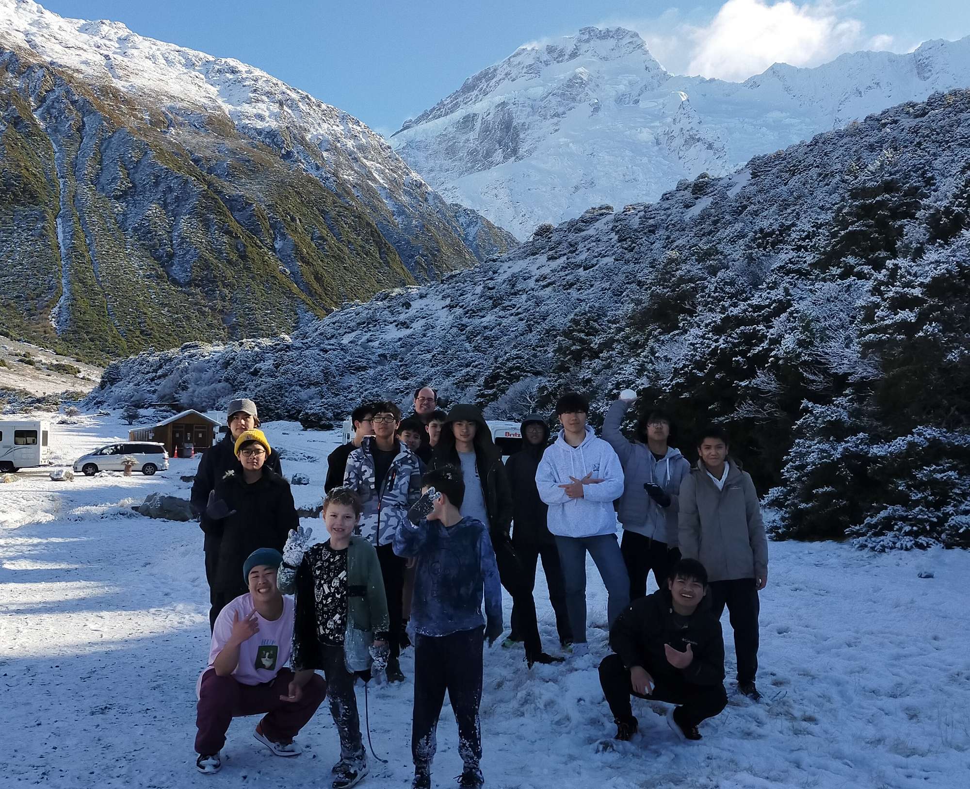 After a short overnight stay in Wanaka we headed to Mt Cook for a walk. Upon our arrival we were greeted with a significant amount of snow after a decent dump during the night. Our plans quickly changed from a walk along the Hooker Valley to a giant snowball fight! When the boys had had enough of throwing snowballs, we retreated to the Tekapo Hot Springs to recuperate and rest some tried and sore bodies.