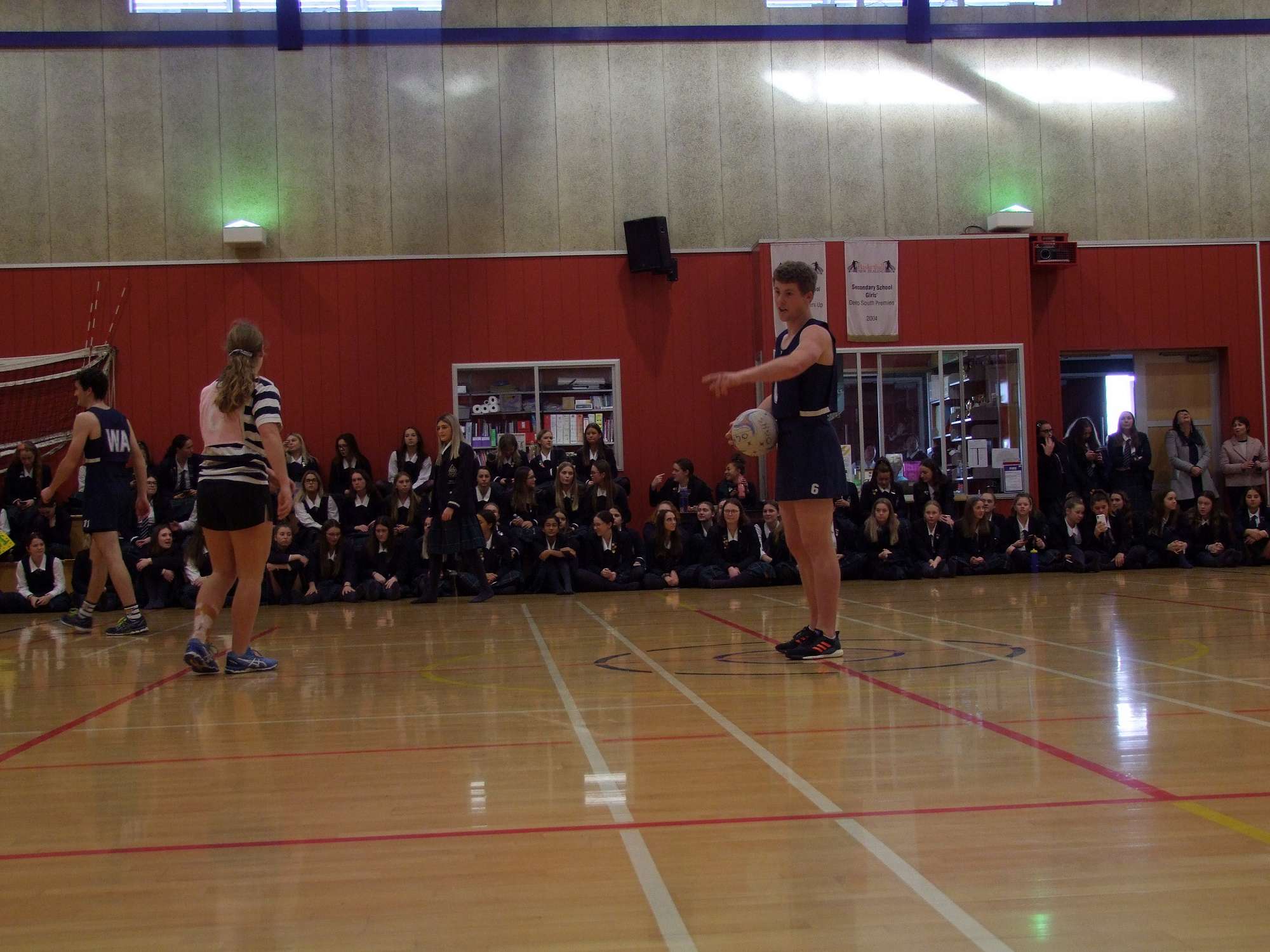 With our netball dresses on, we made the greatest entrance in prefect netball history. Hunter Burgess piped us in with utter professionalism. This gave us the upper hand before the game even started.