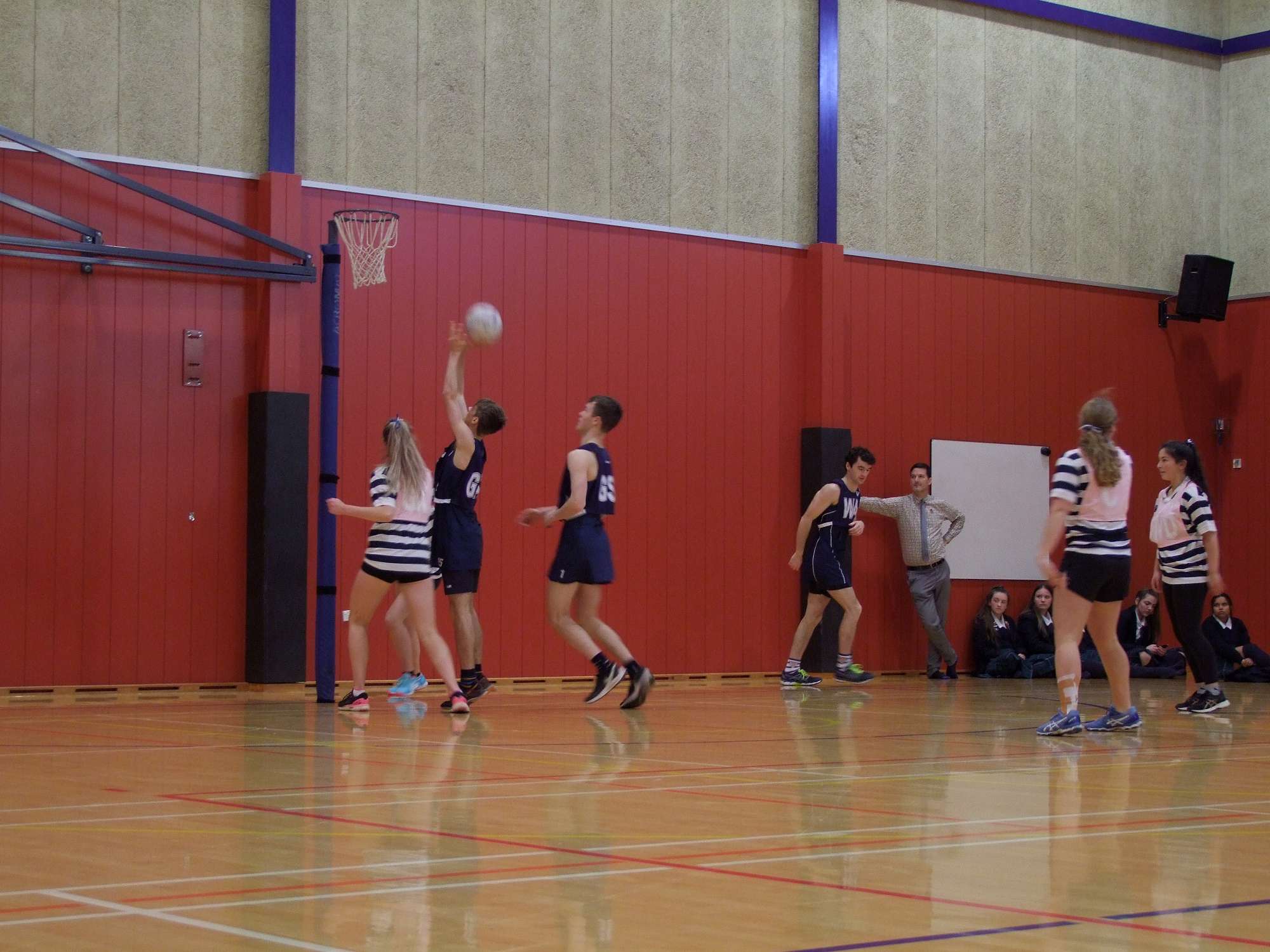 It went downhill for the girls from there. We dominated every quarter right to the end even though we were outnumbered 25:13. Bob Lee showed his physicality throughout, sending multiple girls to the floor. Cameron Moffitt outpaced everyone in the midcourt and Leo Holt and Elliott Alloo were maestros in the transition. Noah Rooney and Walter Savage had more interceptions than could be counted. Oliver Haig and Michael Ruske were the star shooting pair. The two had the play of the game with a spectacular rugby lift that ended in Michael slamming it home.