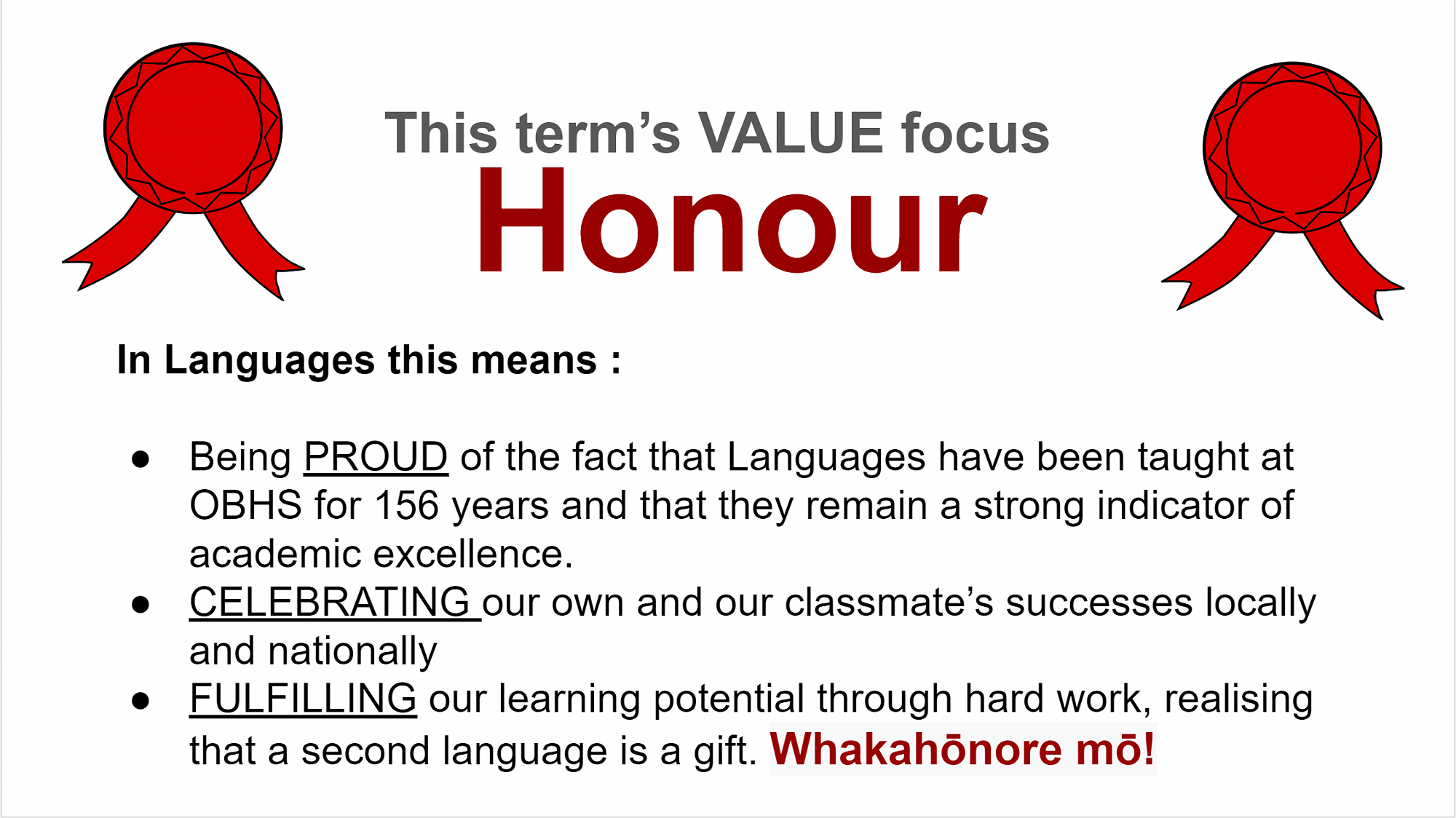 Both boys are to be commended for their efforts, starting to work towards these awards during the lockdown. It is fitting that Honour is one of our focus values for this term and Luke and Talk have certainly lived up to what this means in Languages.