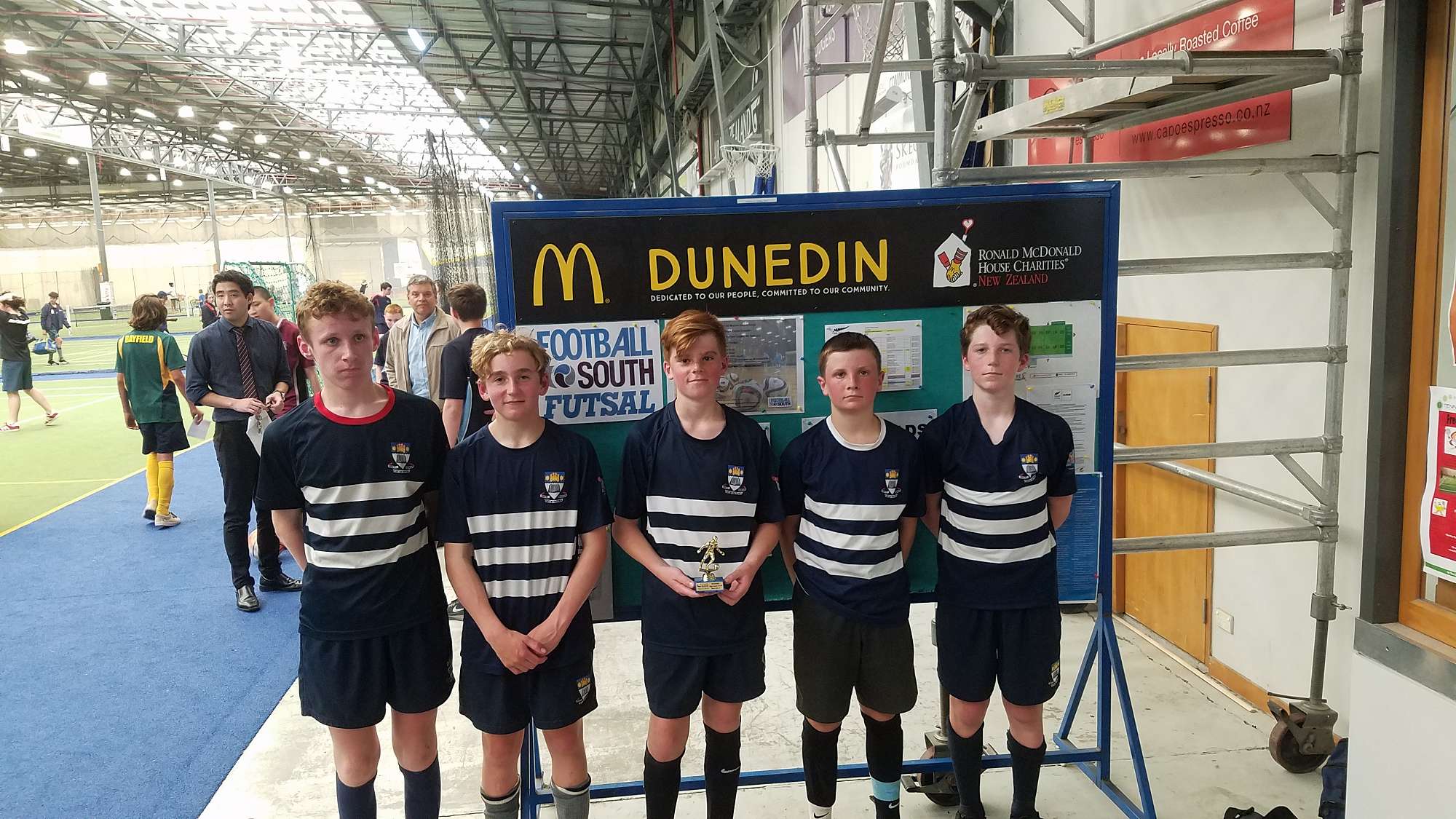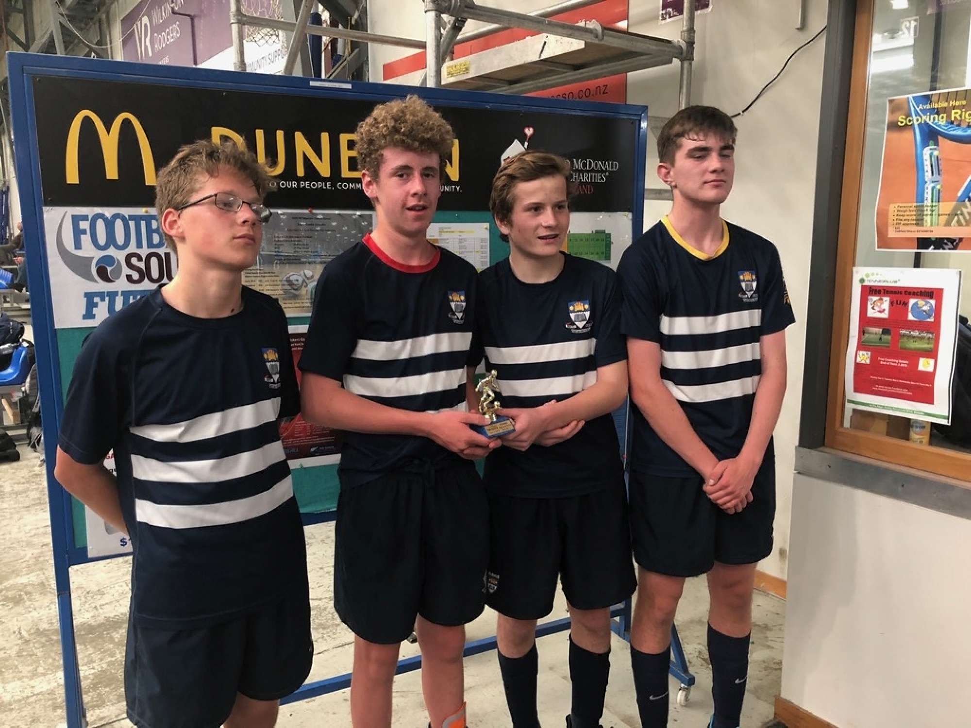 Otago Boys' High School had four teams involved directly in the finals. Two of these were playing off the the premier trophy! In an evenly matched game, the 10 Blues won 4 nil over the 10 Golds to secure this title.