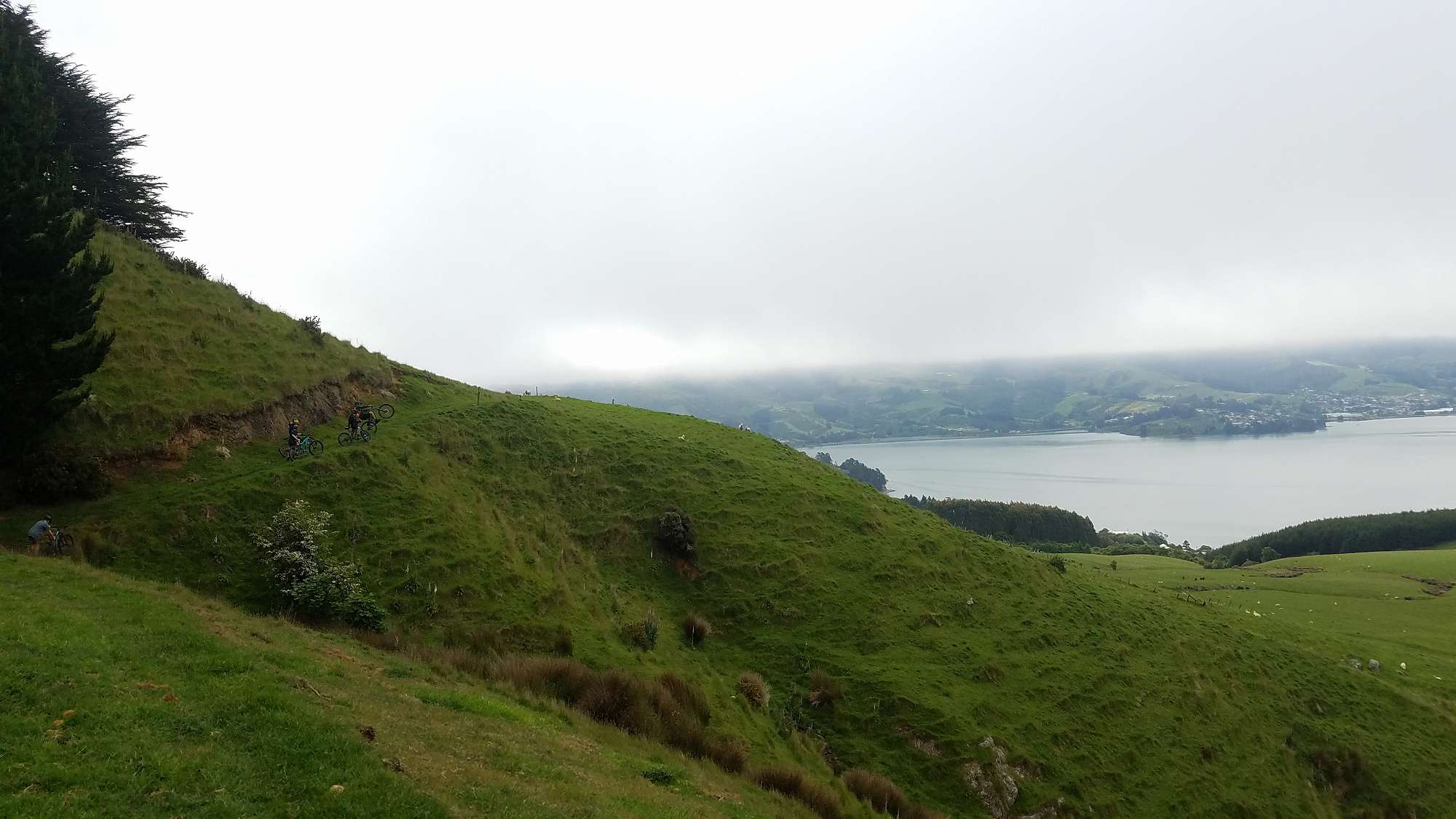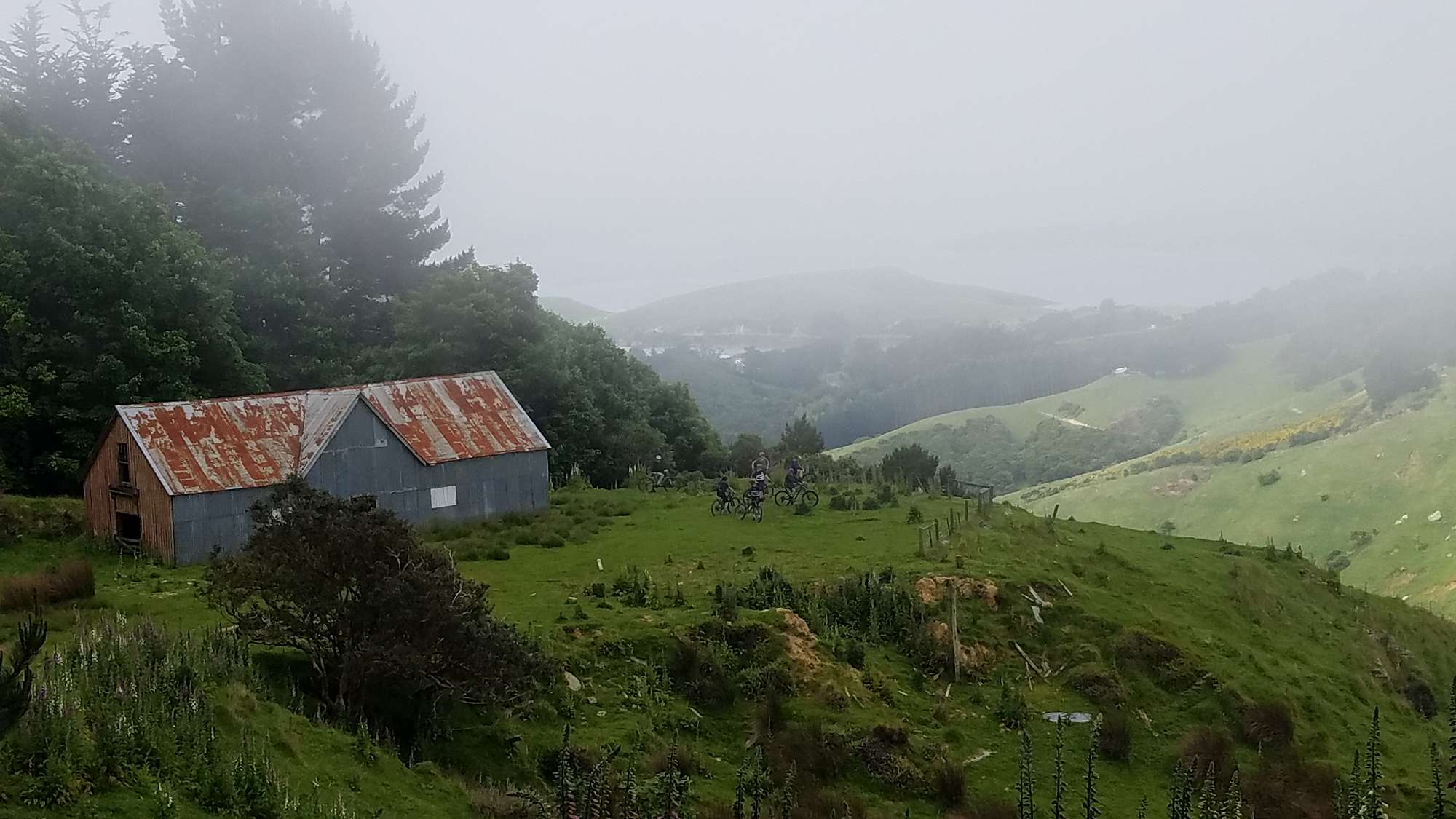First we had a run down the Karetai Track. Coming out of the clouds we were greeted by a fantastic coastal view. A quick patch up of Pieter van Rooyen, who came off again this week, and we were up to Larnach Castle. From there it was down the Camp track and onto the McTaggart track. The ride finished with a blat around the pump/jump track.