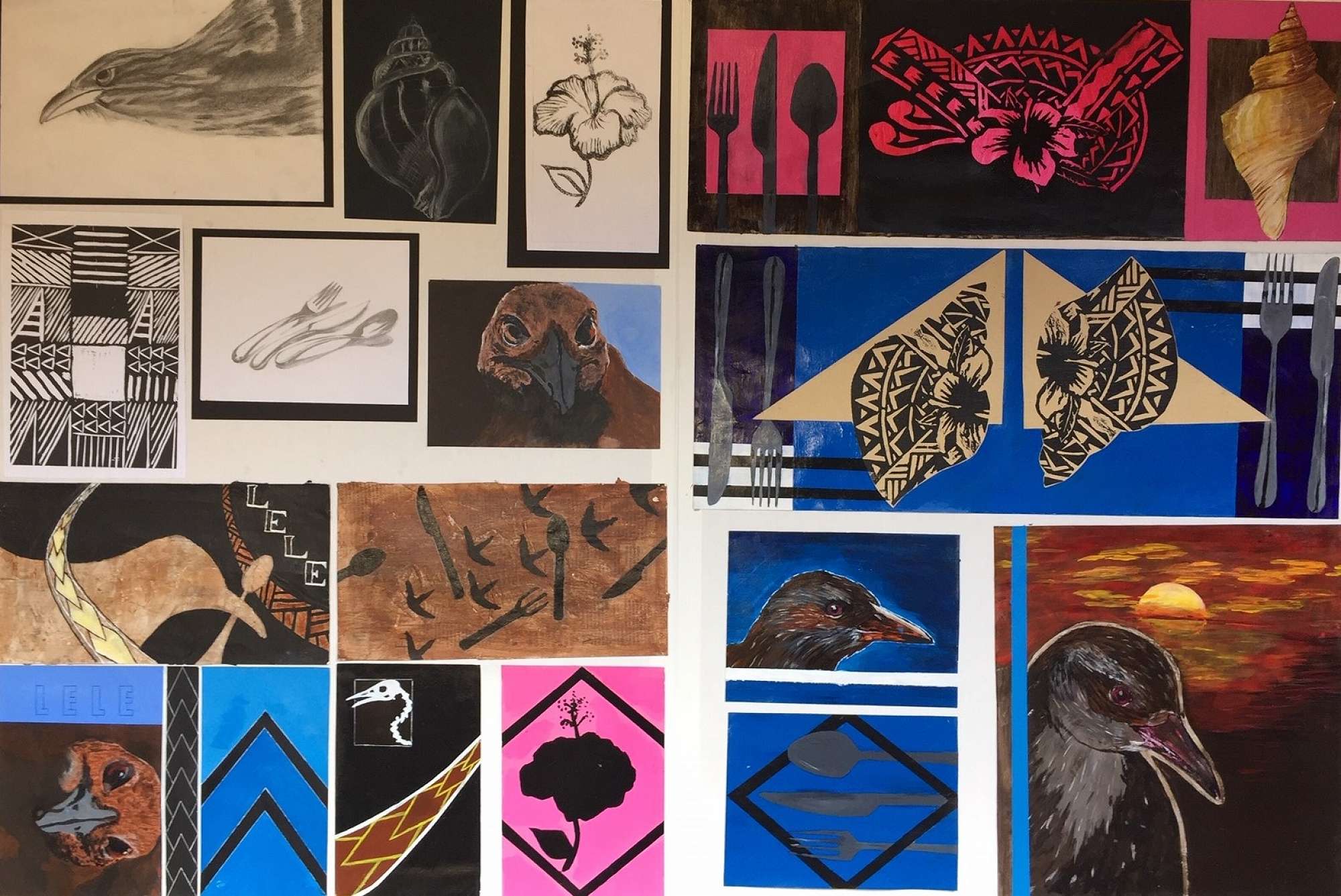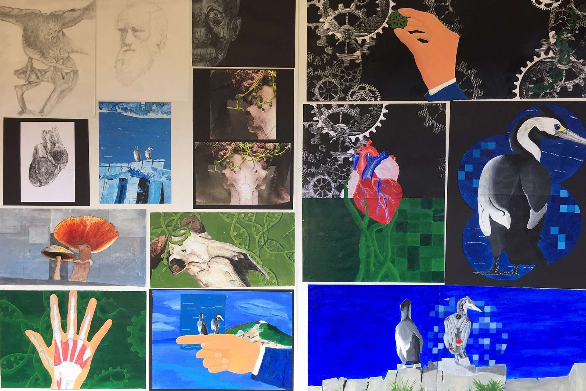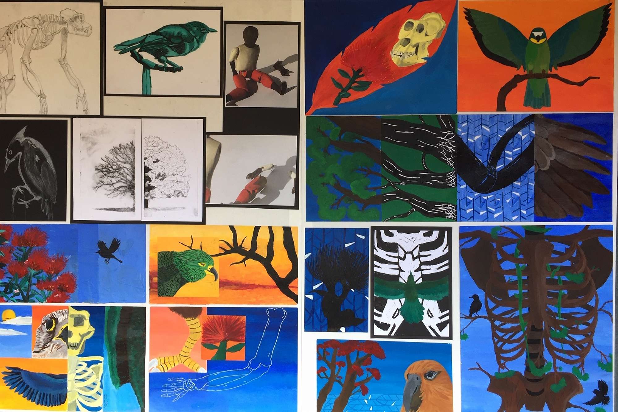 A full years work, which began with a trip to the Otago Museum to help students find their own subject matter. Throughout the year each student, using the same subject matter, developed a range of artworks from drawing, photography and painting, through to printmaking and mixed media.