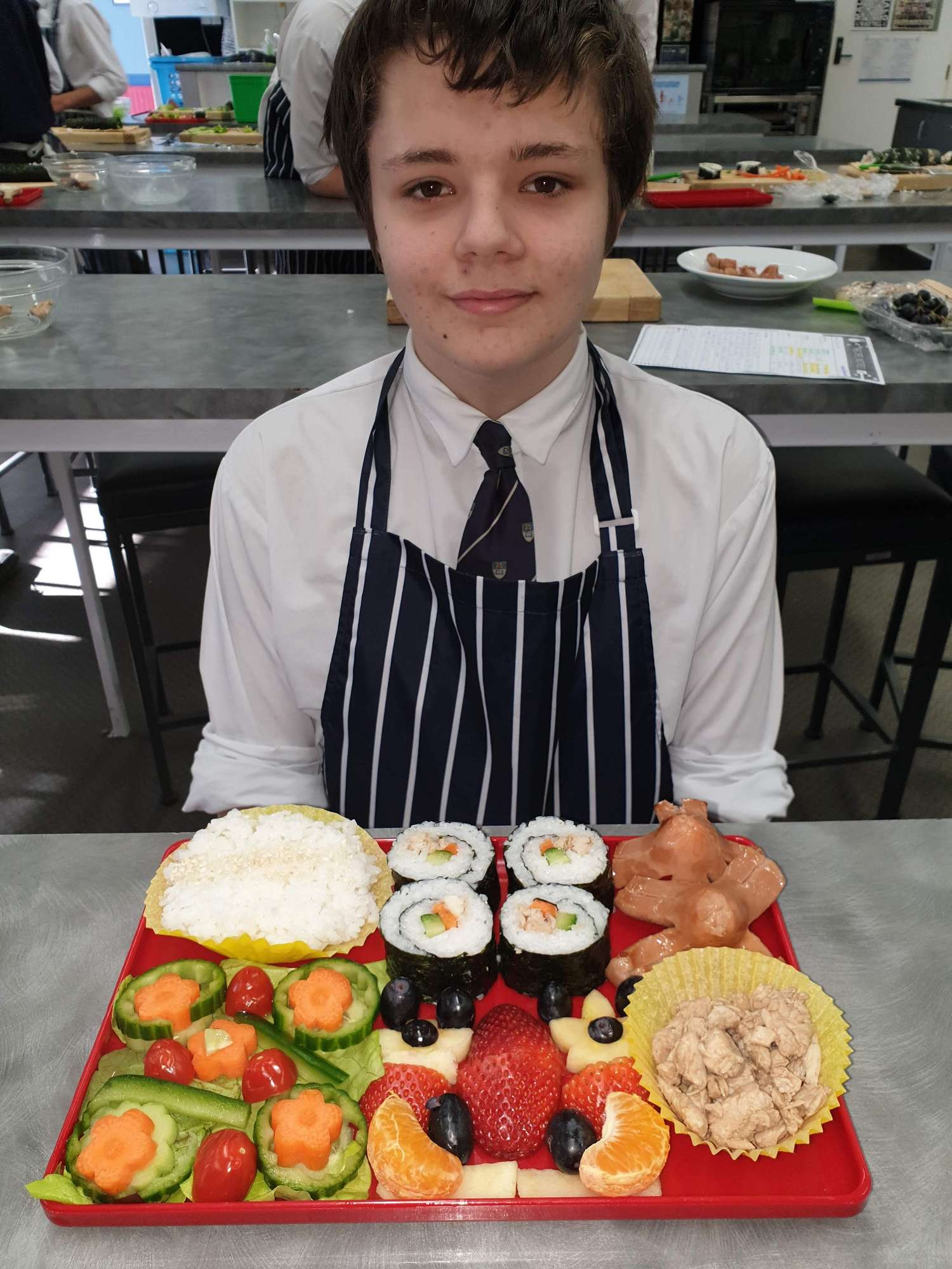 This year, students used Japanese food and Culture as their comparison. Students have enjoyed making a variety of sushi, tempura vegetables and teriyaki chicken. Their final assessment task gave them an opportunity to show off what they had learnt by designing and making bento lunch trays in lieu of bento boxes.