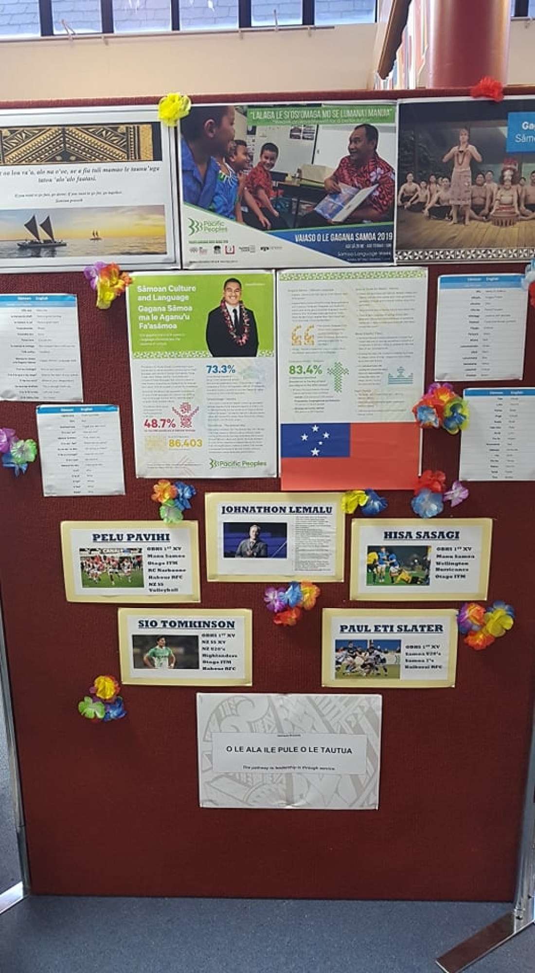 - A SLW display in the library highlighting famous old boys of Samoan descent such as Johnathan Lemalu and Sio Thompkinson.