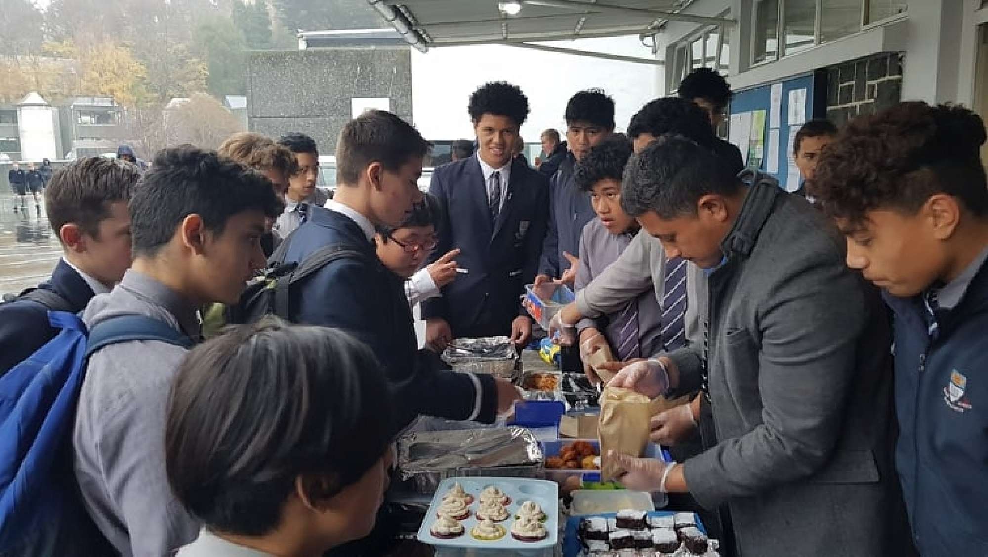 - Students braved the rain and cold on Thursday lunch for a cake stall that raised funds for our Polyfest group. Happy customers enjoyed island treats as well as homemade baking put on by parents and staff.