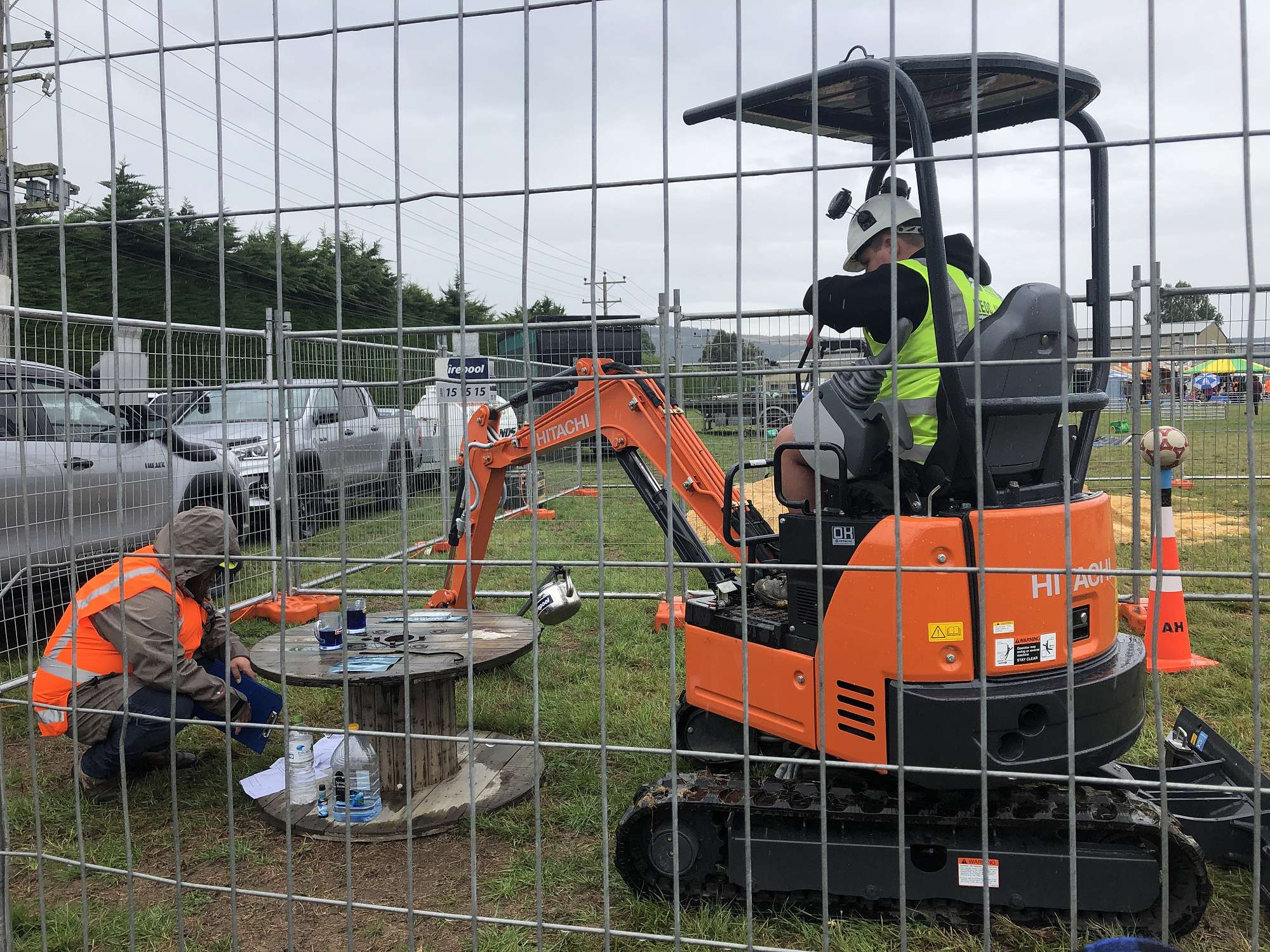 The competition involved completing multiple tasks on various sized excavators ranging from 1.5 ton to 25 ton. The tasks involved: trenching to the right level and depth, loading sand onto a 20 ton truck to the correct weight, curb crossing (crossing a pipe both ways without touching it), pouring tea from a teapot into a glass, stacking tyres, painting the CCNZ logo, balancing a ball on a road cone etc.