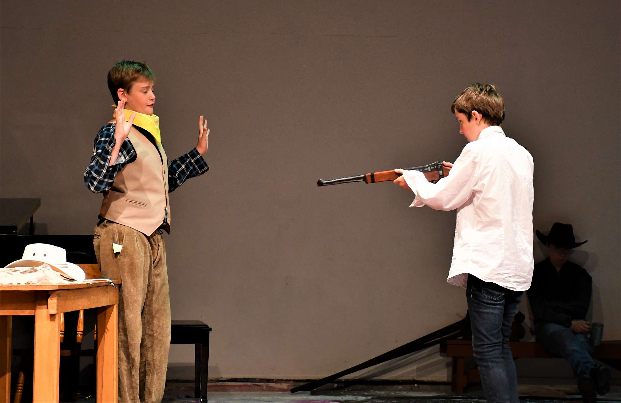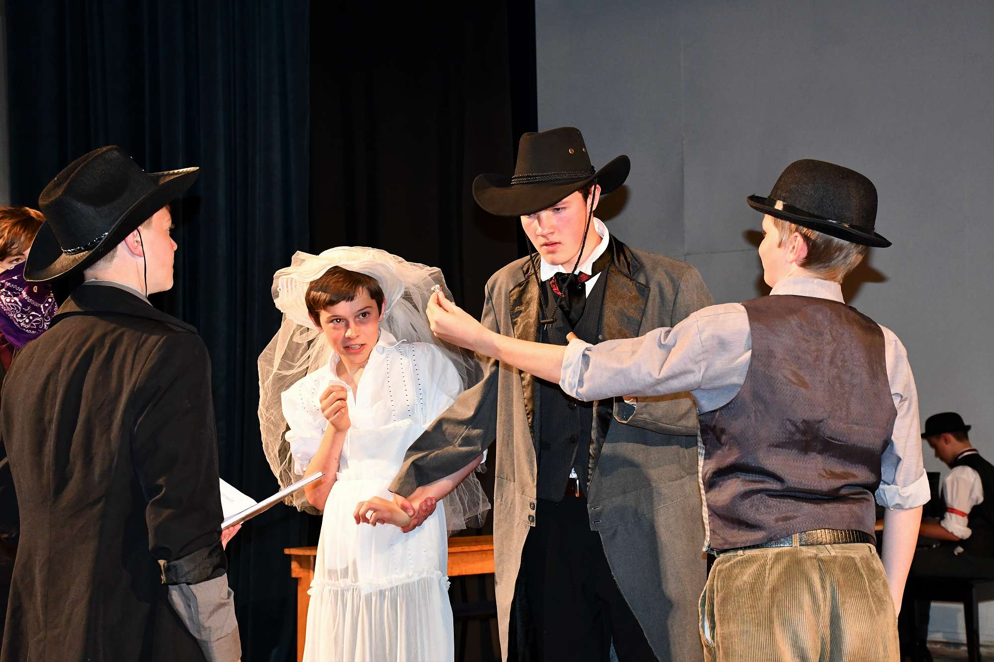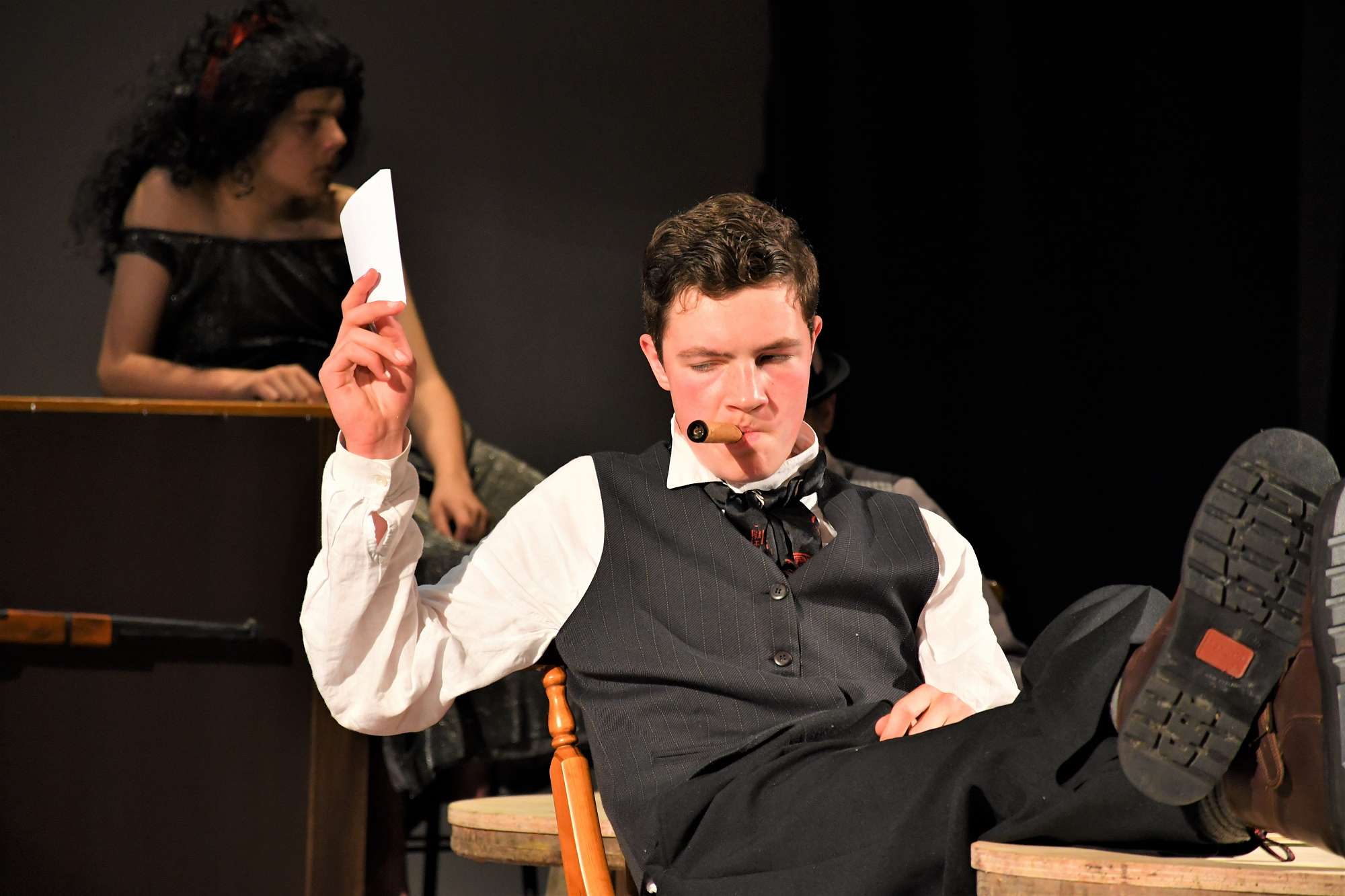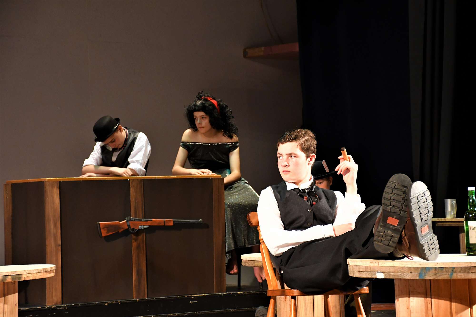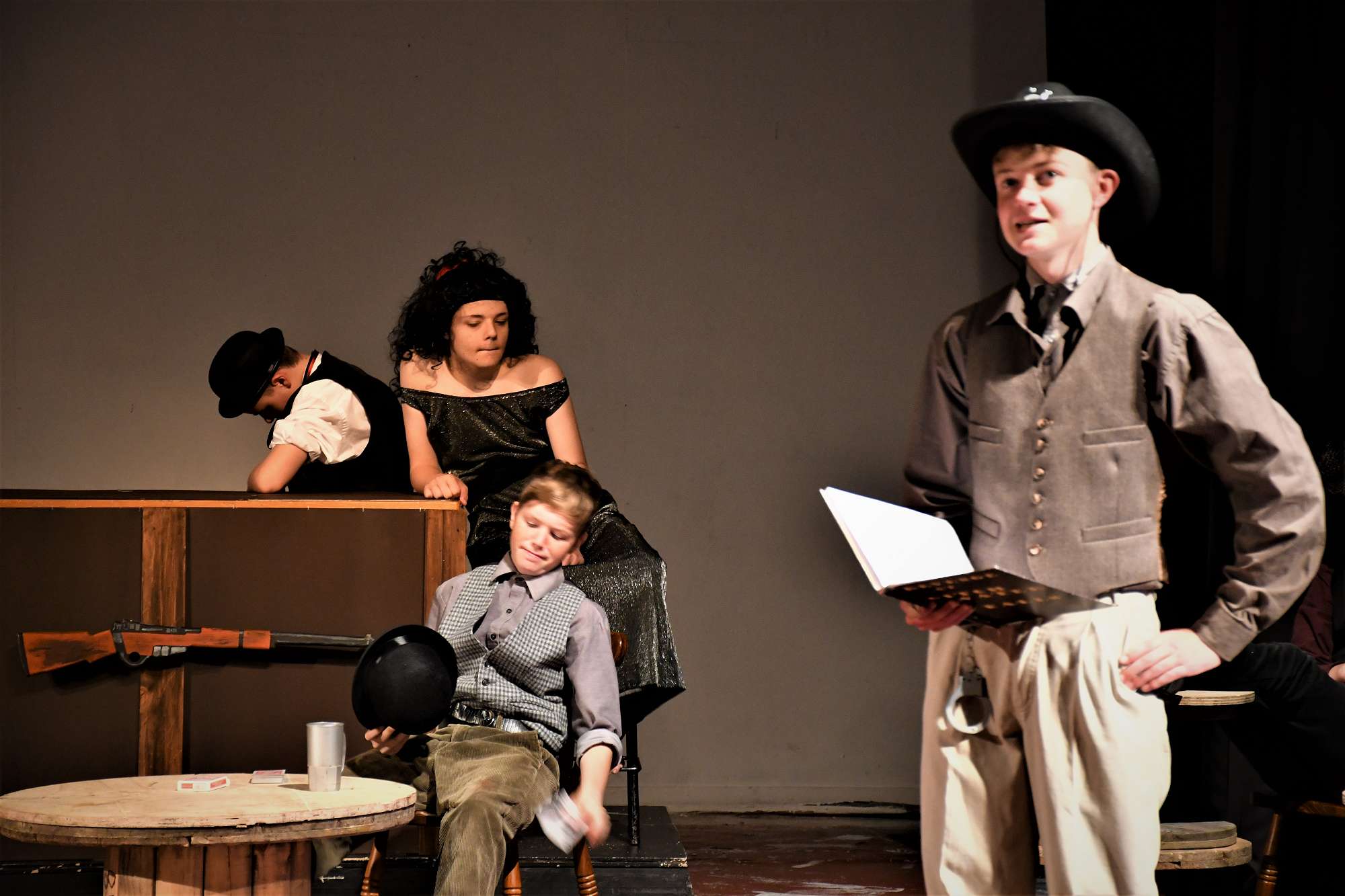 We rounded off the night with a lively production of Phil Mann’s Revenge! At Ditchwater Falls. Strong performances by all the actors enabled the audience to thoroughly enjoy this comic western where evil is thwarted and in the end the good guy gets the girl.