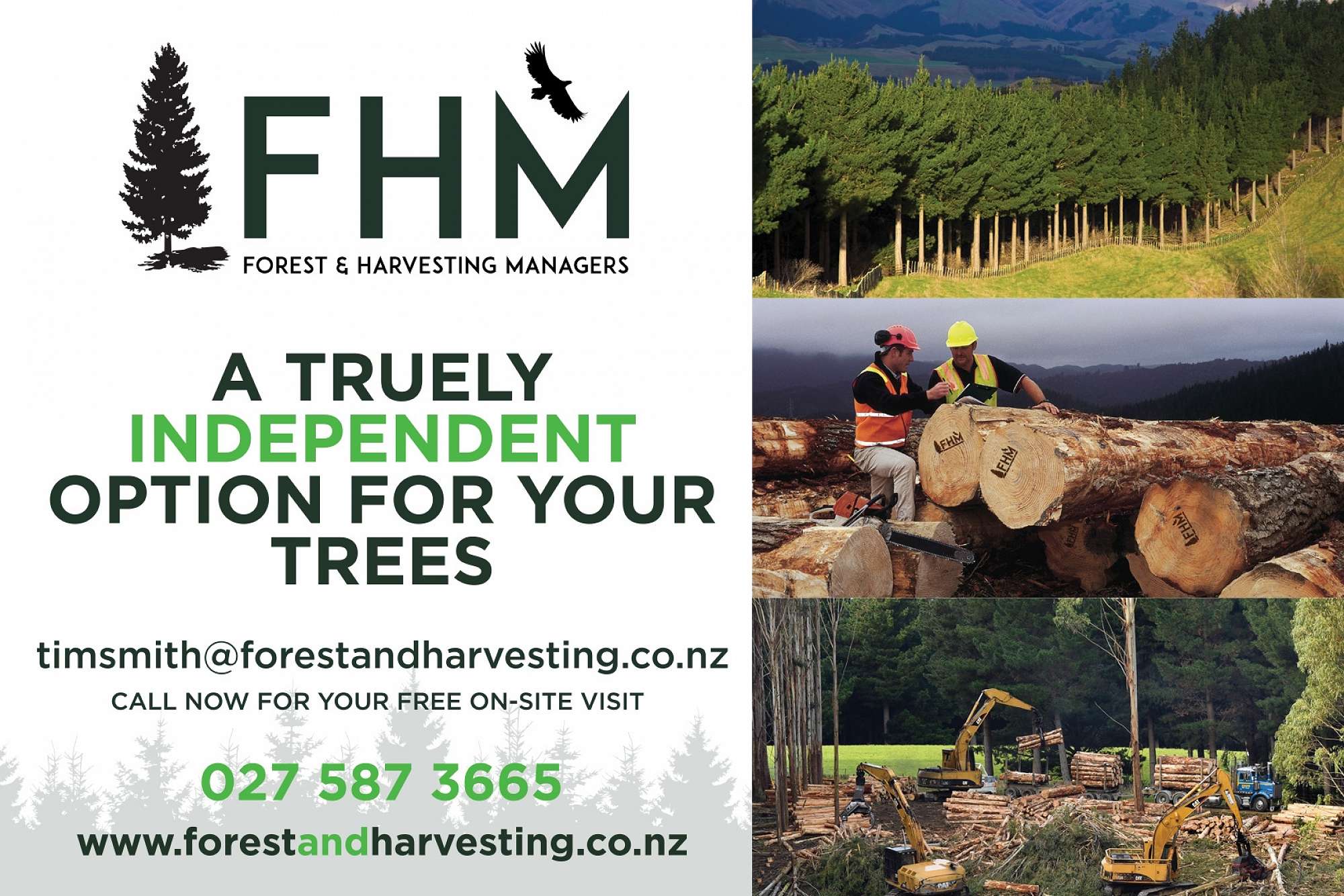 ''For all your harvesting & forestry needs'' - call Tim Smith 027 587 3665