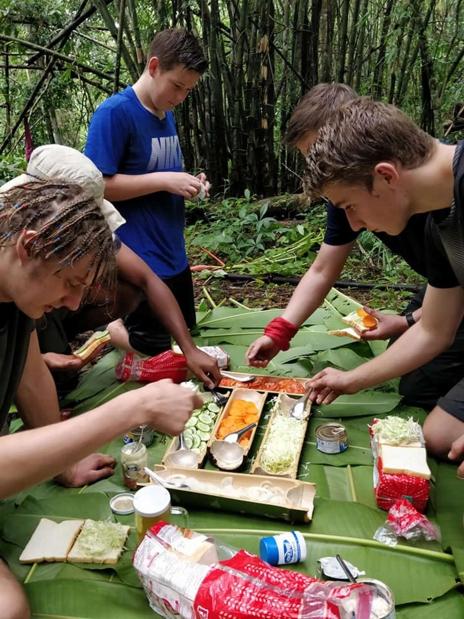 The second day was certainly the most challenging. All day we hiked through thick jungle over a high ridge of hills. This made for a long day and early night. We came to rest at a national park, where we hung our hammocks under the shelter of an open cafeteria. The next day we walked to a nearby waterfall in the hope of a dip before we departed for another day of trekking. But our hope was short lived. The heavy rain had turned the beautiful waterfall into an unstoppable force of nature, destroying any chances of a swim. Though disappointed, our attitudes were not deterred. We hiked along a long, muddy road to a school high in the jungle. Mr Zani and Matt Sims had an opportunity to head down to a local’s house and buy some clothes they had made. That night, after a filling meal and many milos, we played cards and told scary stories in candle light.