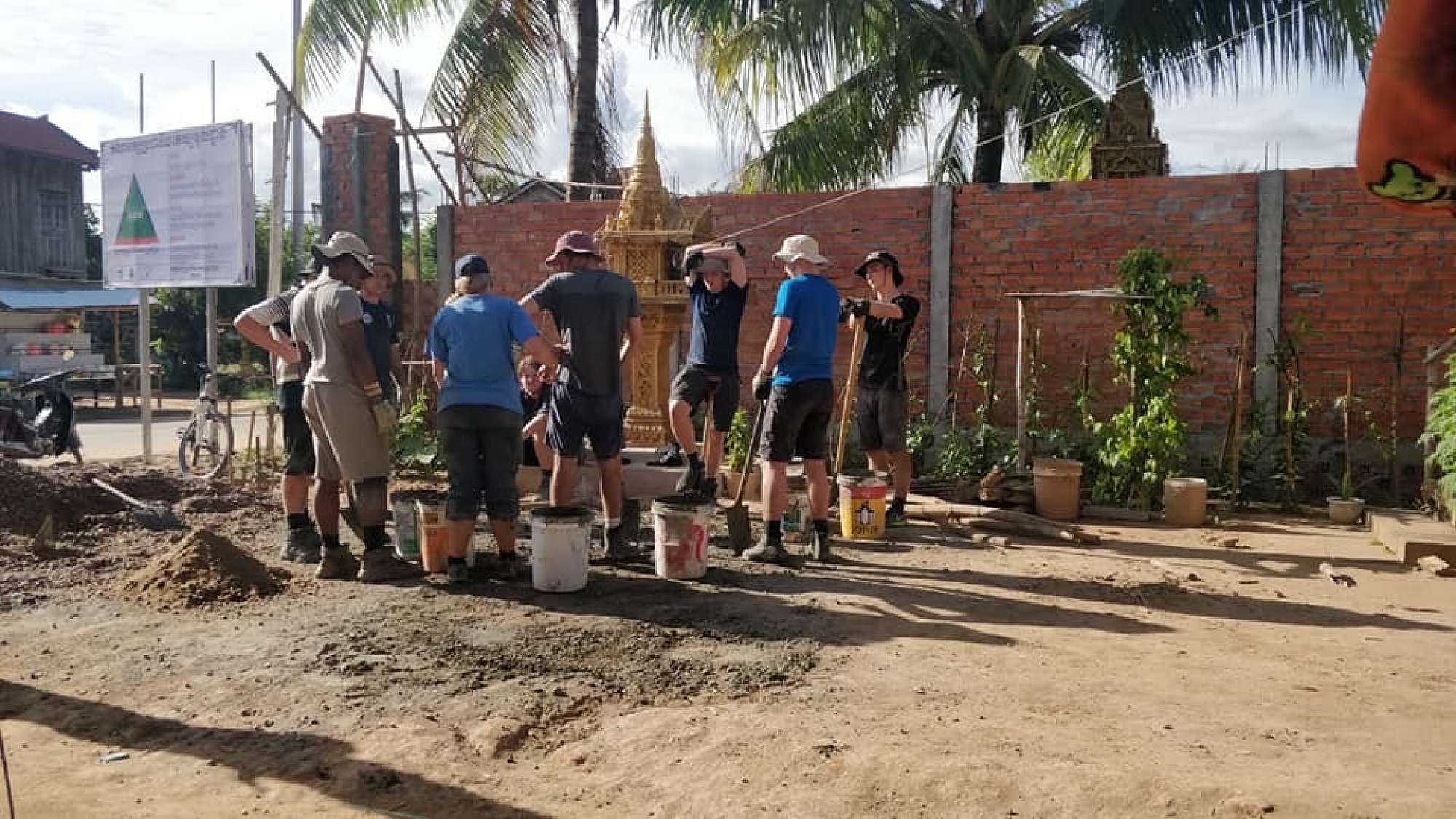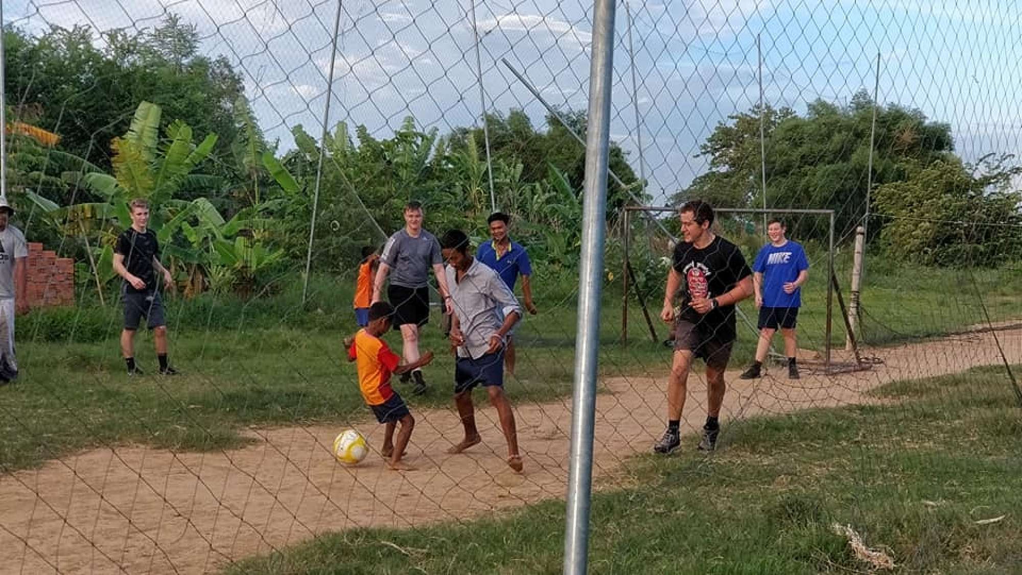 Our next step was the project. An hours boat journey down the Mekong River led us to a small island. When we arrived, we met many happy faces, young and old, that we would be working alongside for the next 4 days at Coconut School. It was not easy. Over those long humid days the boys mixed 37 bags of concrete with sand and stone, one by one. But, the meals were filling and the beds were comfy, so no one could complain. We also managed a few games of football and even an English lesson at the school. Memories I think we will all carry for a long time. Spending all day with these young Cambodian kids, who were so eager to spark up an English conversation was a real eye opener for many of the boys, and was a very influential part of the trip. After some heartfelt goodbyes, we left the island exhausted, and satisfied.