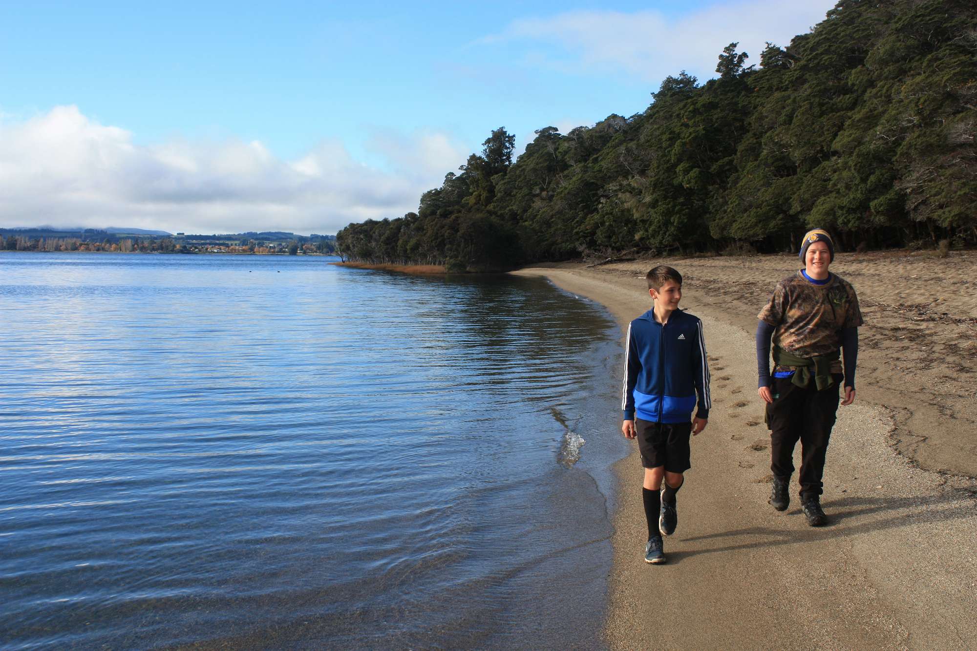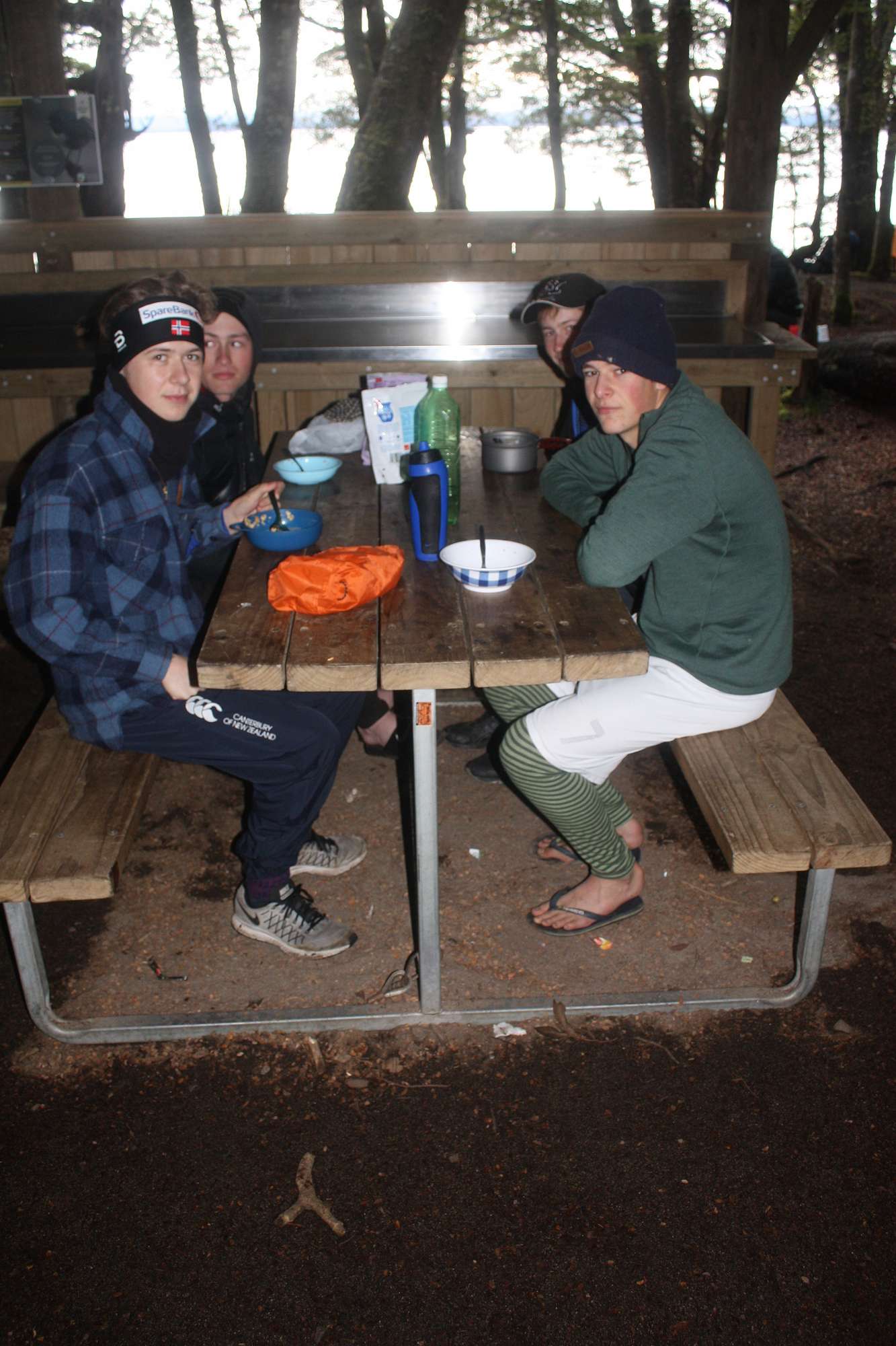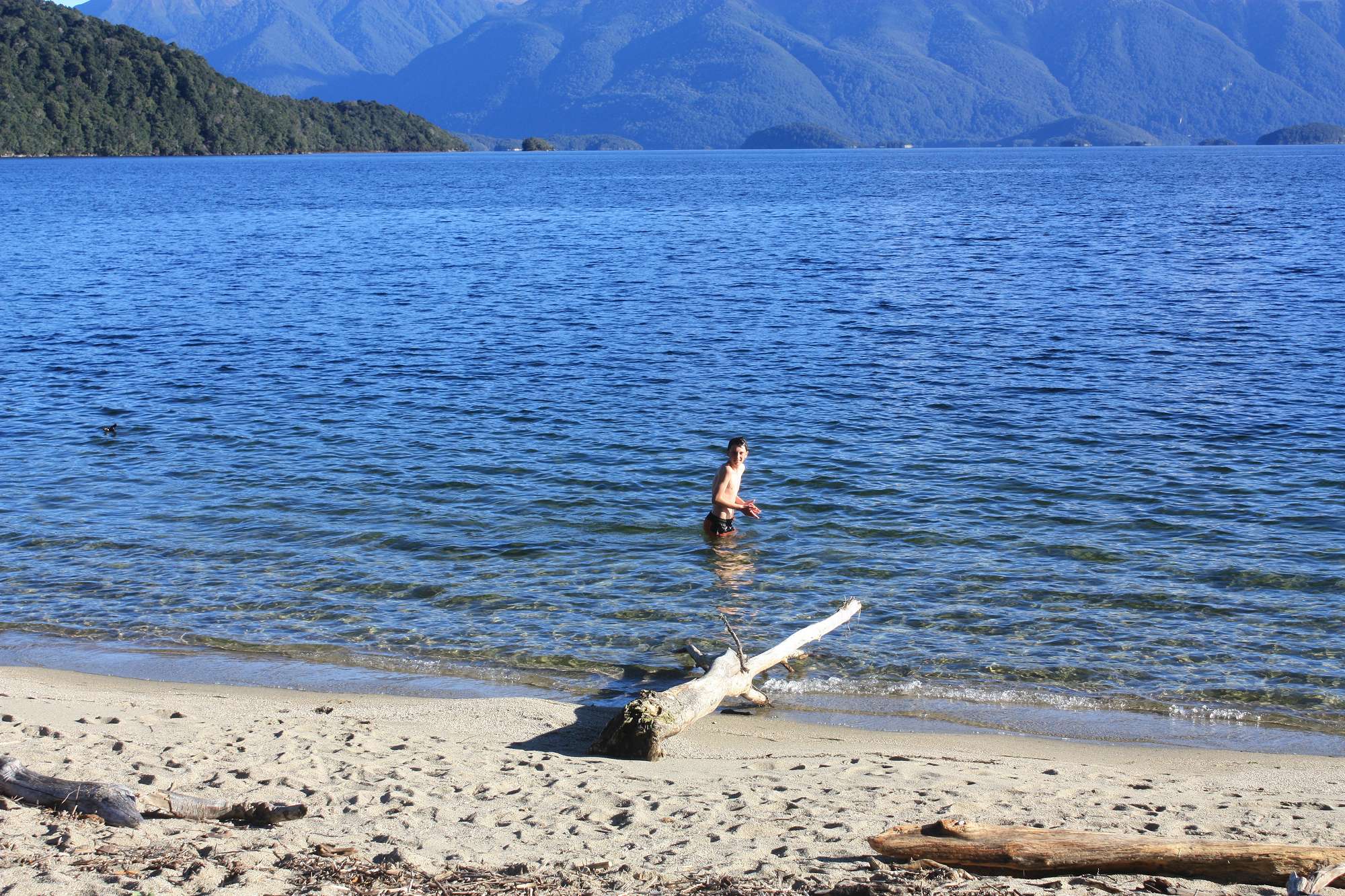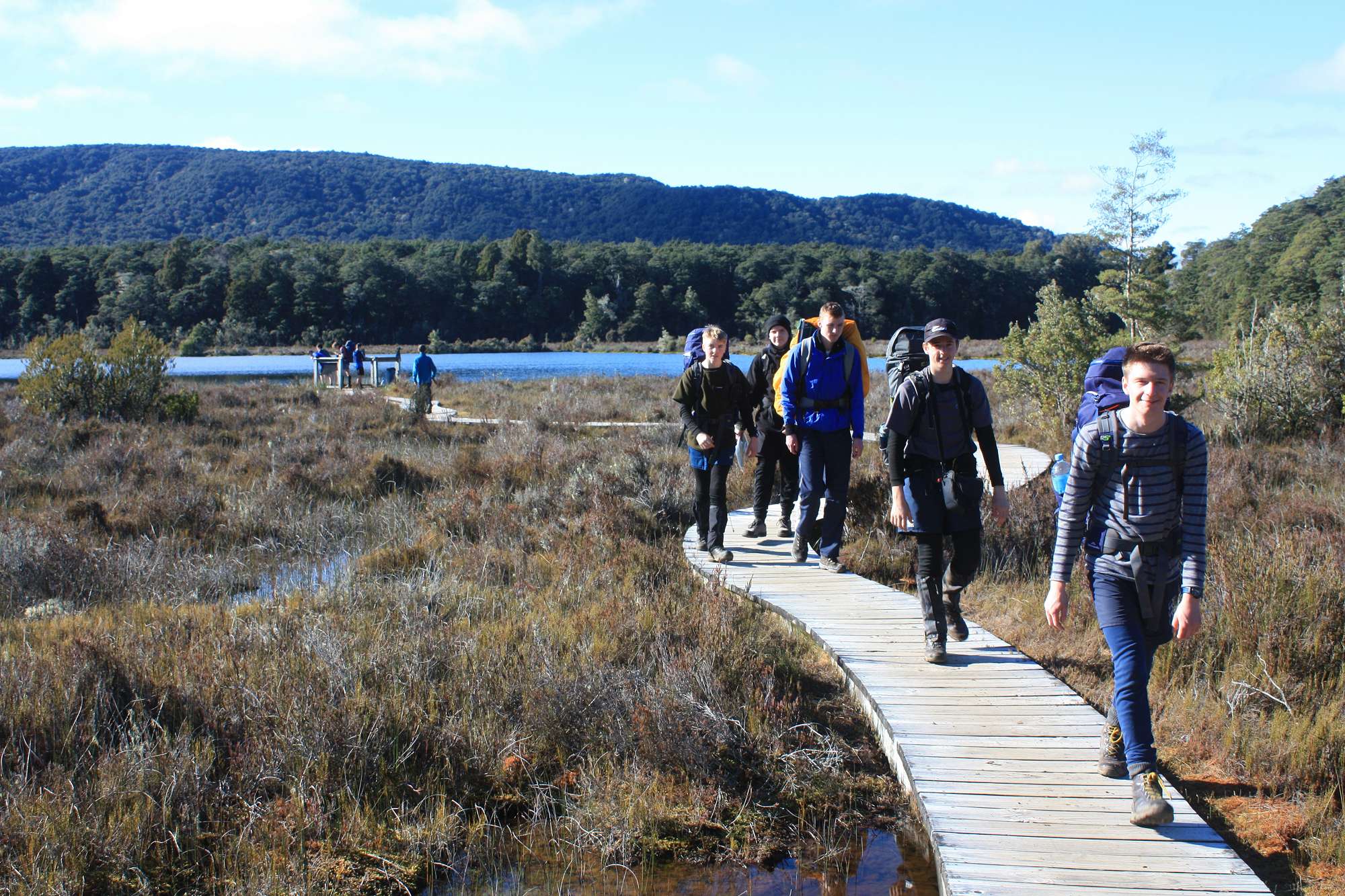 On day 3 we walked back via the carpark and around the Kepler track in the opposite direction, arriving at Moturau Hut for a late lunch. By this time the weather had come out fine and sunny, and within 24 hours of wallowing about in large snow drifts up on the tops, some of the boys were swimming in the marginally warmer waters of Lake Manapouri. We were treated to an excellent history of the Lake Manapouri hydro-electricity scheme from the hut warden that evening. Our final day consisted of retracing our steps back to the carpark via Shallow Bay, lunch in Te Anau and return to Dunedin at 6pm.