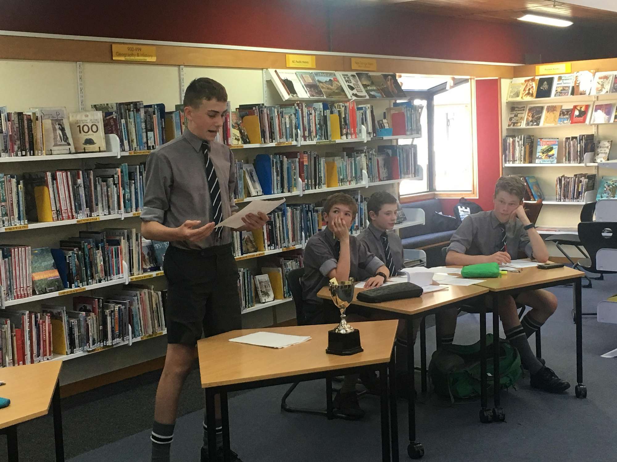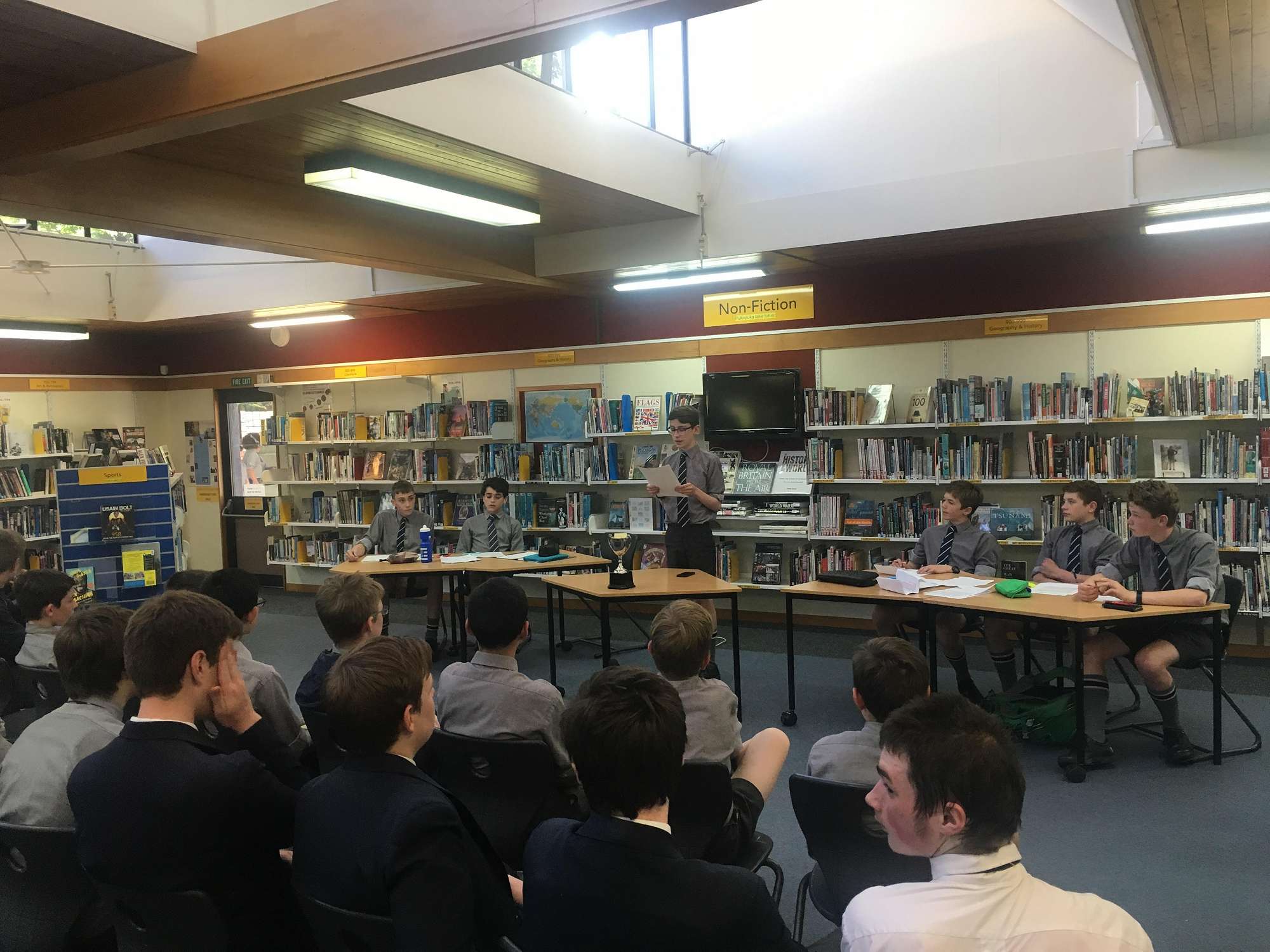 Over the past term and 3 weeks enthusiastic teams of juniors have slogged out arguments against each other hoping to advance to the next round. Today’s final was fittingly Year 9 vs Year 10 as well as Hostel vs Day boys, to add further spice to the occasion.