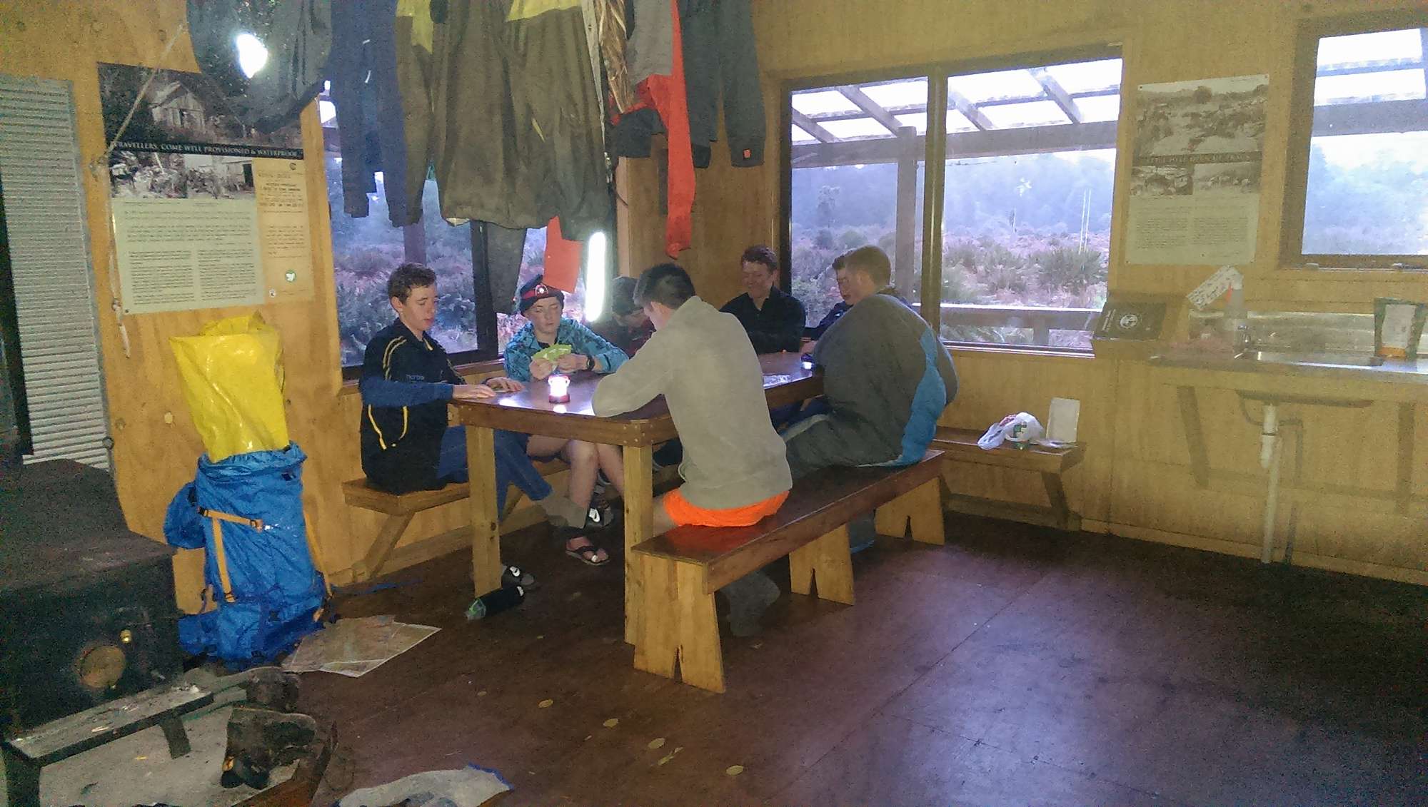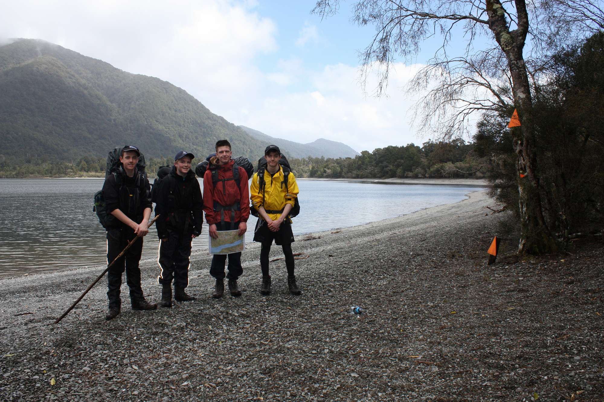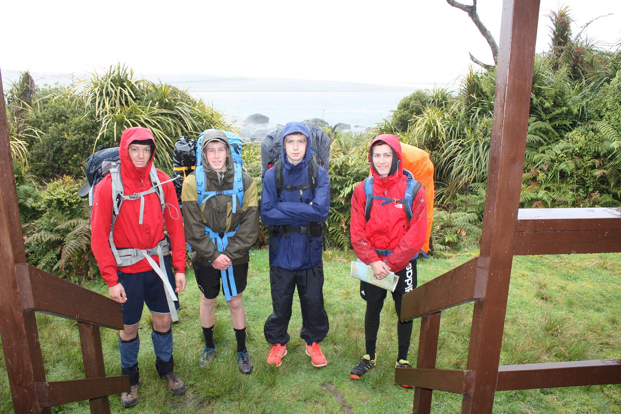 The inevitable rain arrived during the night and accompanied us along the first half of our tramp to Hokuri Hut on the shores of Lake McKerrow on day 2. With no clearings large enough to take the tents the boys seemed quite happy to take up residence in the hut instead, particularly as the rain returned again that evening.