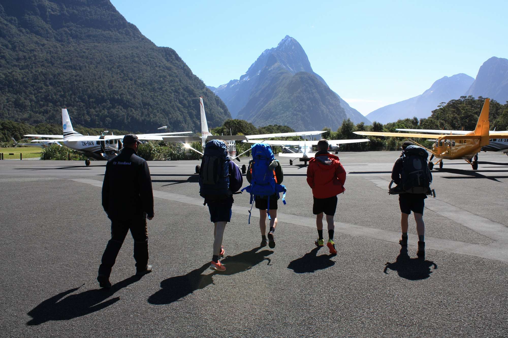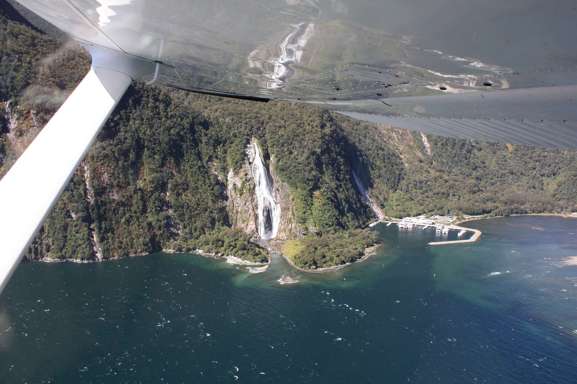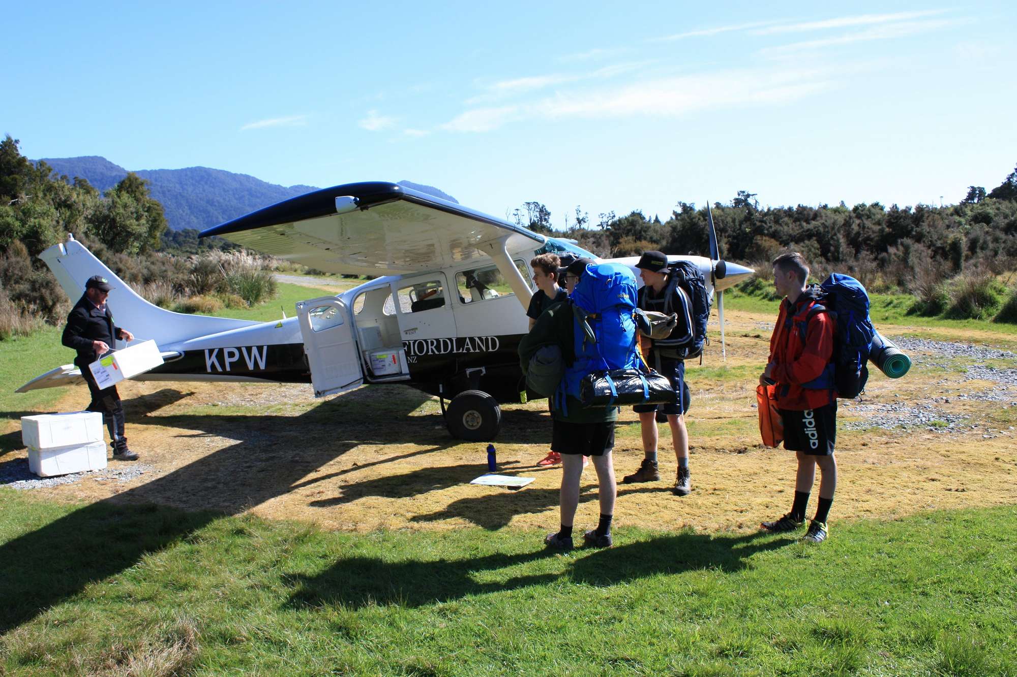 We departed from school at 7am and arrived at Milford Sound just before 1pm. Here we boarded a (very) small plane which took the first group of 5 into Martins Bay before returning for the second group. The 20 minute flight followed the Sound out to the open sea then North along the coast, landing on a gravel airstrip at Martins Bay which looked far too narrow and short as we approached but fortunately turned out to be adequate. We couldn’t have ordered a better day and got to experience the extremely rare sight of Fiordland with no clouds.