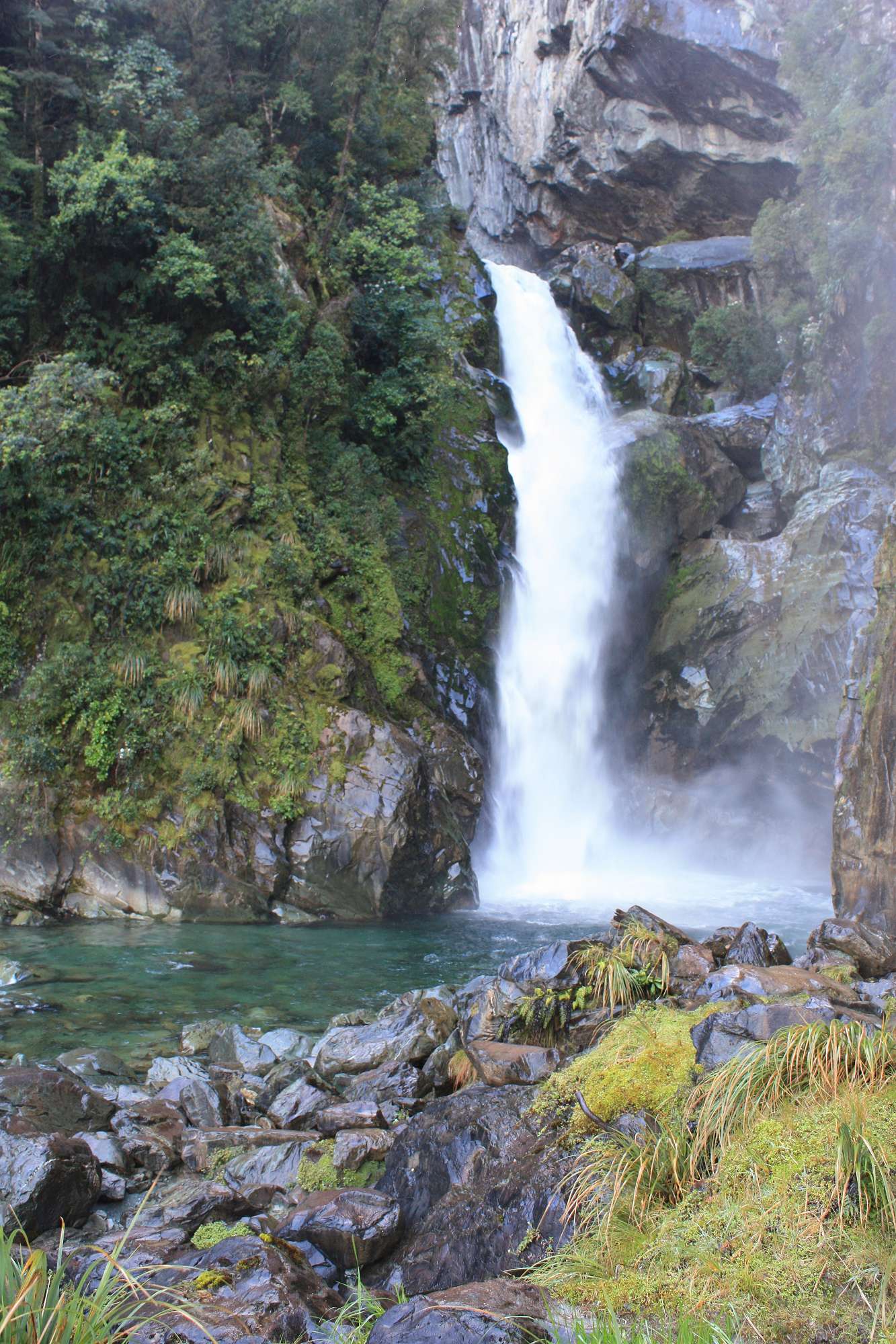 Our final day started off very cool but with clear skies. The easy walk out to the road-end carpark took just over two hours and the views of snowy mountain peaks and huge waterfalls were fantastic. We had time to squeeze in a visit to the nearby 275 metre tall Humboldt Falls before boarding the van and returning to Dunedin.