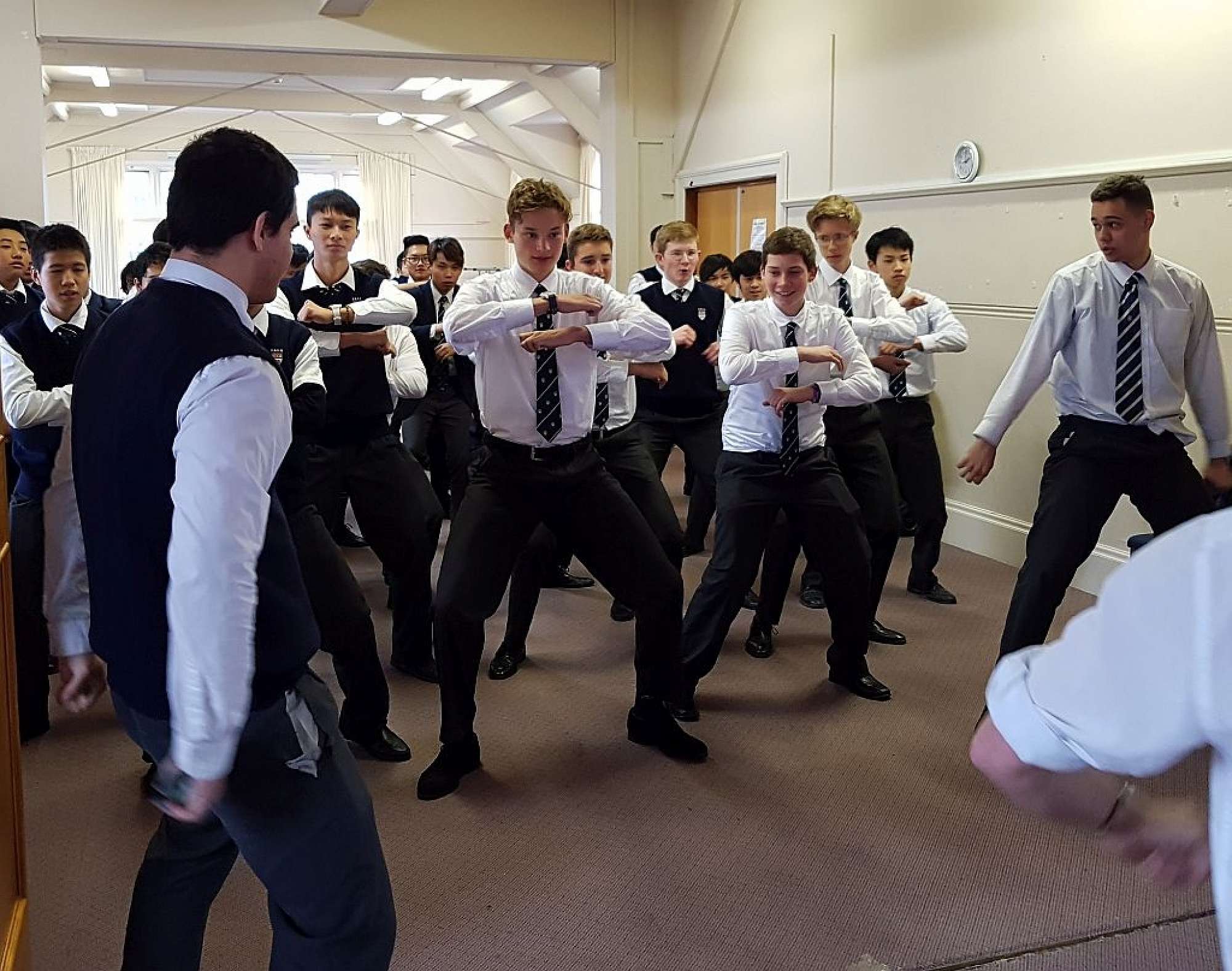 Meeting together again was something we had all looked forward to after the success of our first hui last term. It was great to meet new students and to share some of our tikanga and culture with them. After karakia we all introduced ourselves with mihimihi, and it is incredible how many different countries are represented at our school. It's also wonderful to hear people saying "kia ora" with joy and pride. A delicious kai set us up for teaching the school haka, which was quite a challenge for our new boys. However, the recent interhouse competition has paid off and the final haka sounded awesome!!