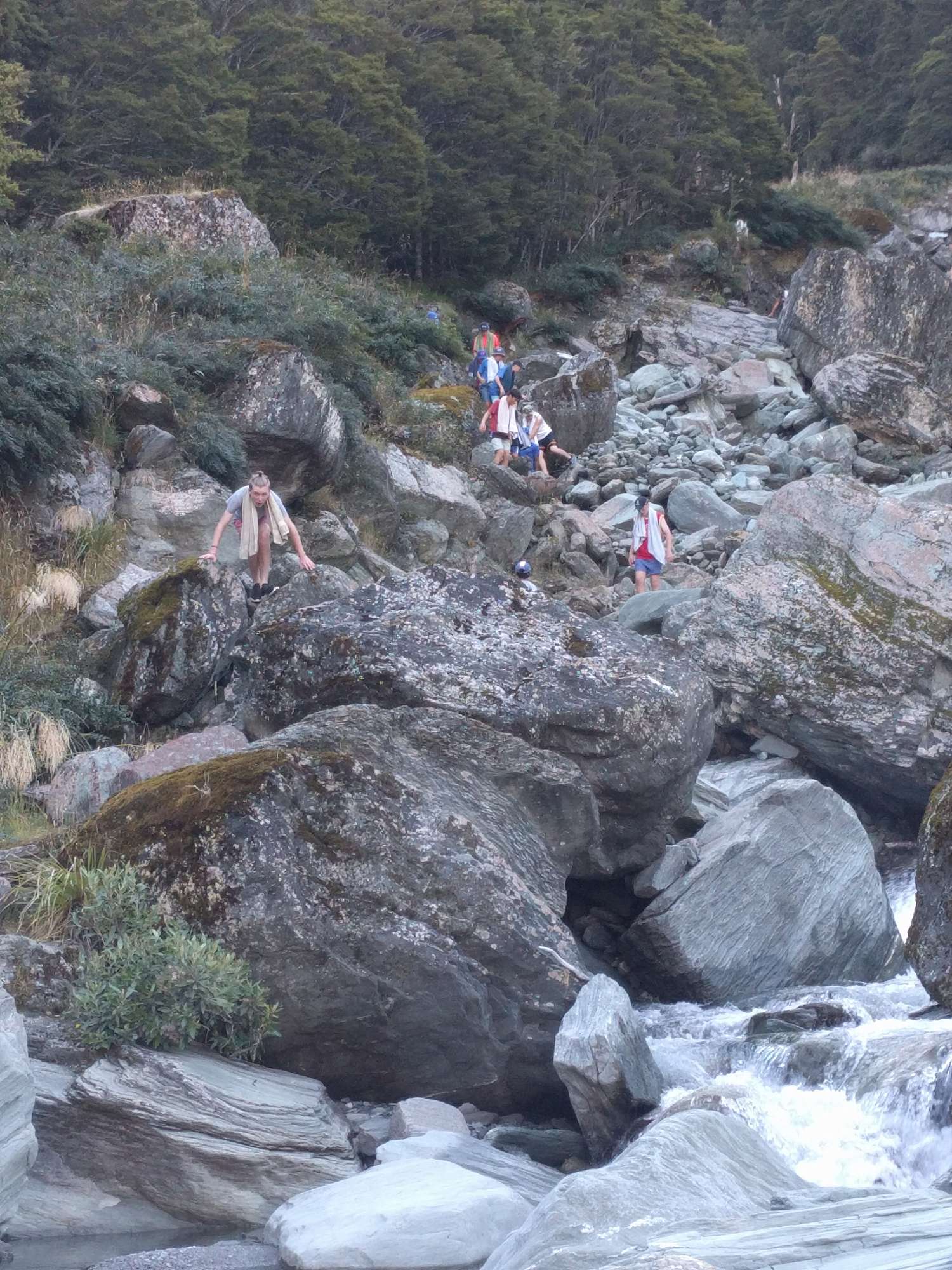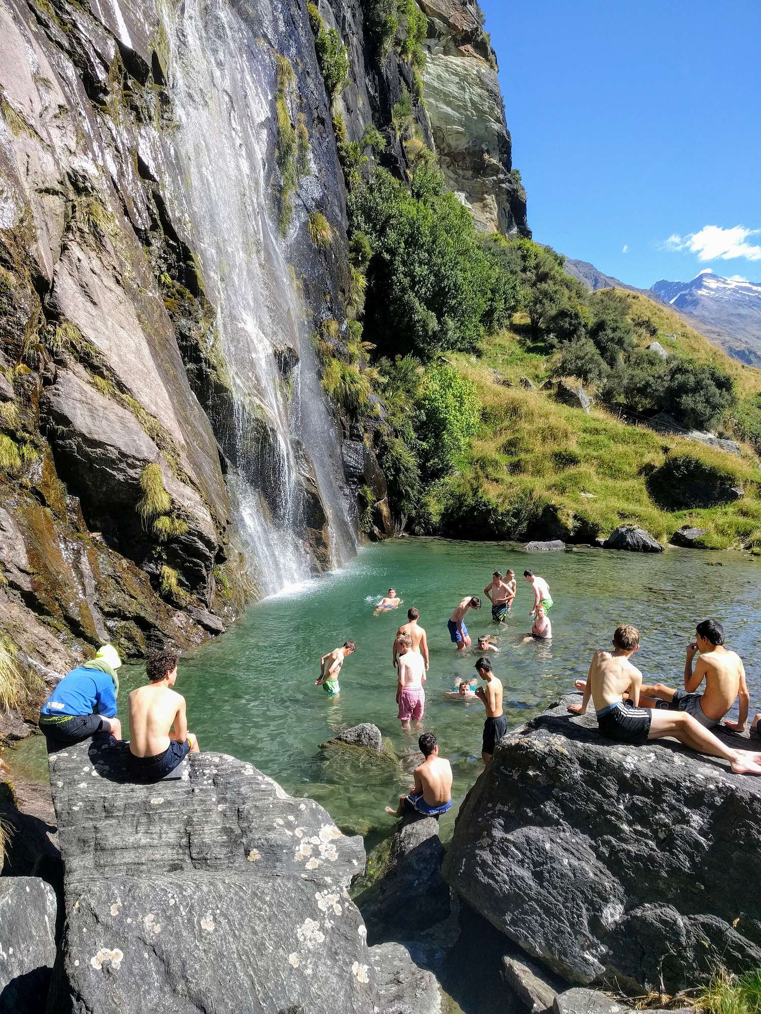 The overnight camp was fun as well. The tents were good and provided a good nights sleep. There was a really nice waterfall where most people had a swim which was nice and refreshing. The tramp on the way back was better because it was all down hill so you felt more aware of the beautiful landscape. Everyone was really tired when we got back and the teachers decided we should go for a swim at Wishbone Falls which was awesome. The water was beautiful and it was slightly warmer than the river.