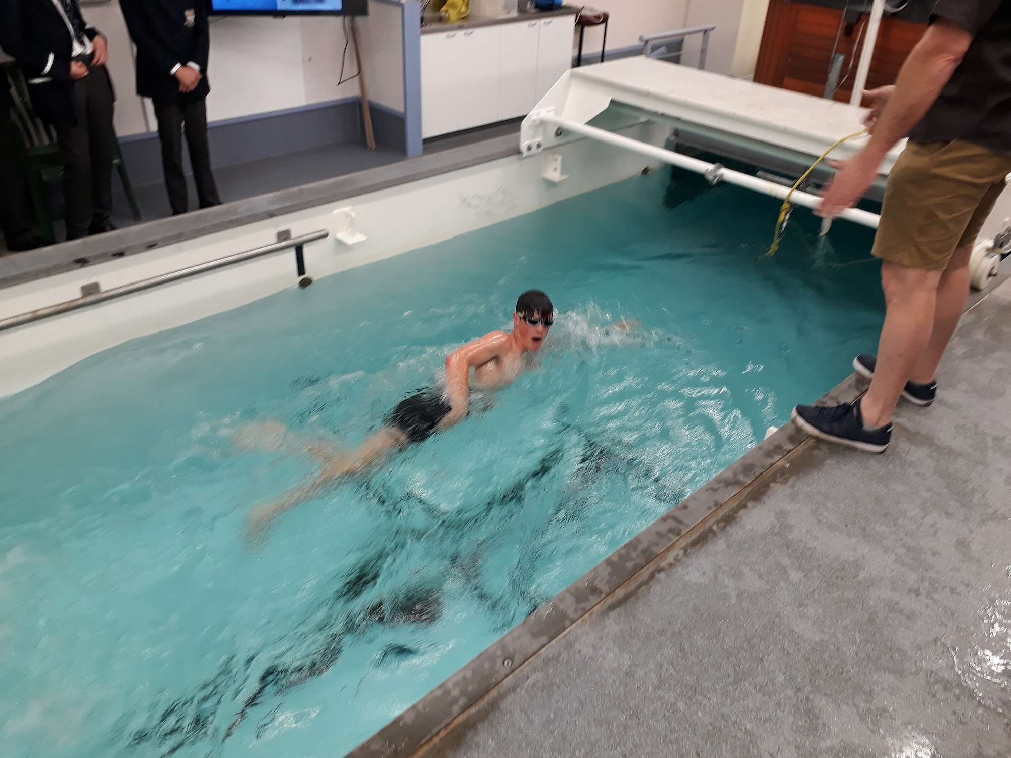 Our students examined V02max baseline fitness, the effects on athletes in a environmental chamber and fluid dynamics in the swimming flume.