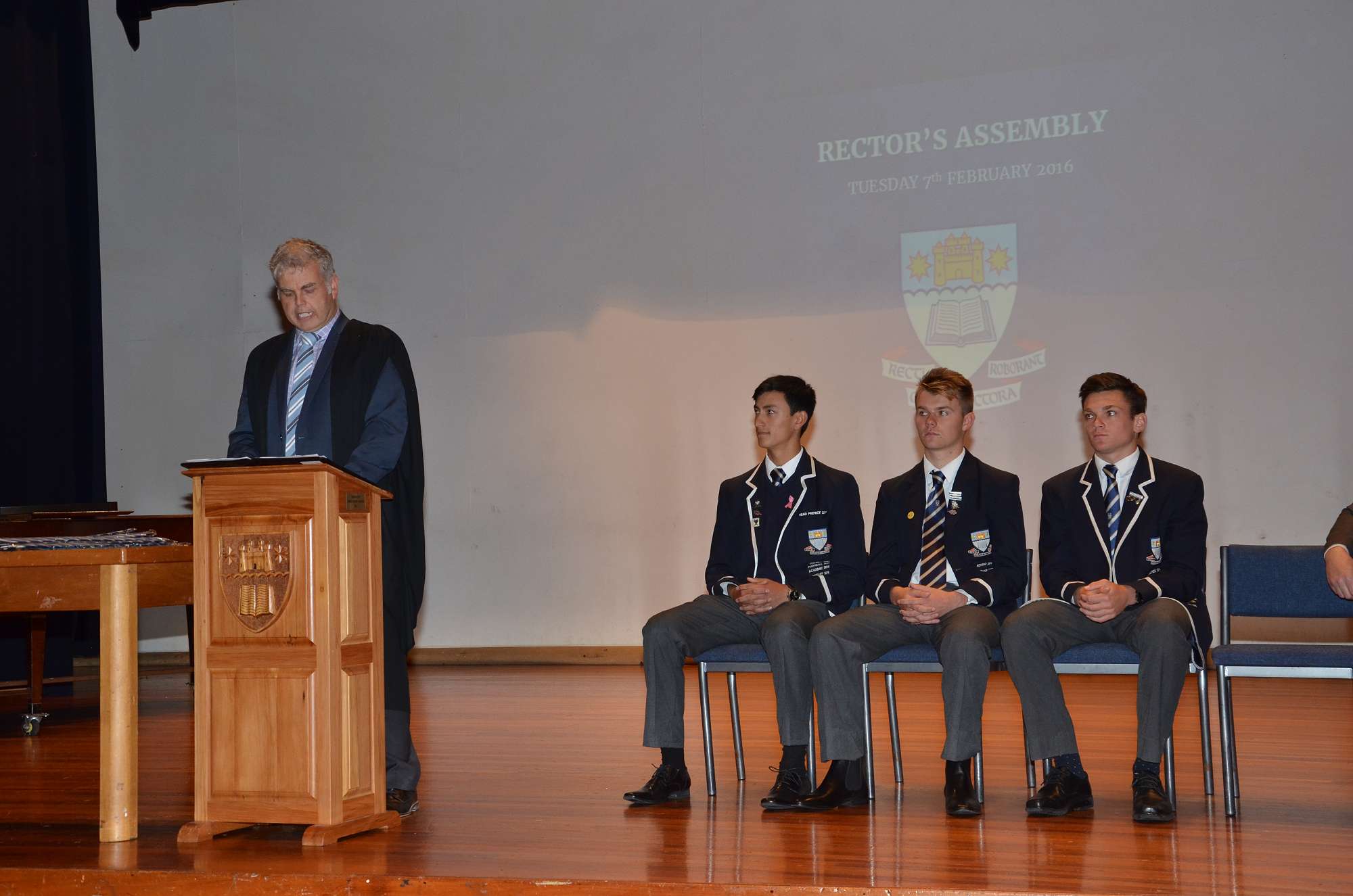 This morning at senior assembly, Rector, Mr Hall announced this year's Prefects and presented them with their badge and tie.