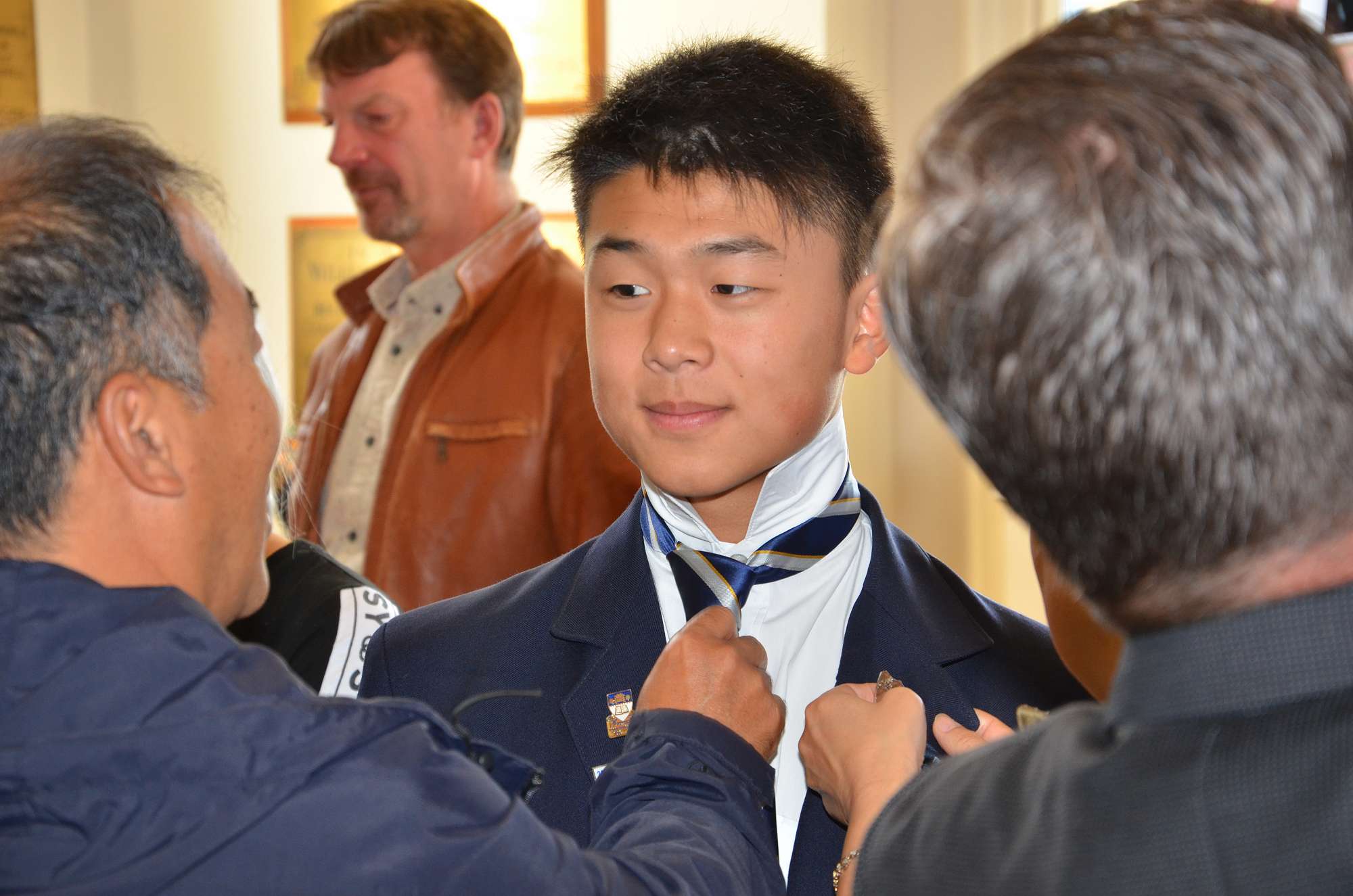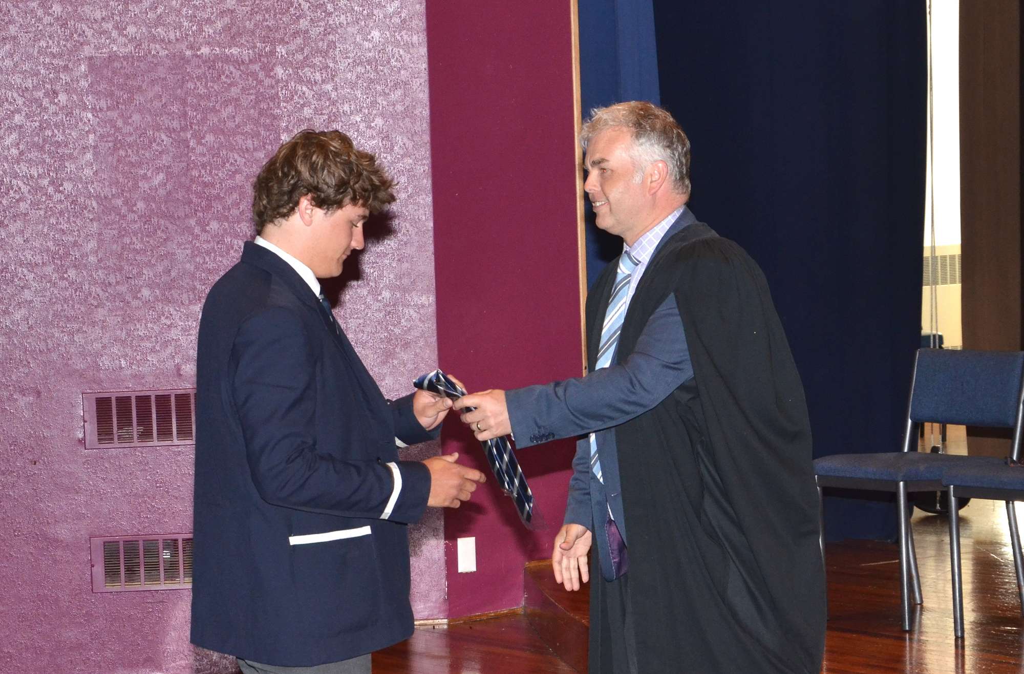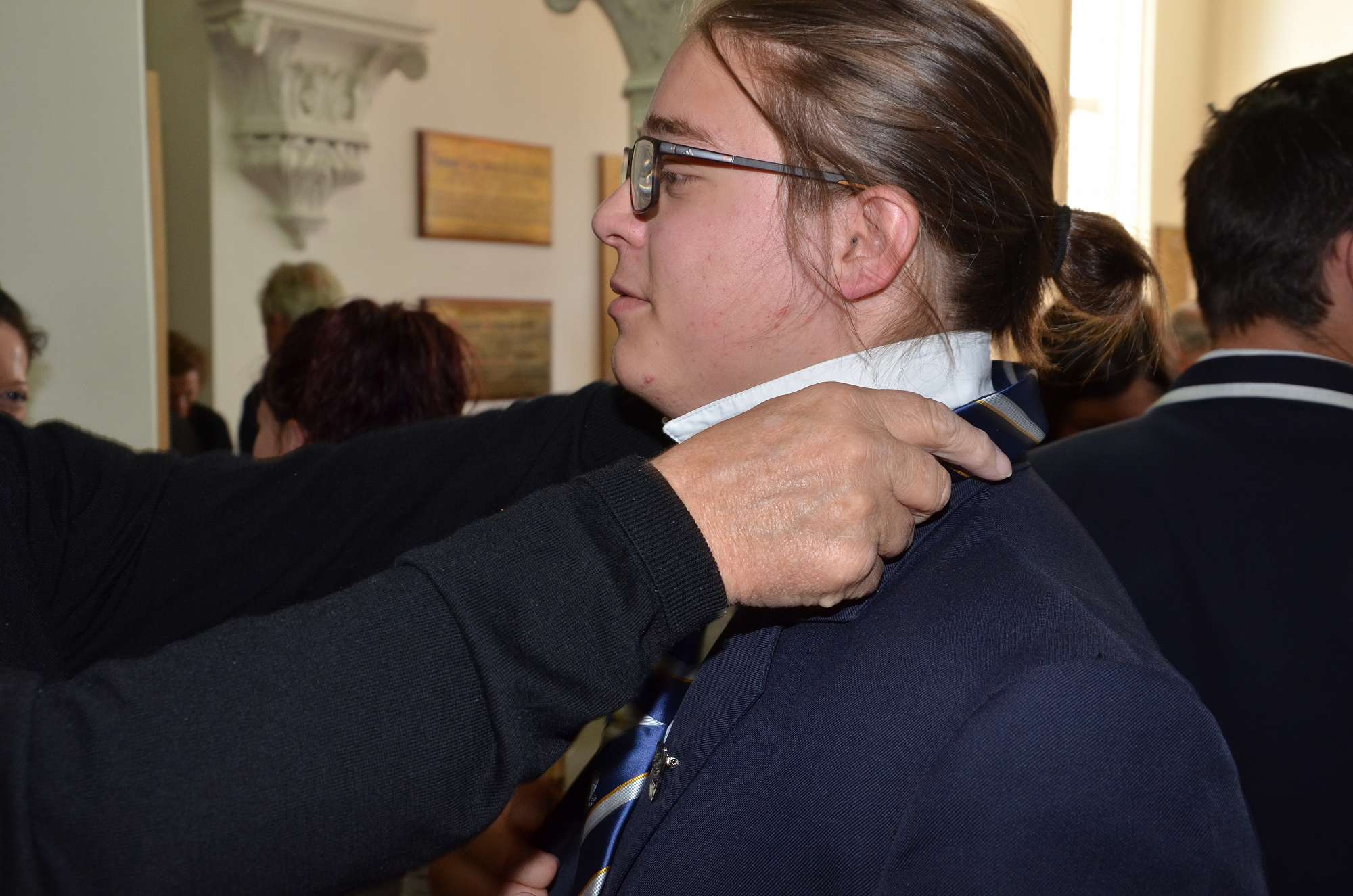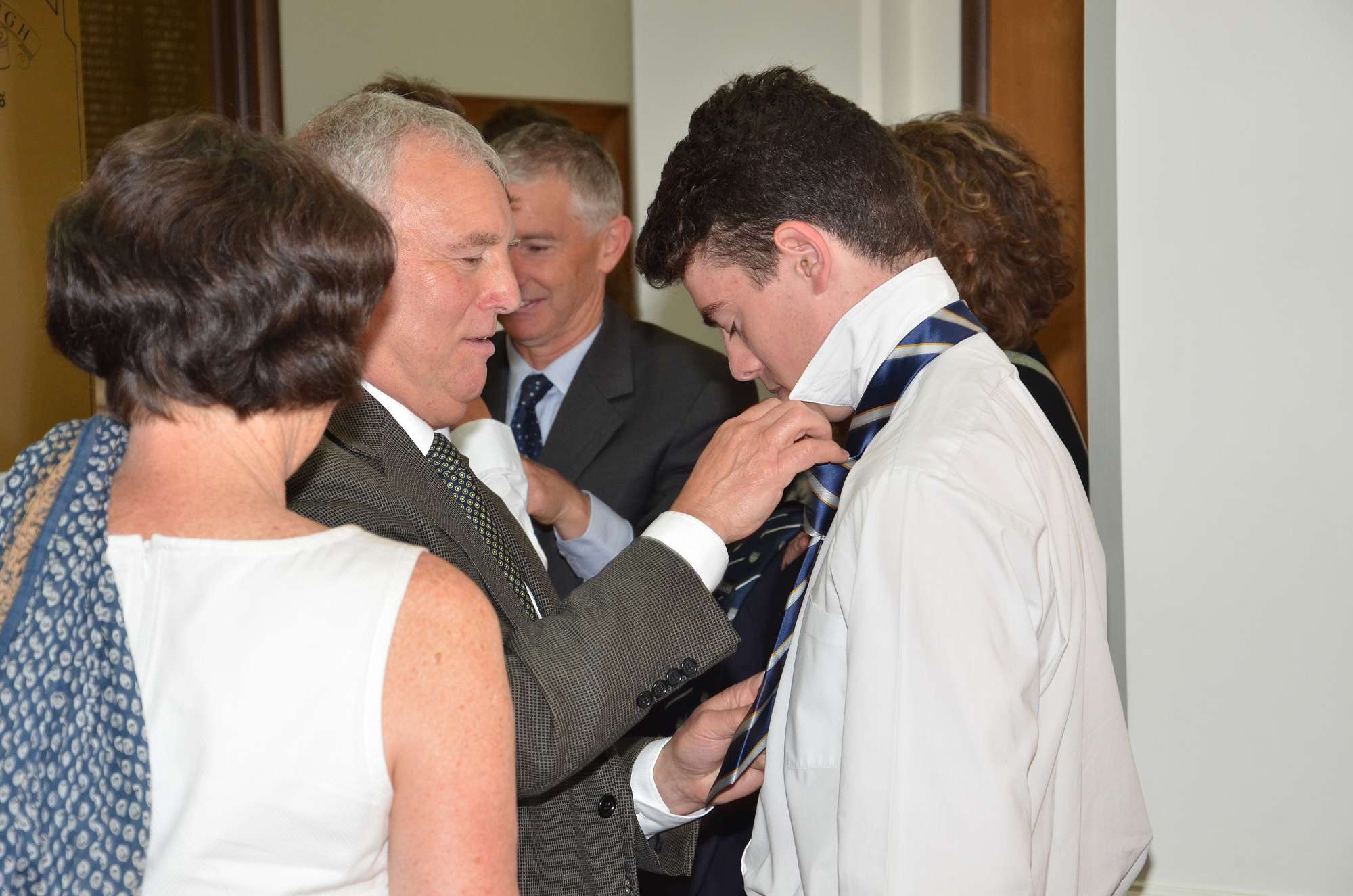 Following the ceremony a number of parents took pleasure in placing badges on their son's blazers and tying their new ties for the first time.